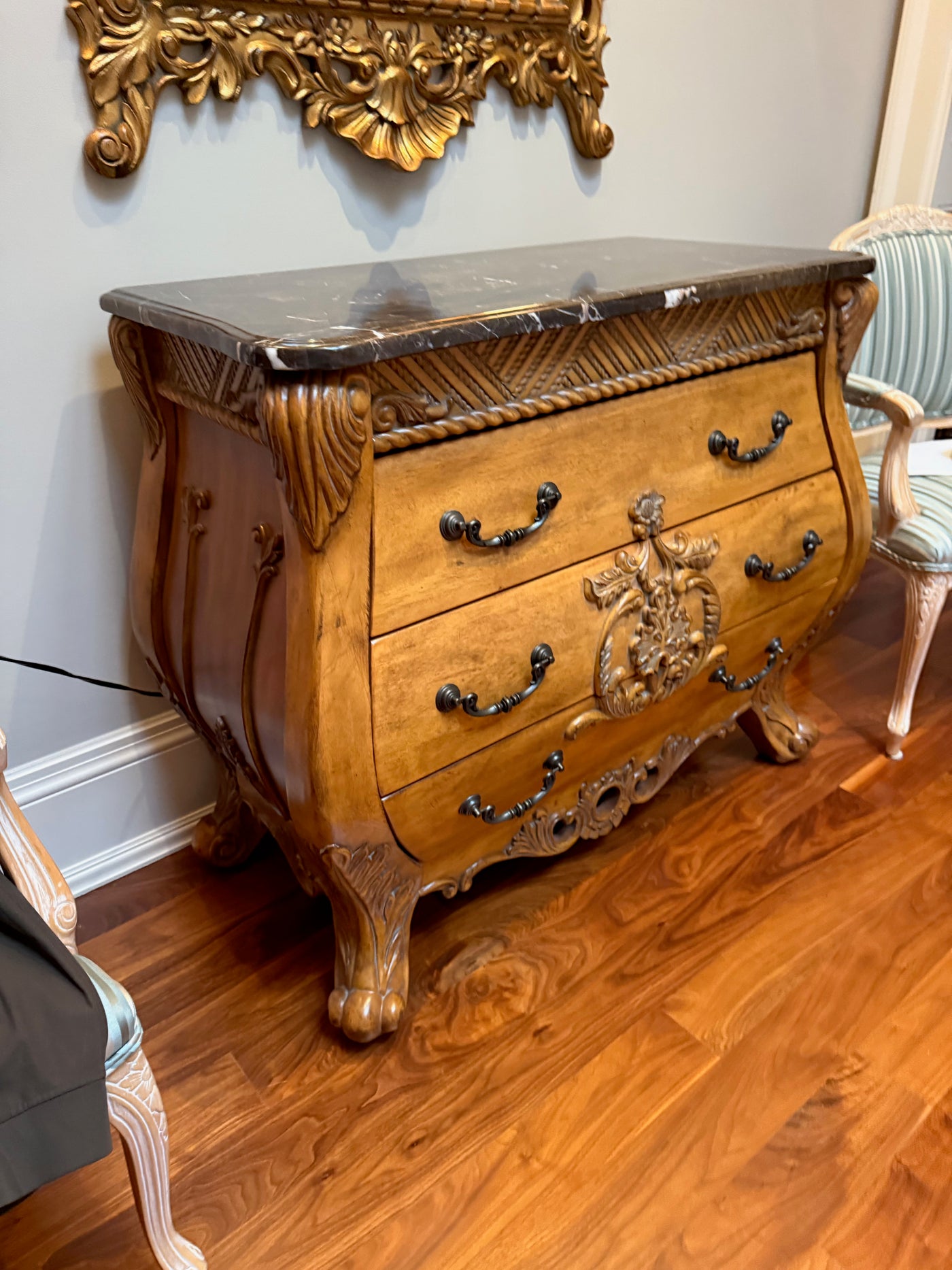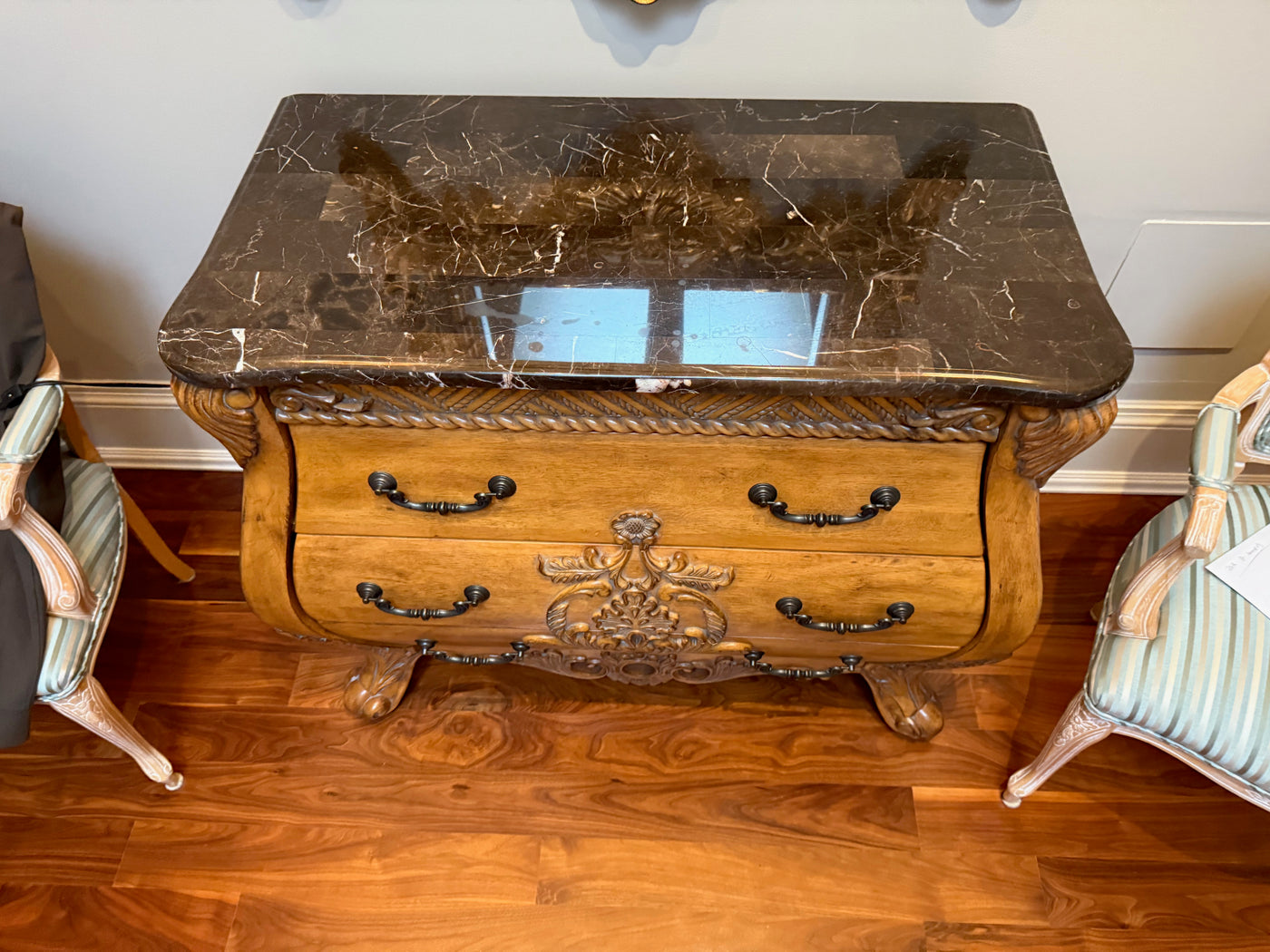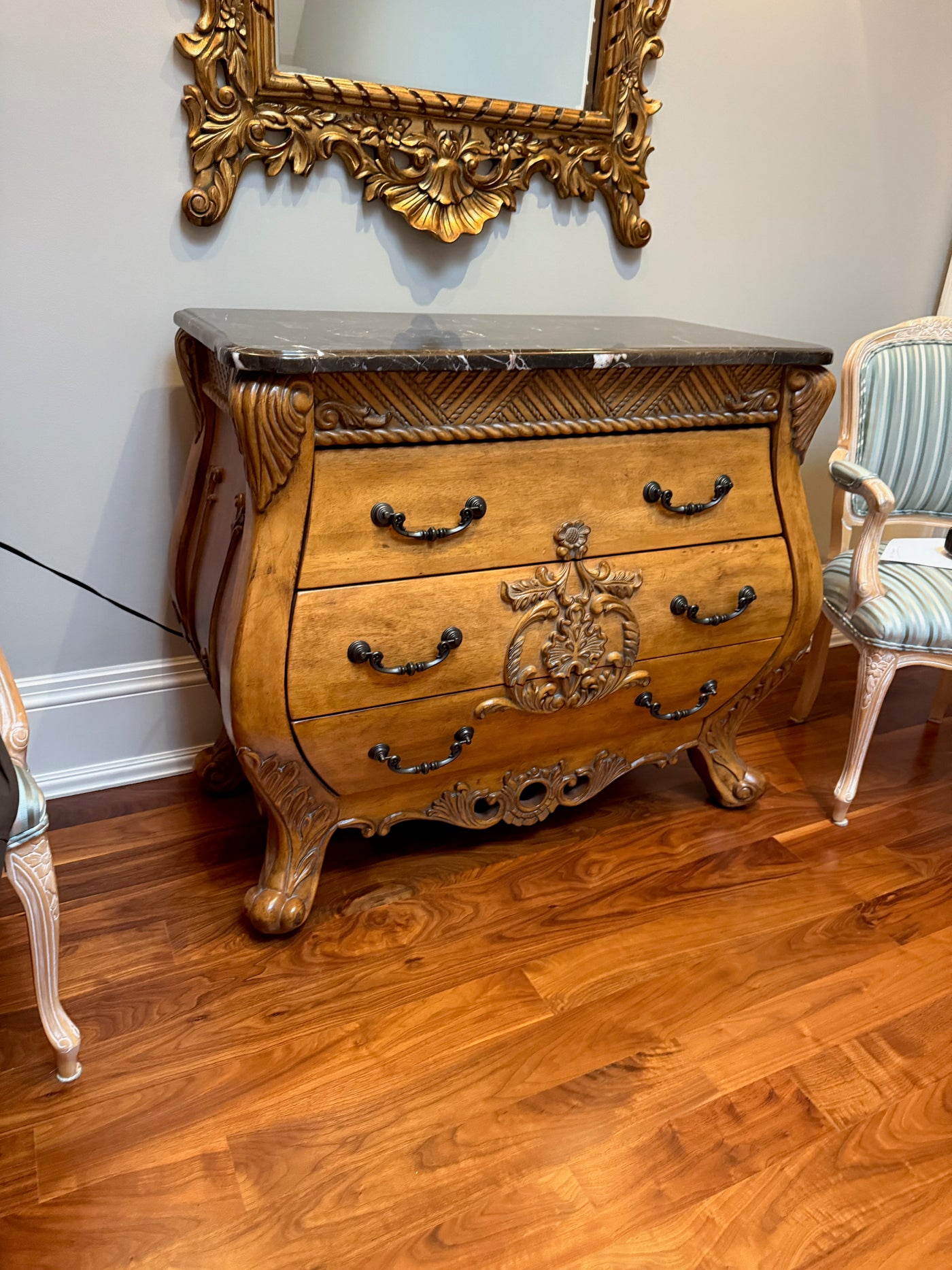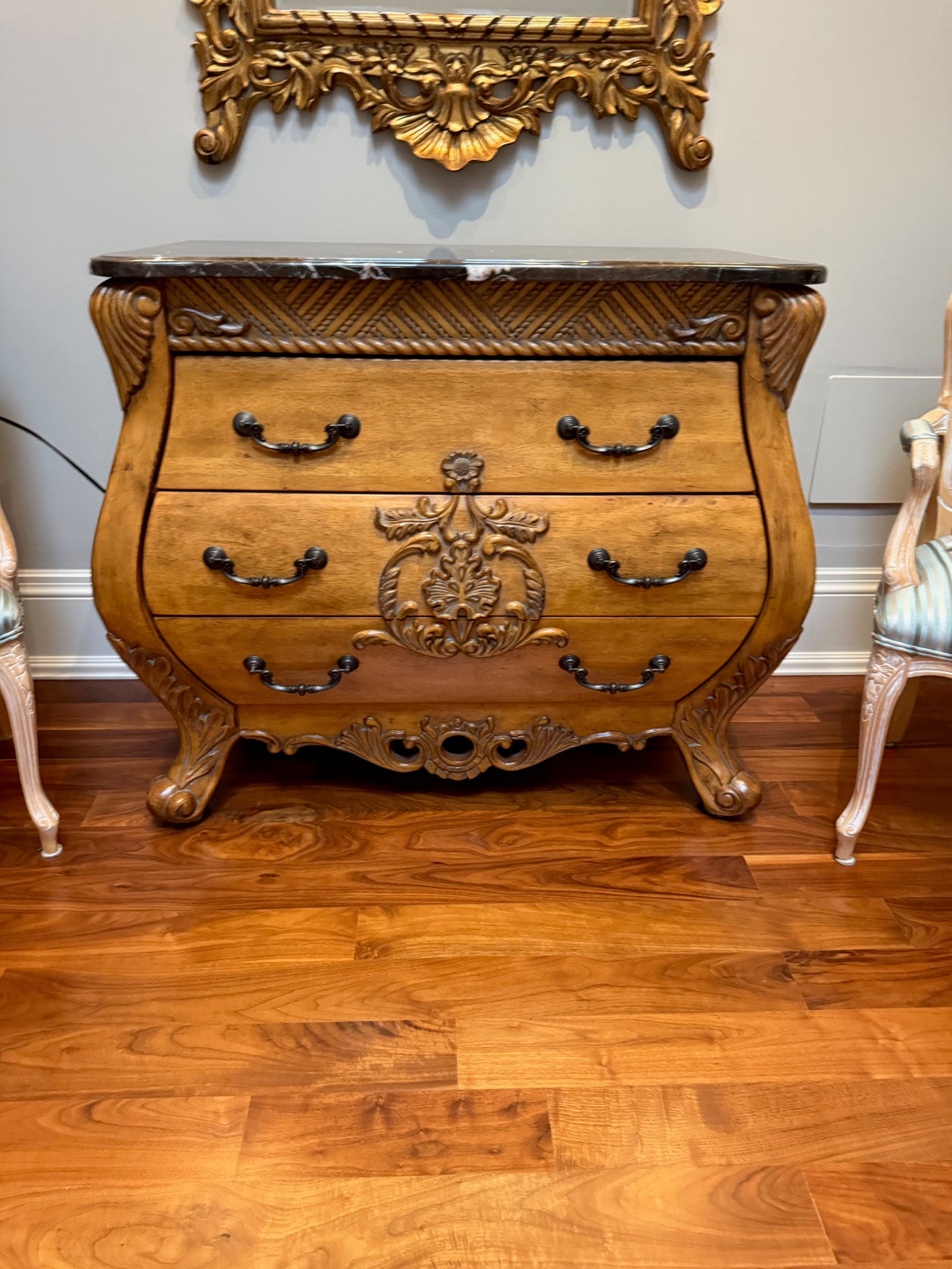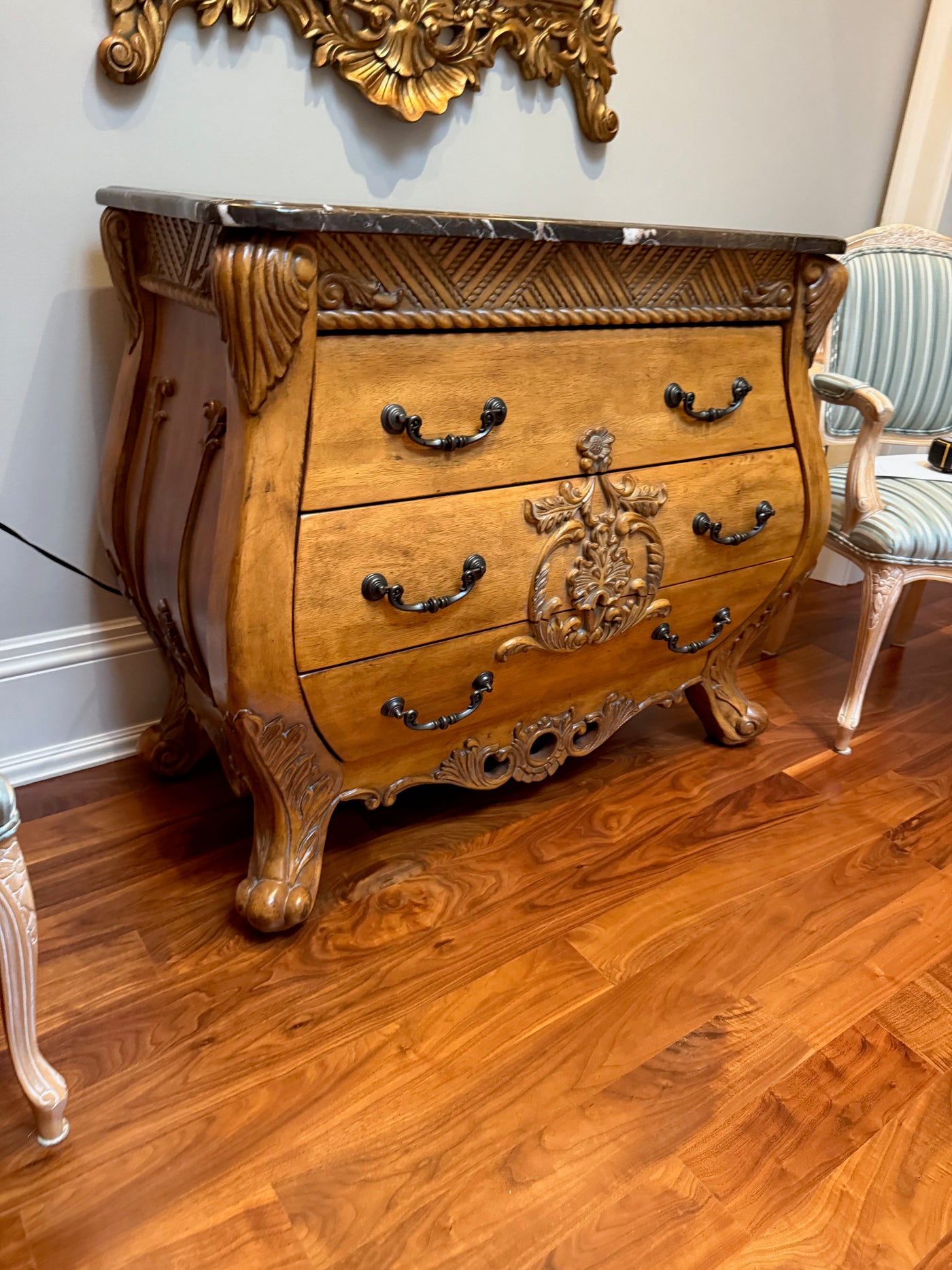 Marble Top Bombe Chest with 3 Drawers.