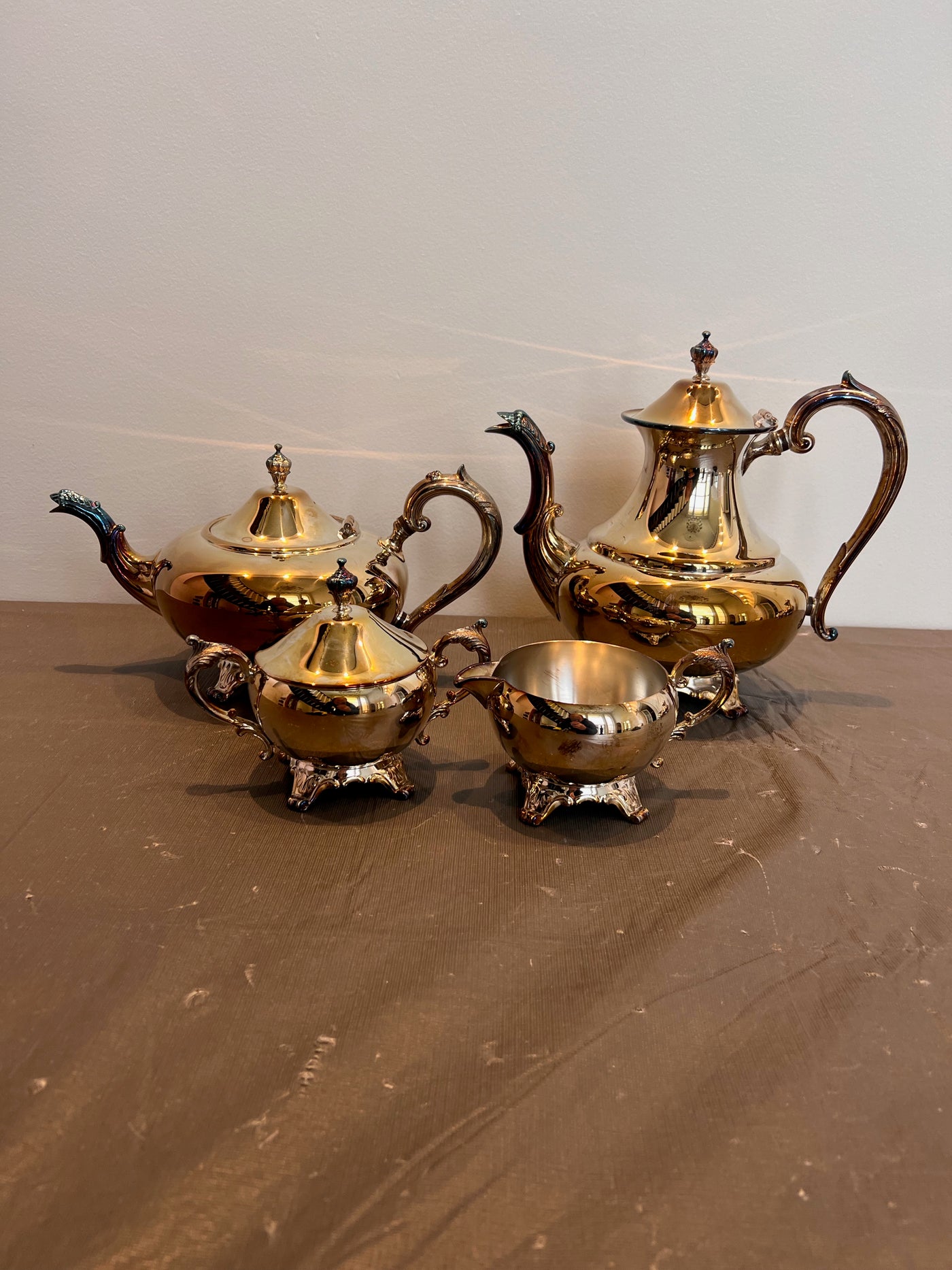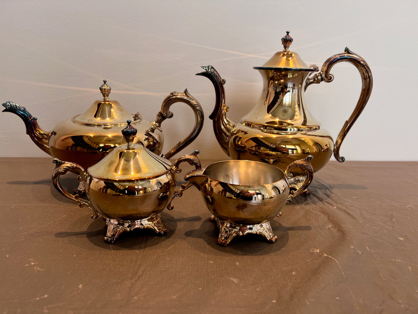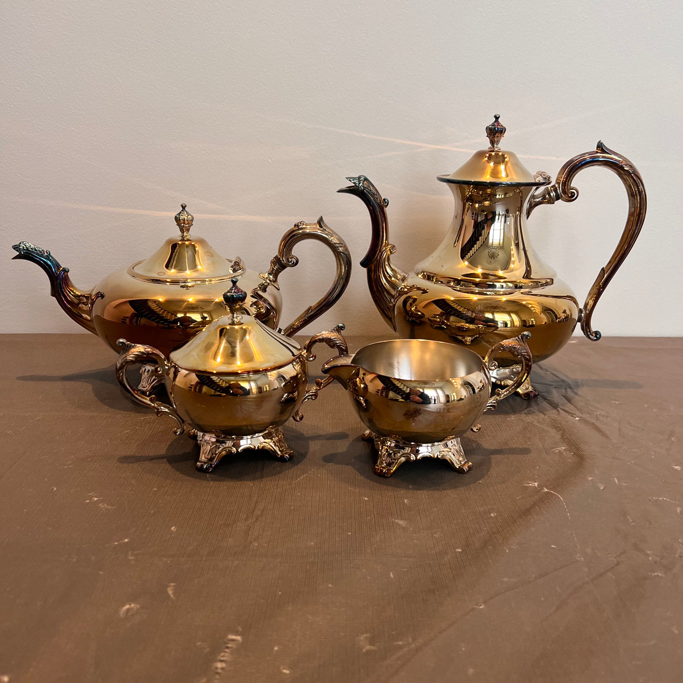 Marlboro Plate Silver Plated 4 pc Tea Set. Includes; tea pot, coffee pot, creamer & sugar.