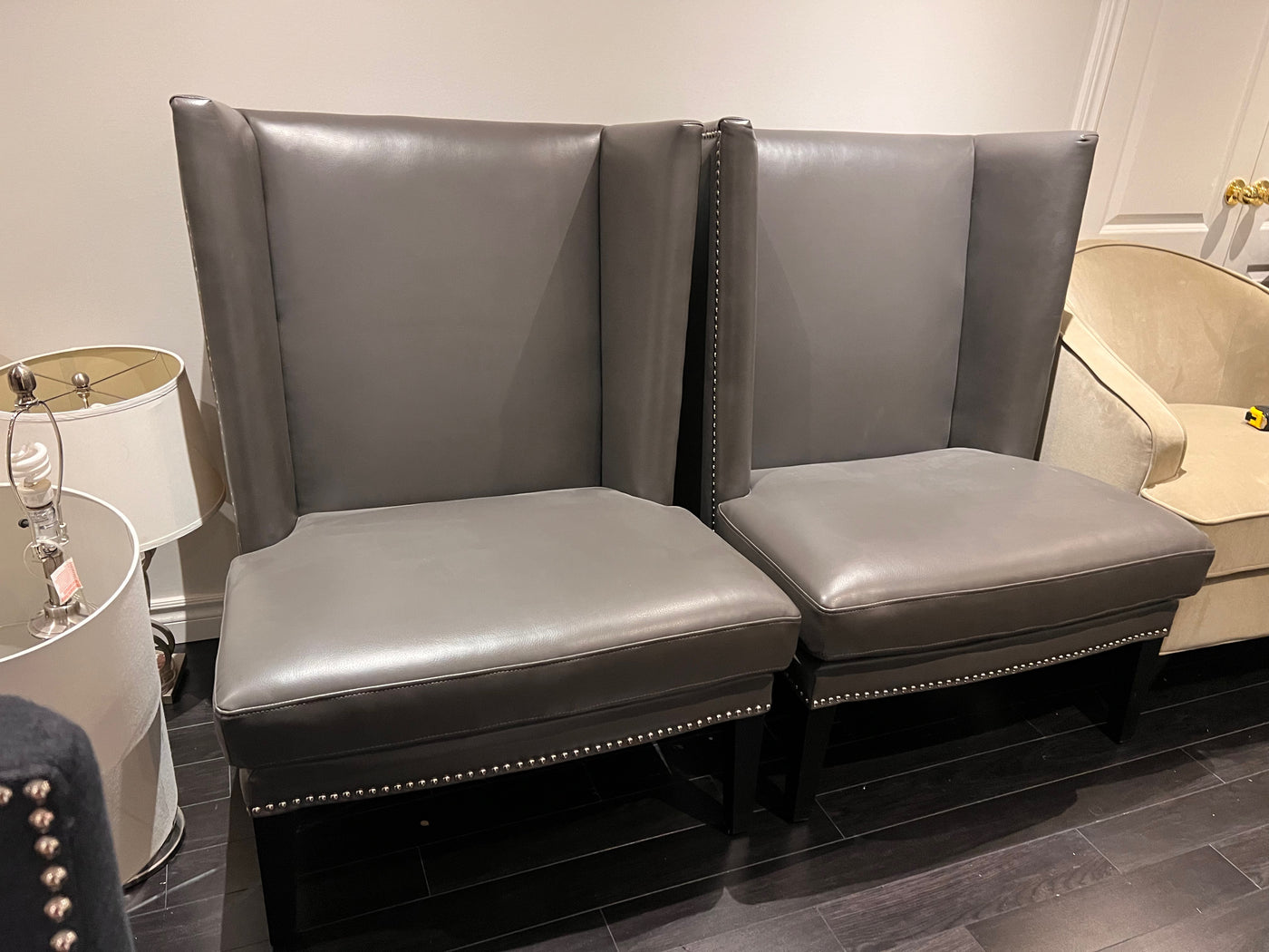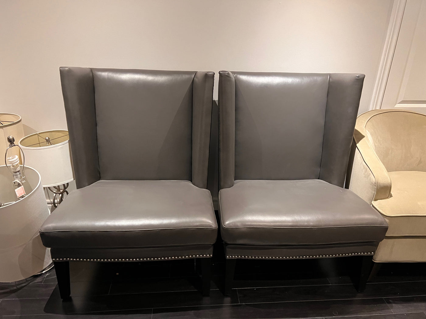 2 Sunpan Grey Bonded Leather High-Back Chairs
