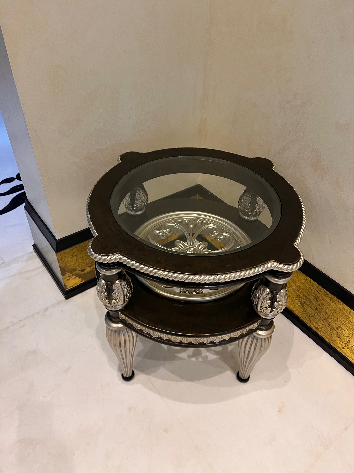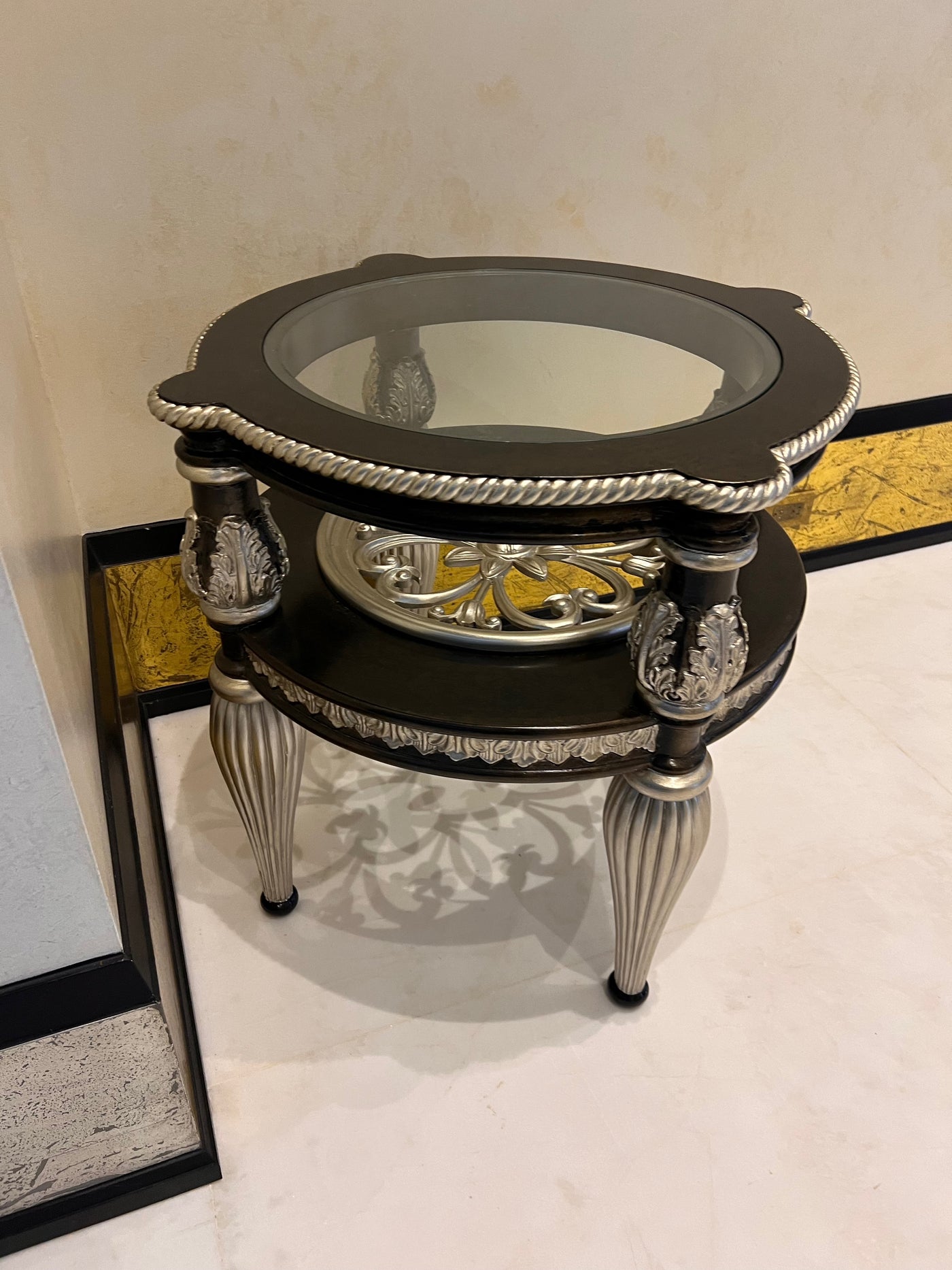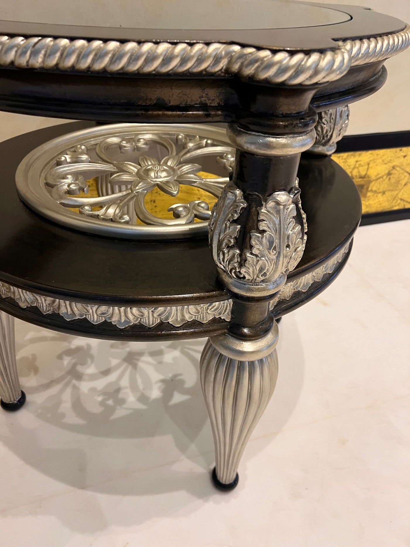 Pair of Martin Daniel Interiors 2 Tier Round Black/Silver Glass Side Tables.