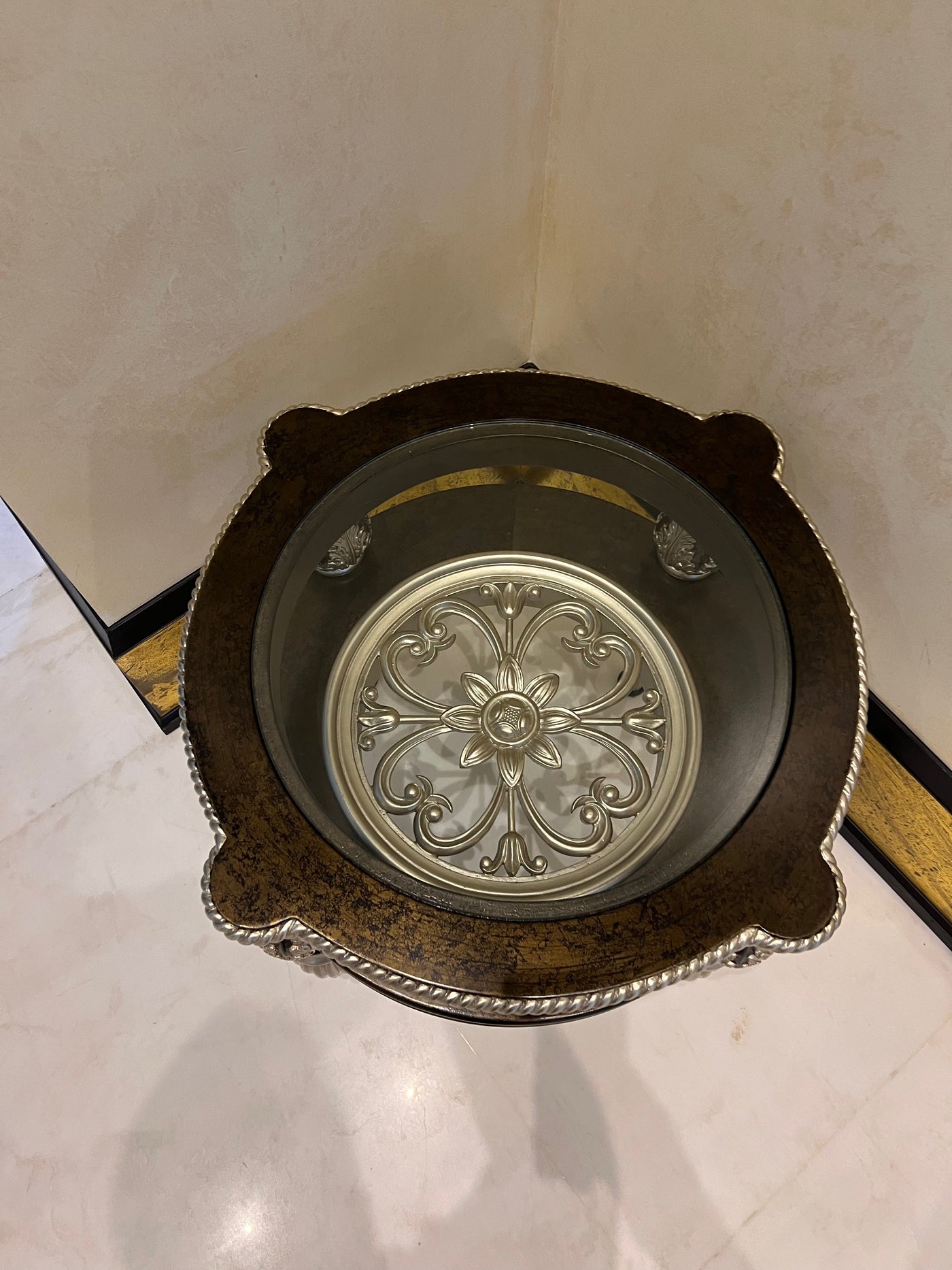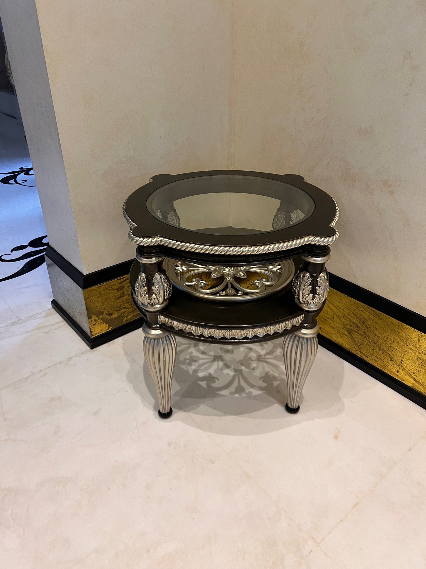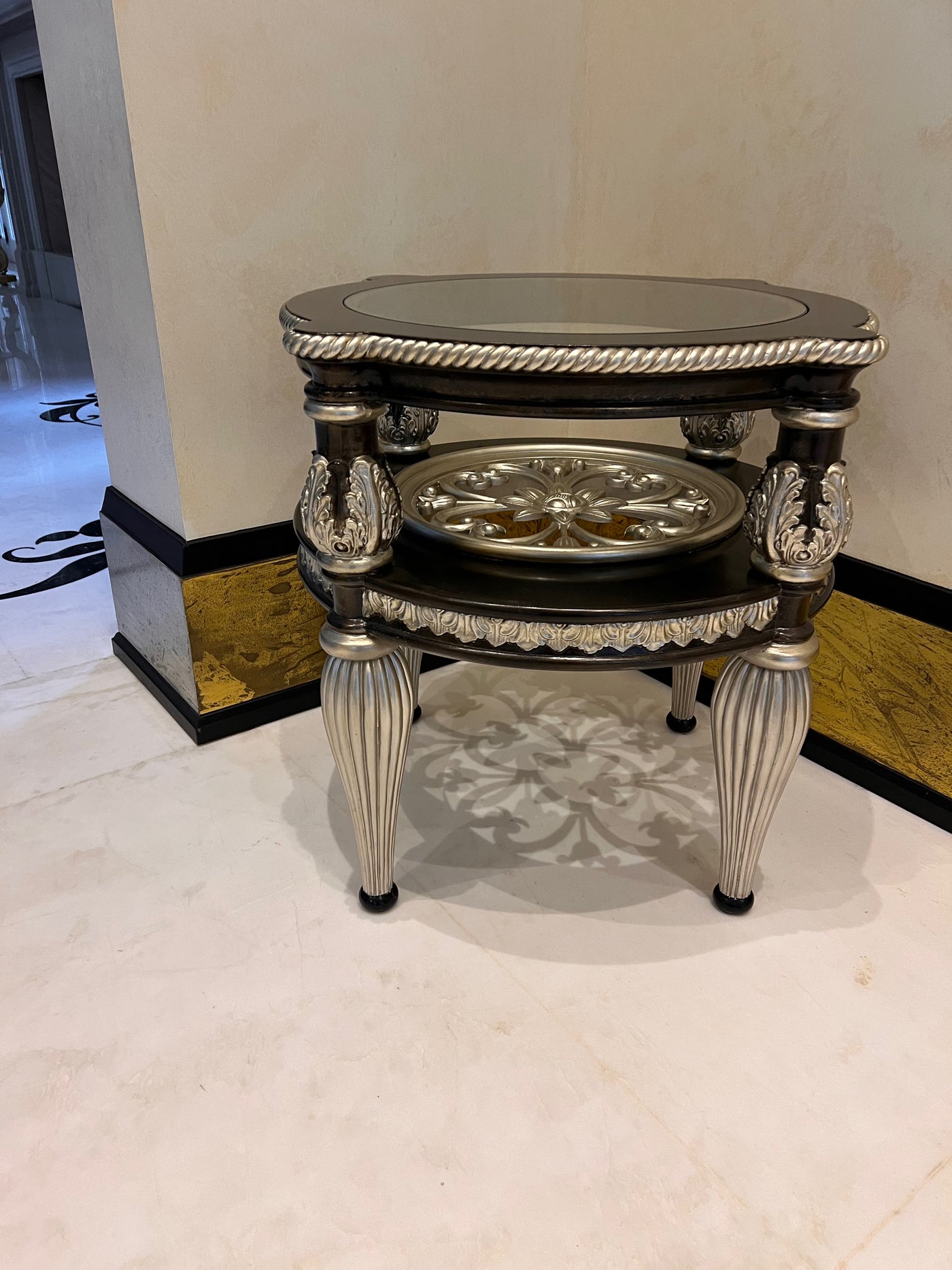Pair of Martin Daniel Interiors 2 Tier Round Black/Silver Glass Side Tables.