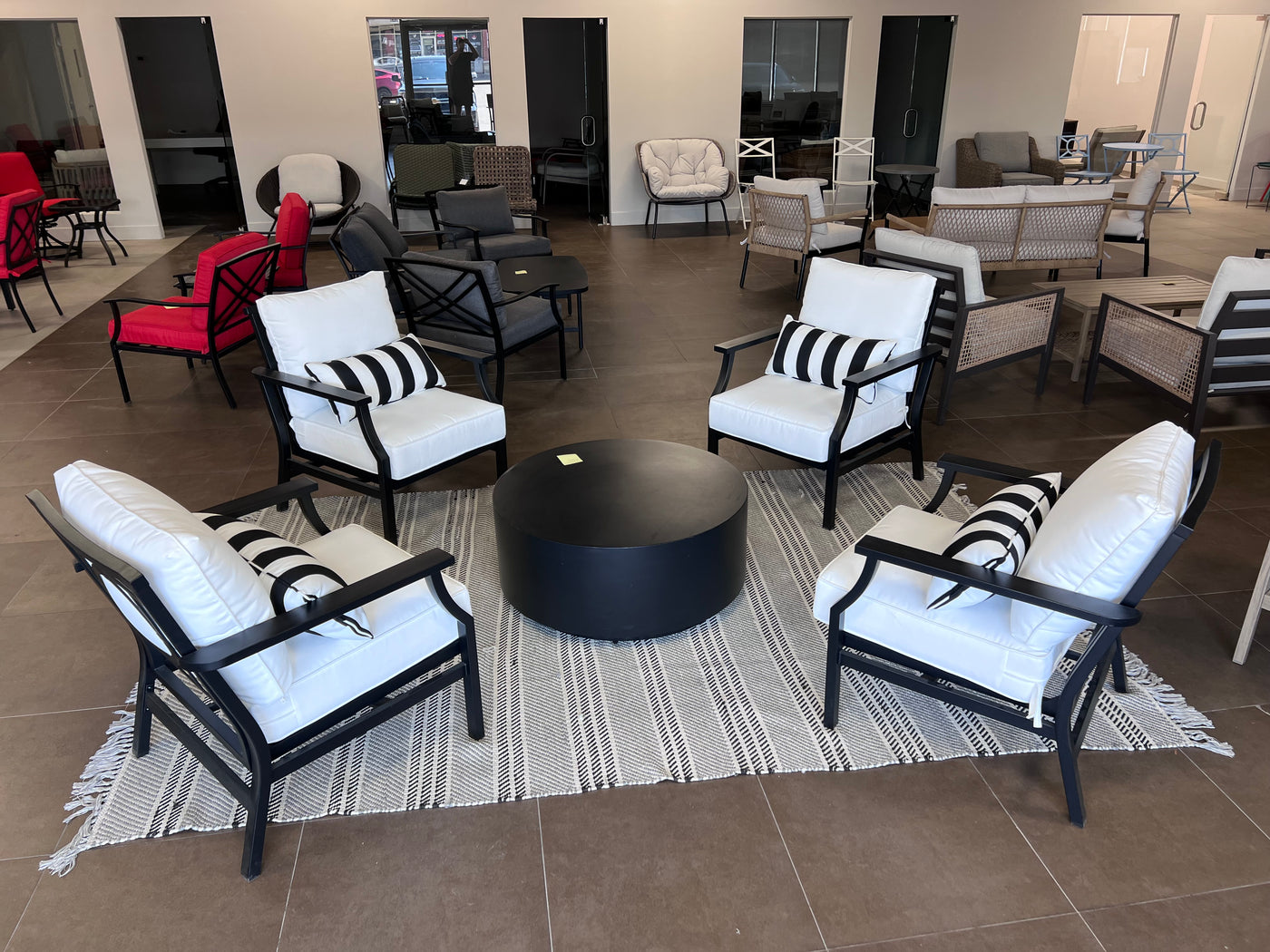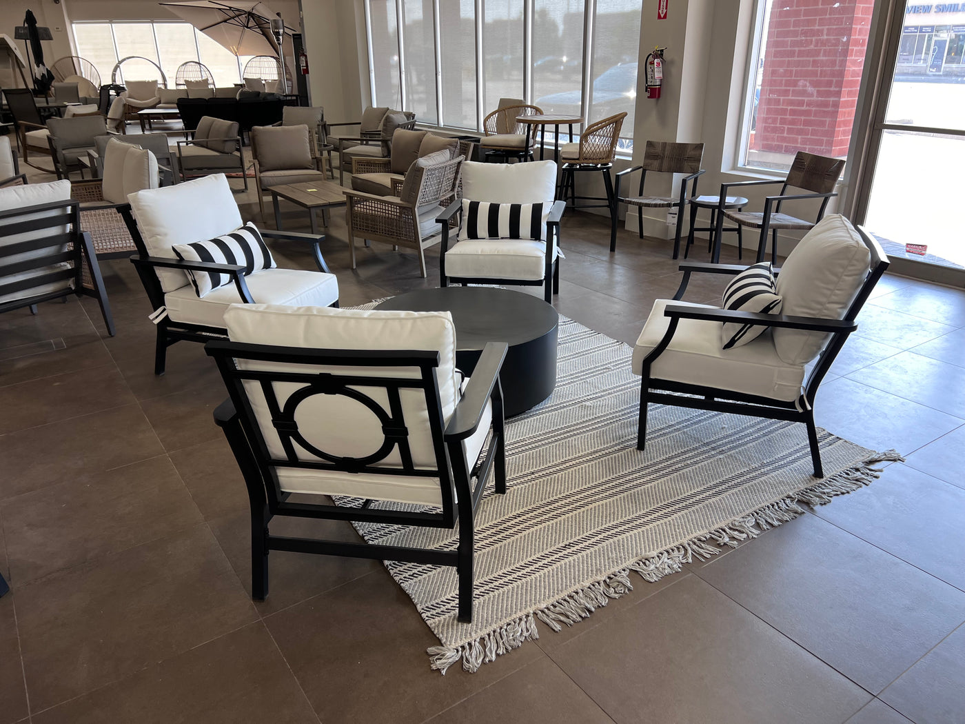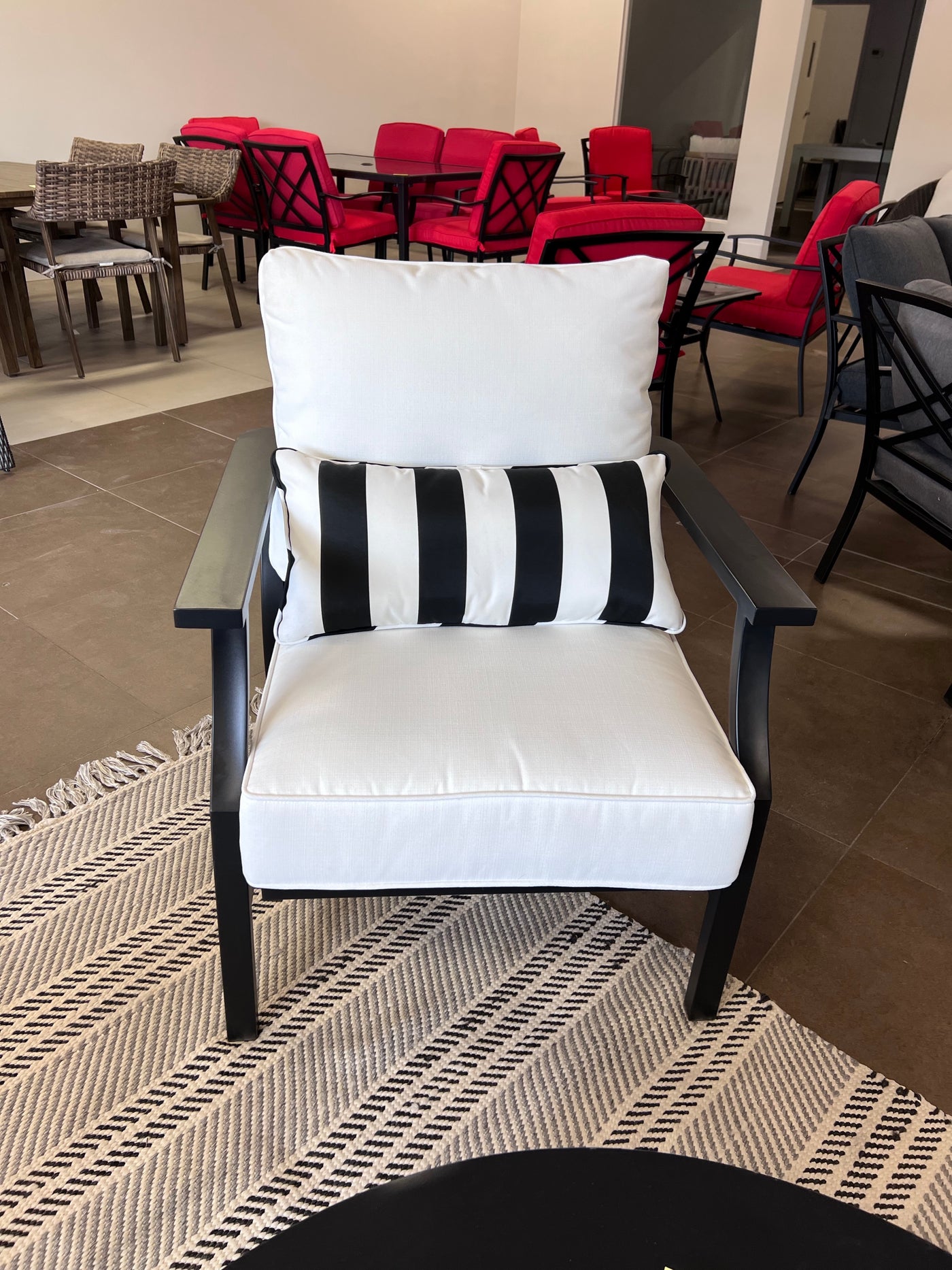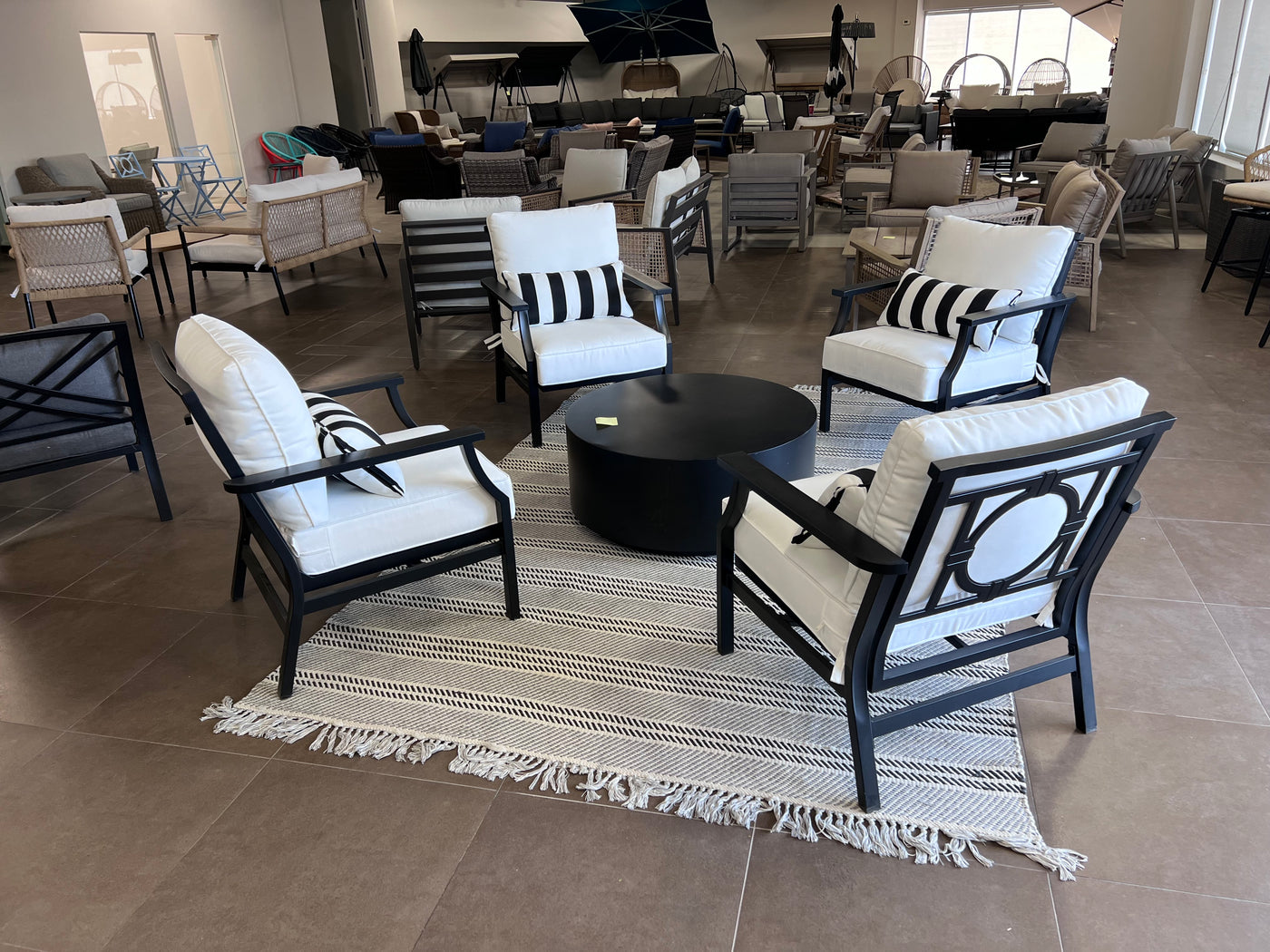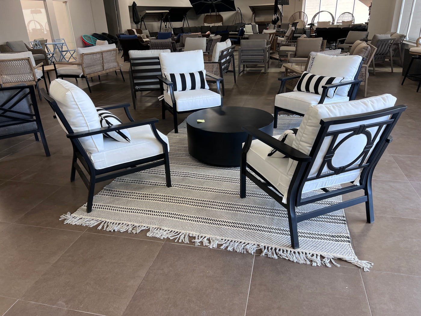 5 pc Set- 4 Club Chairs with White Cushions + Round Coffee Table.