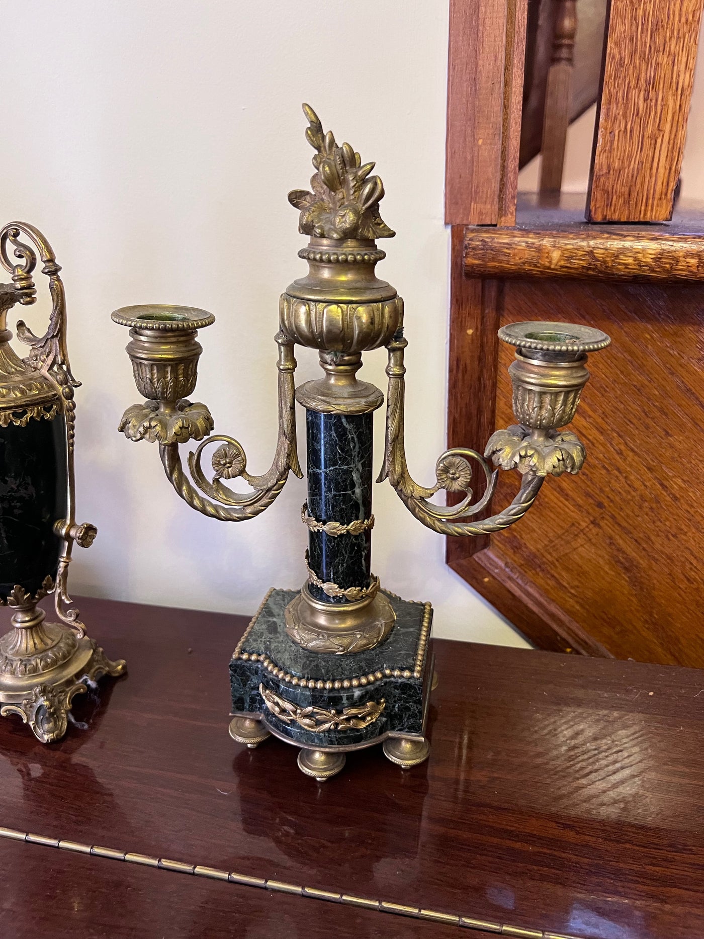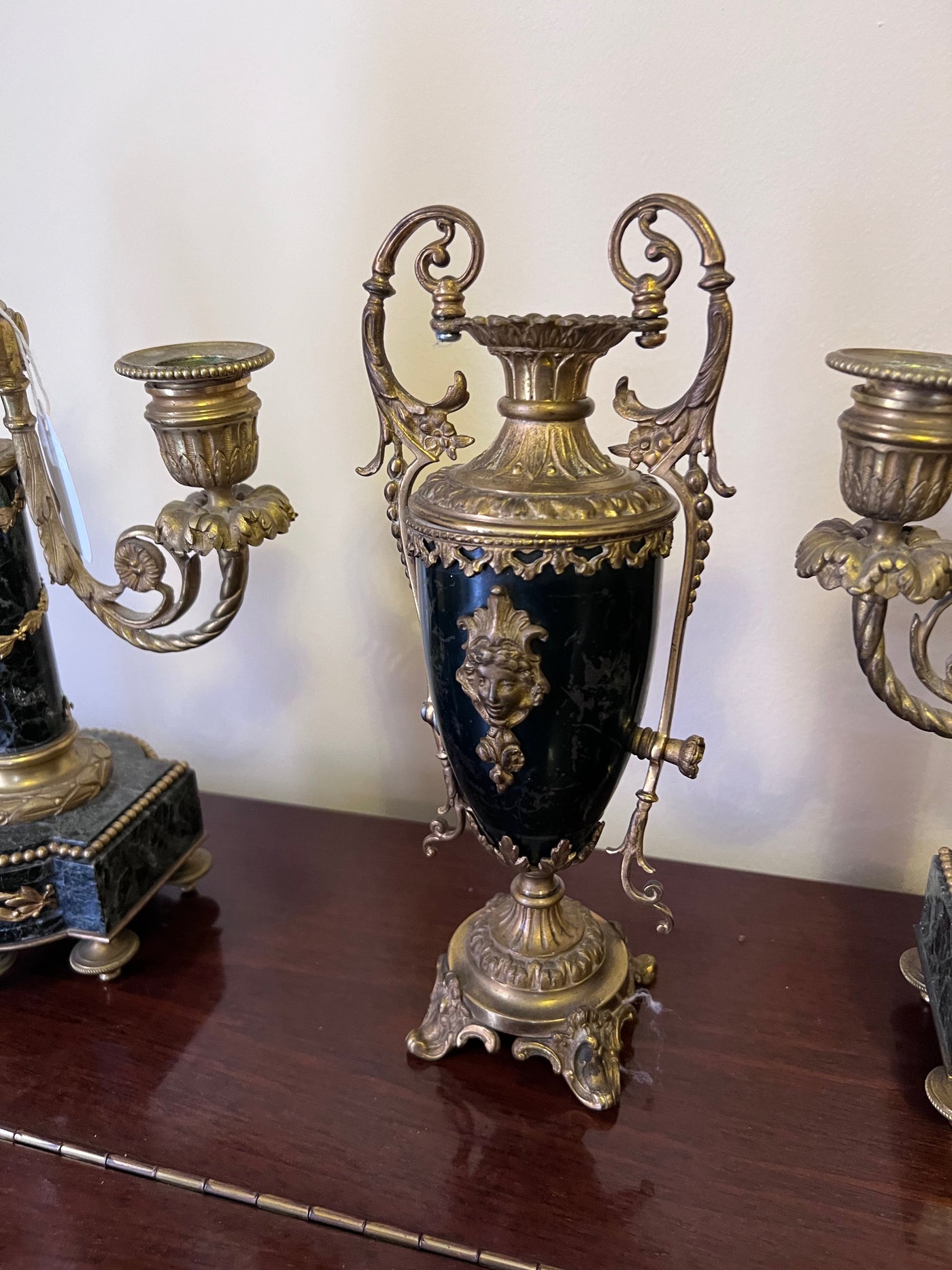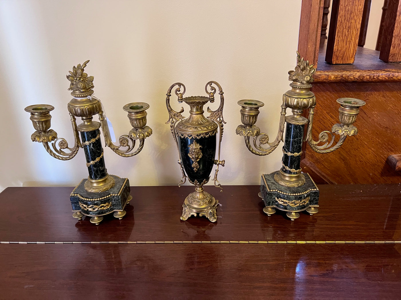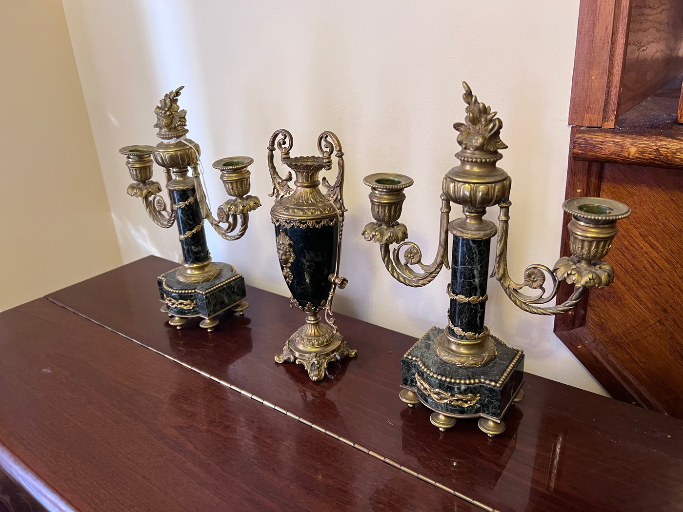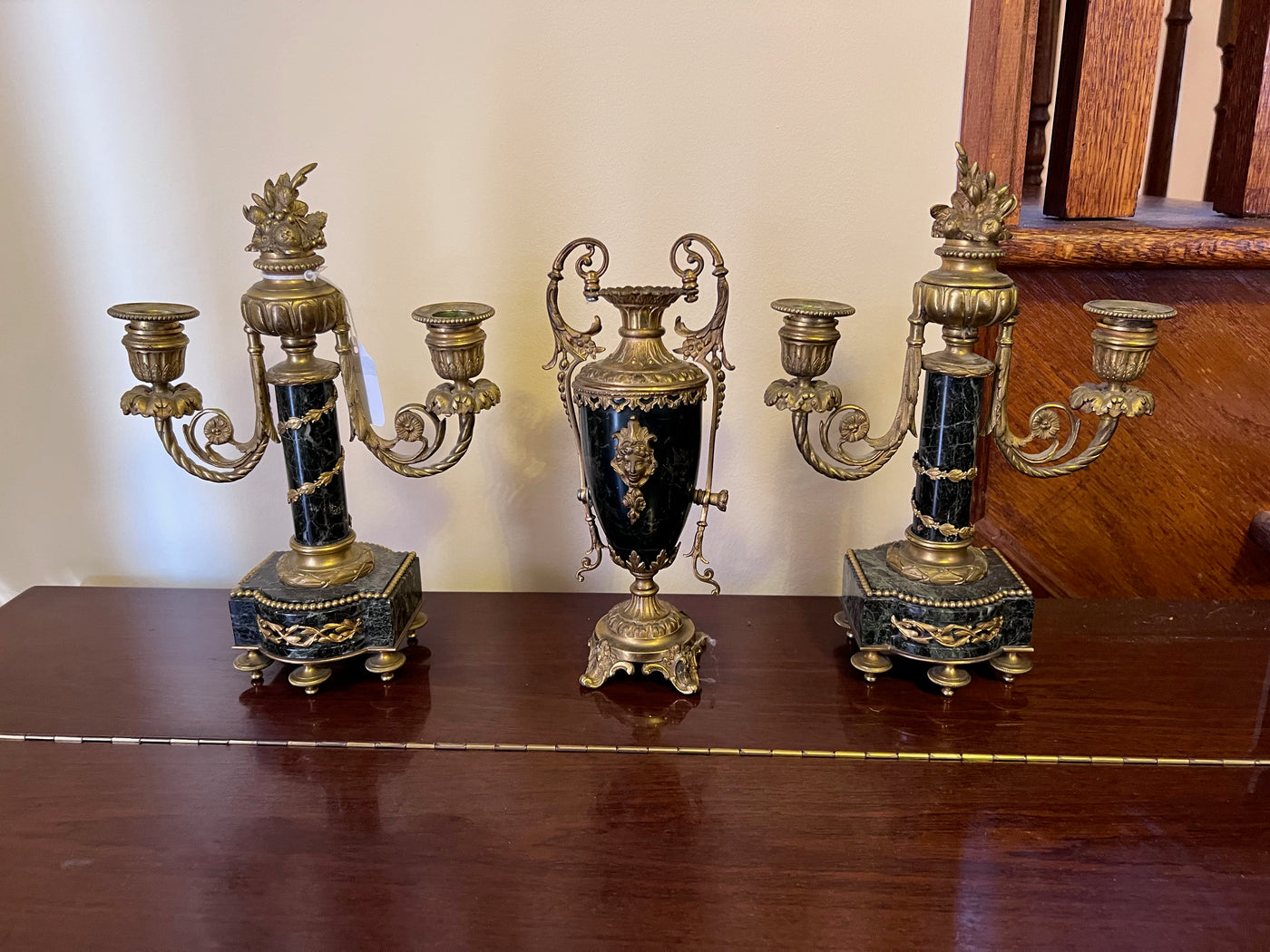 3 Piece Marble and Brass French Candle Holders.