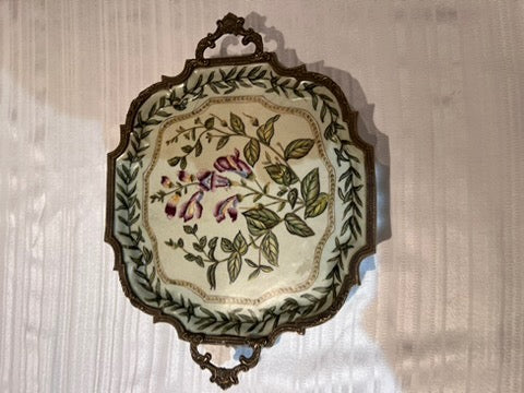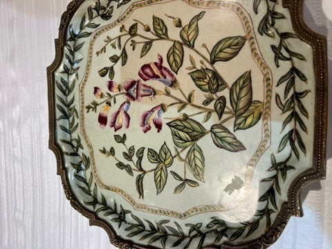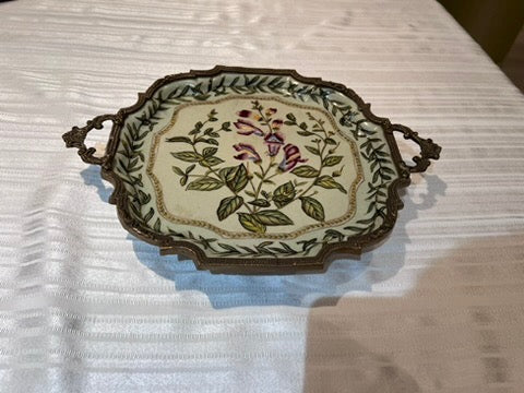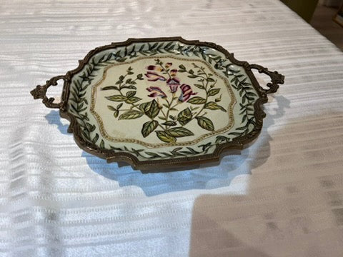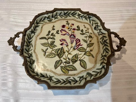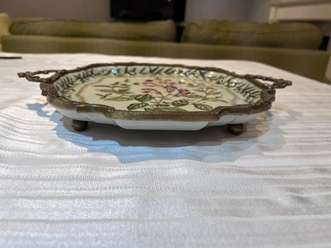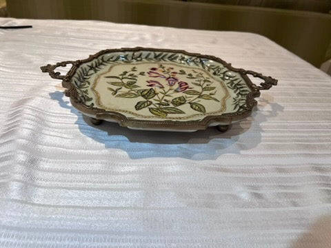 Castilian Imports Hand Painted Footed Tray with Brass Trim.