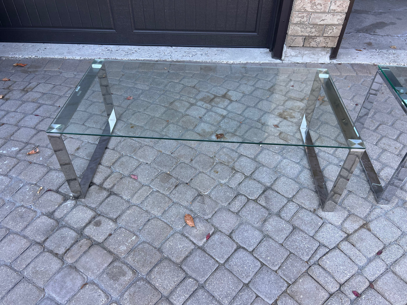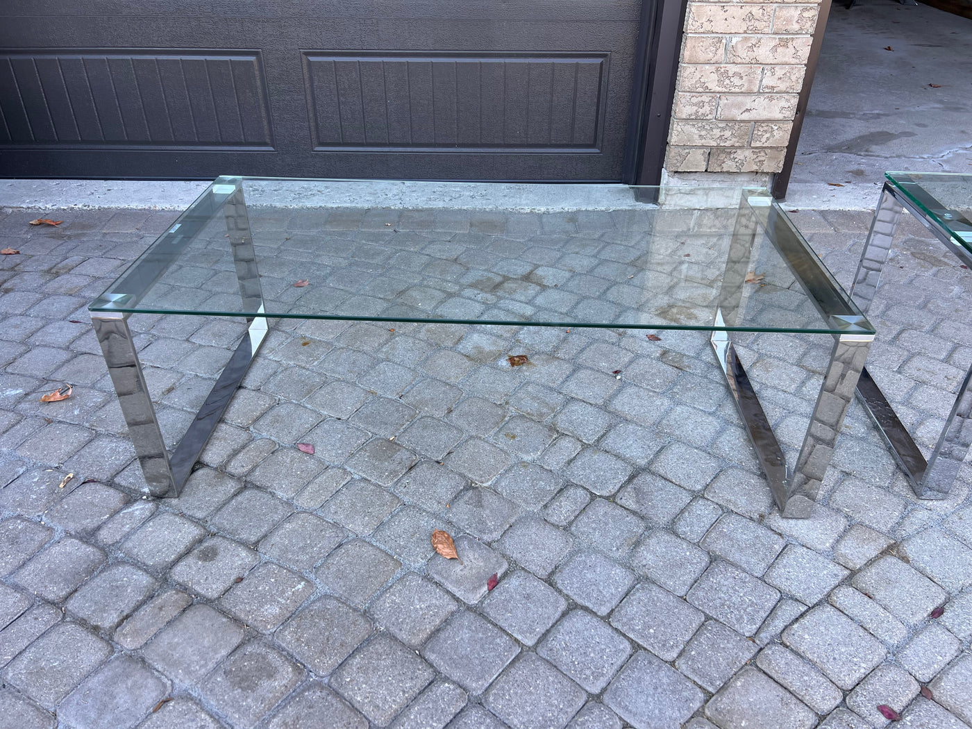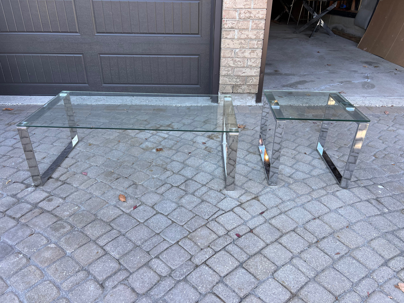 Coffee table- 47" x 23.5" x 16"hSide table- 19.5" x 19.5" x 18"h