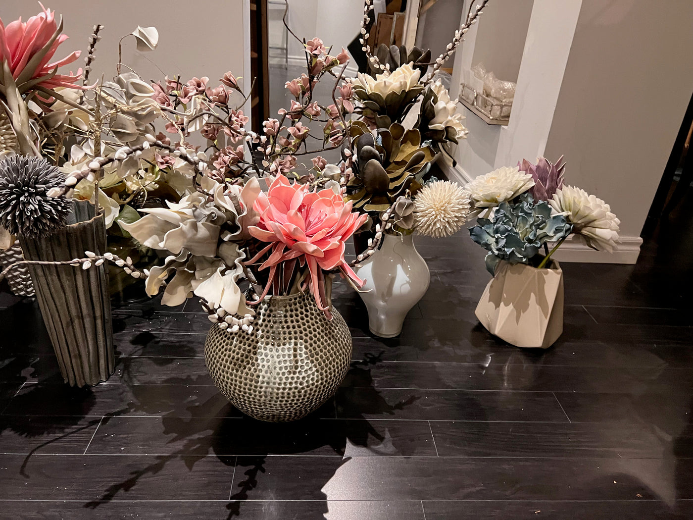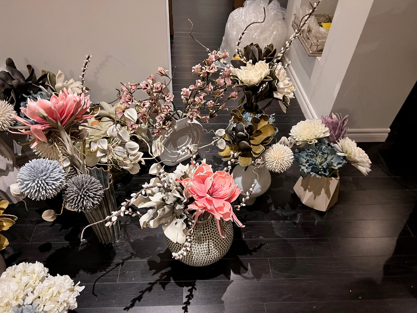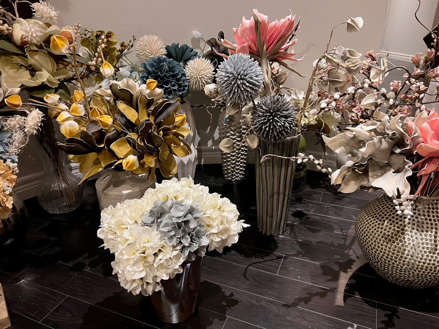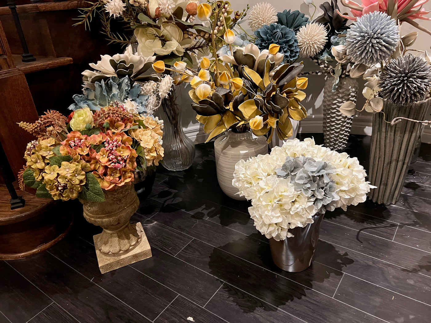 Lot of 15 Vases with Faux Arrangements.