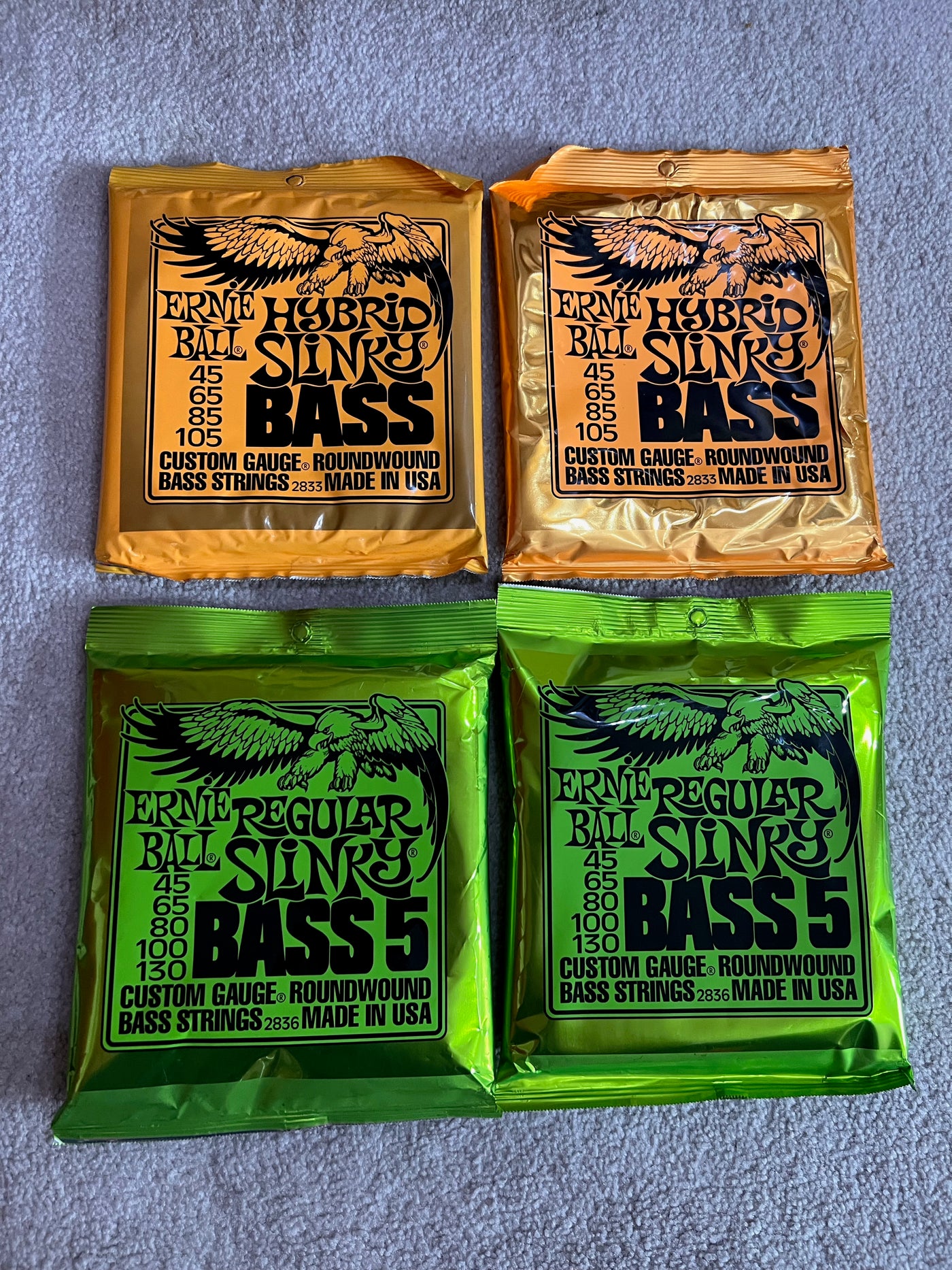 BRAND NEW; 2 EBMM Hybrid Slinky Bass Strings + 2 EBMM Regular Slinky Bass 5 Strings (*retail $124).