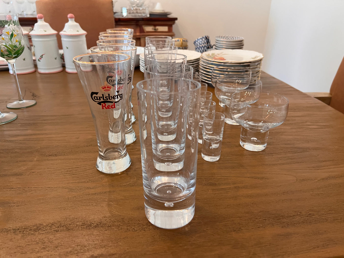 LOT- Kosta Boda Glassware + 6 Carlsberg Red Beer Glasses