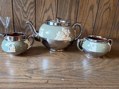 Gibsons Staffordshire England Silver Luster 3 pc Tea Set.