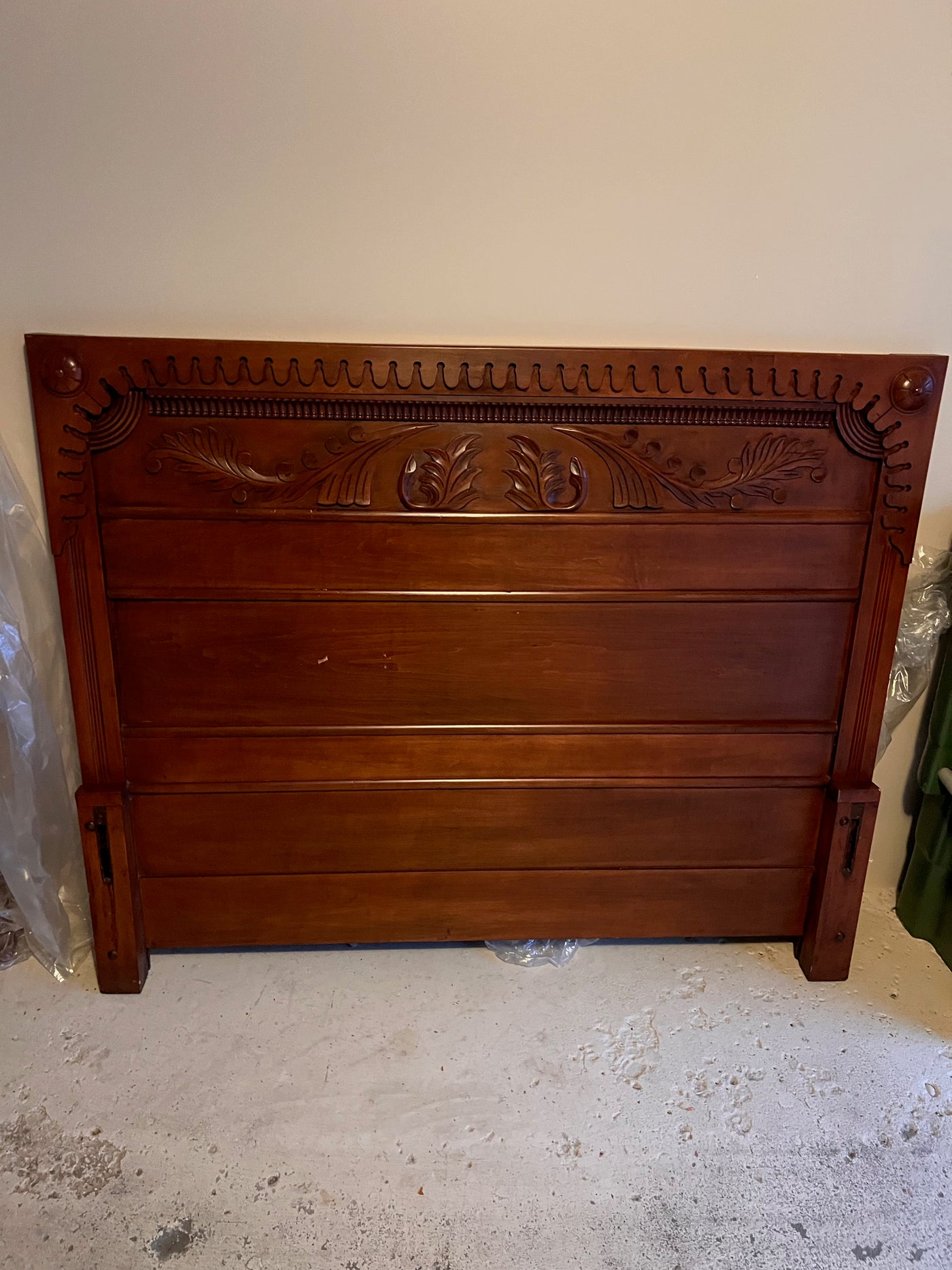 Vintage Solid Wood Queen Bed Frame (Headboard, footboard, side rails).