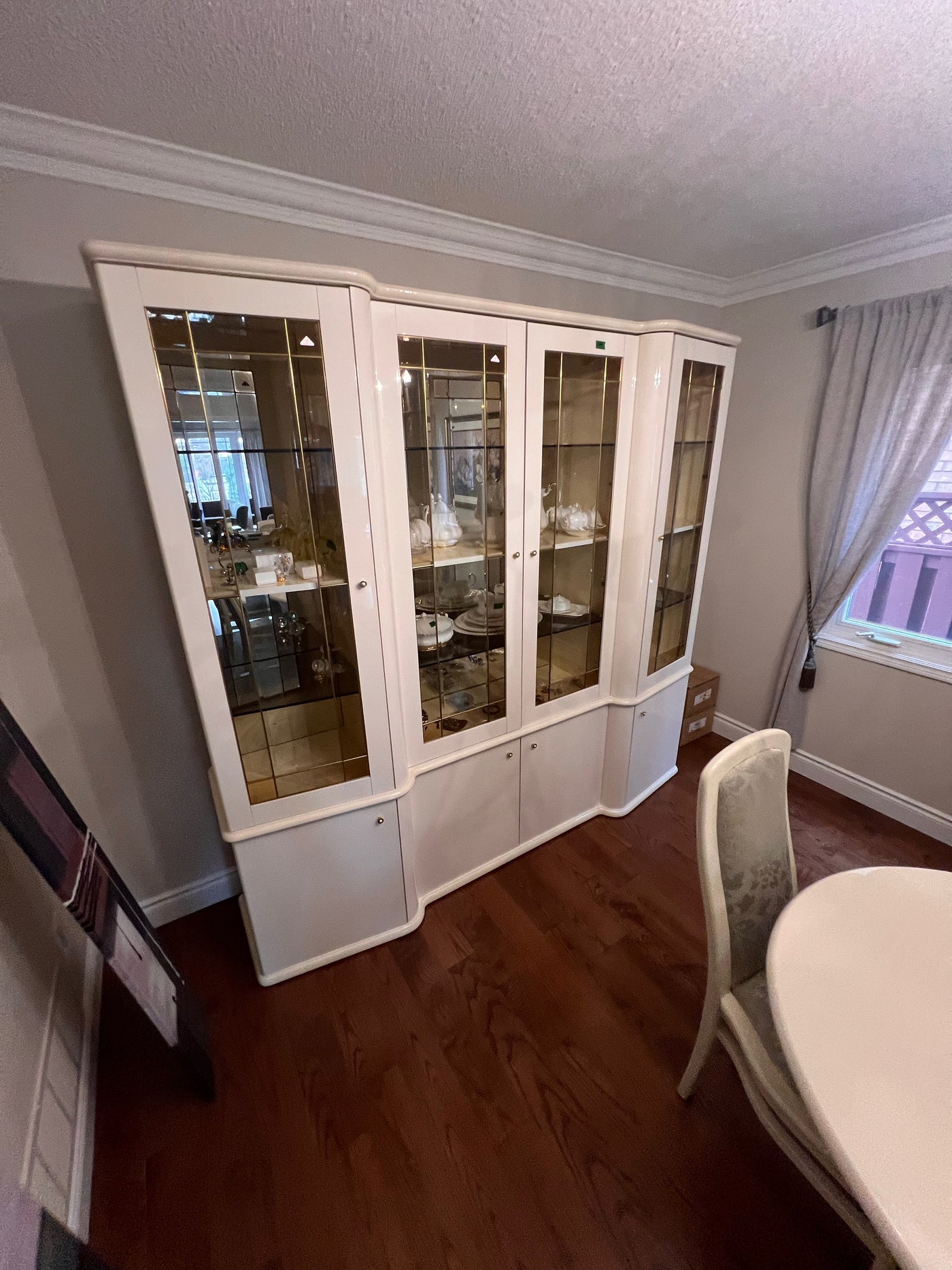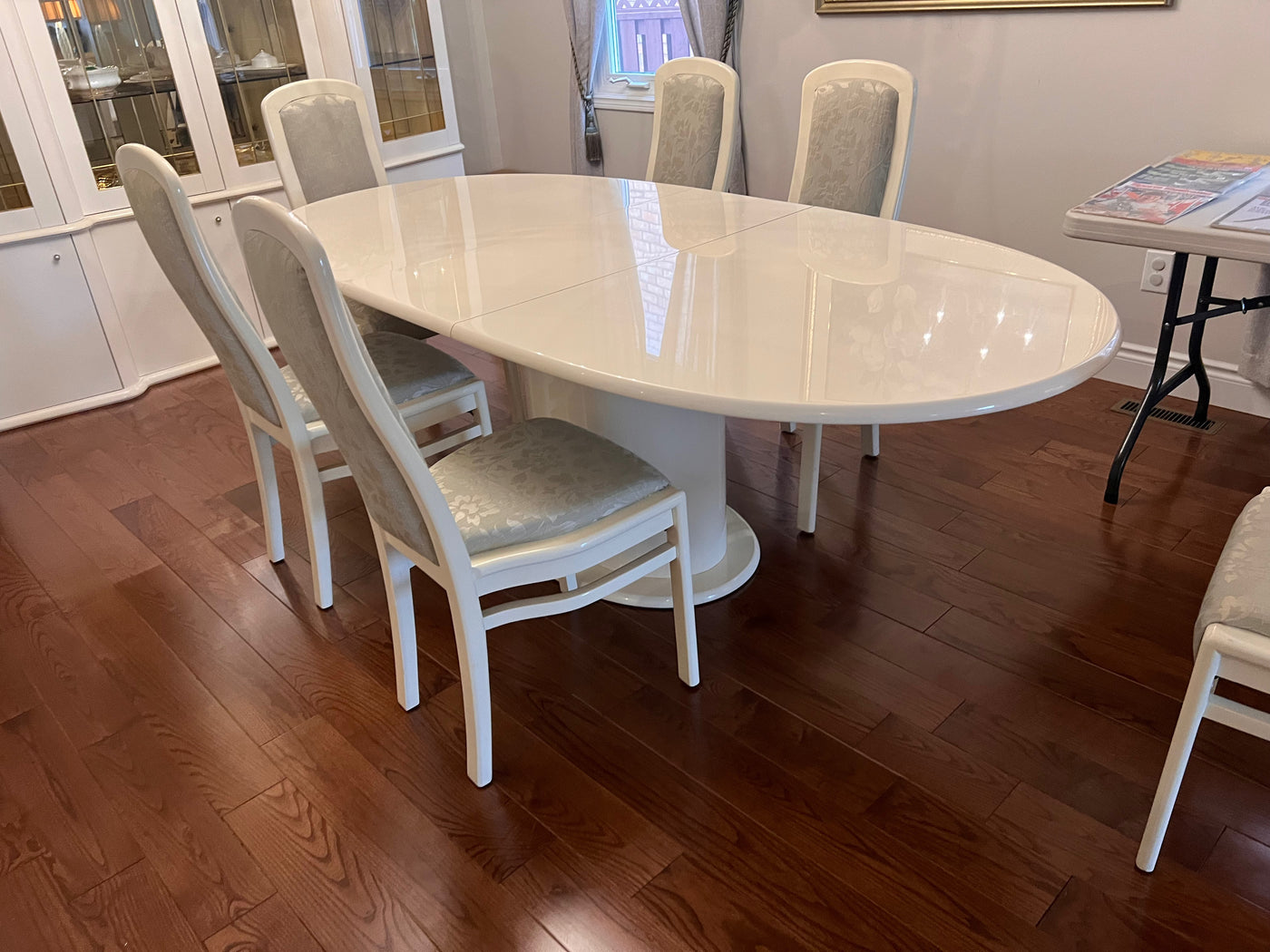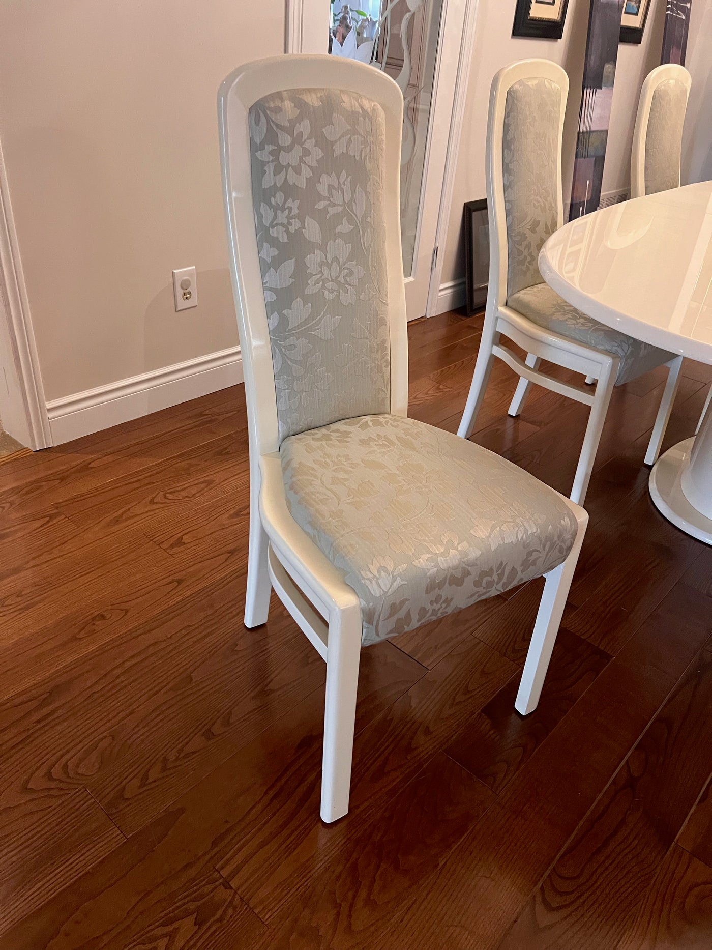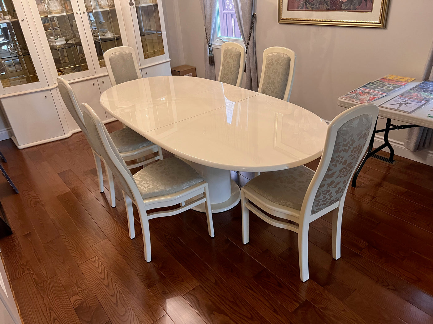Vintage Italian White Lacquered Dining Table + 6 Chairs with Matching Hutch/Display Cabinet