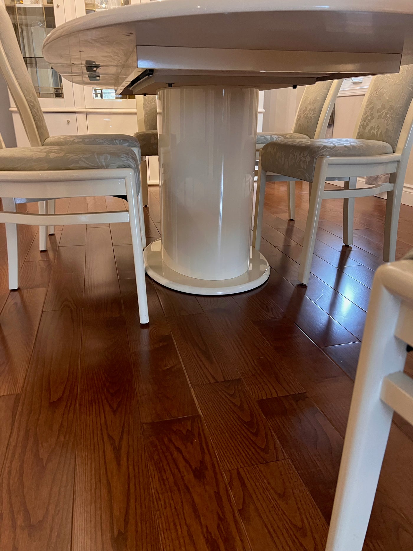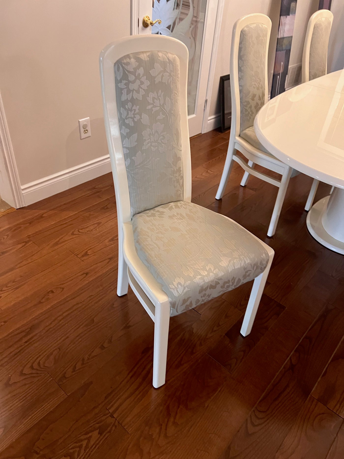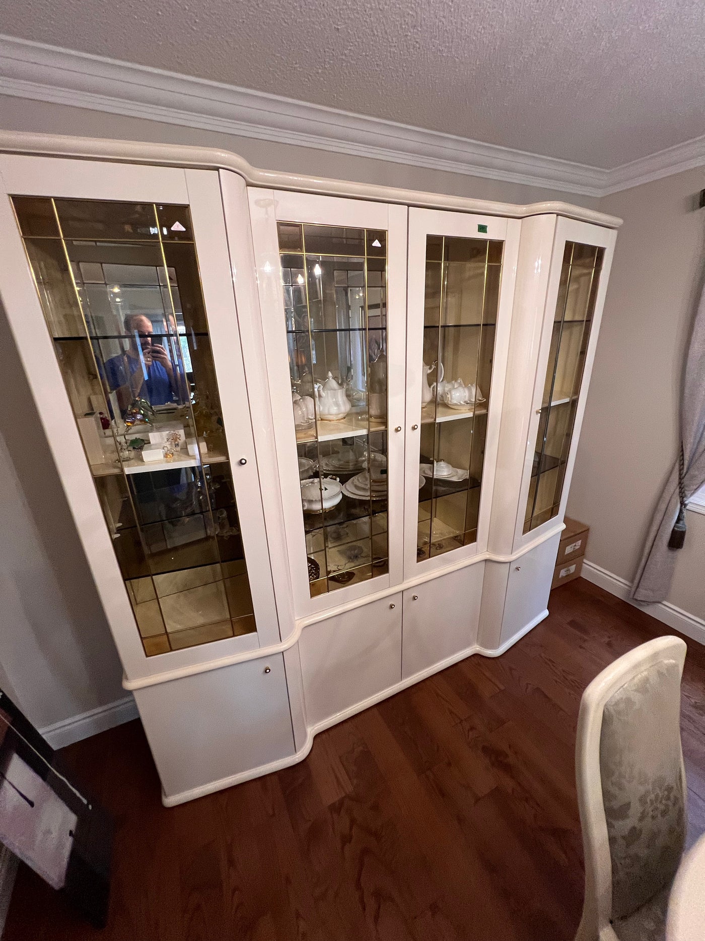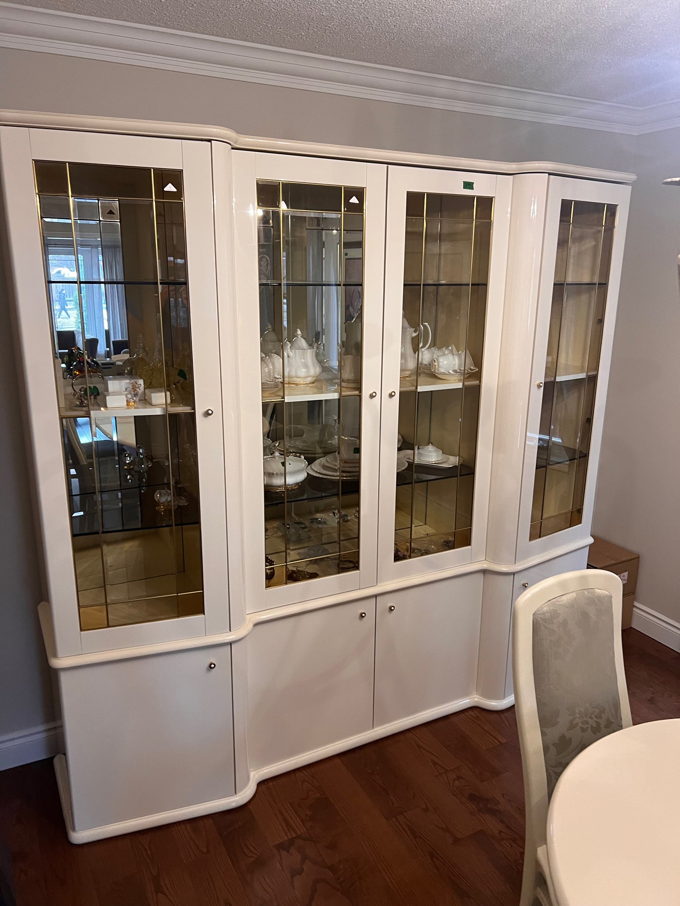 Vintage Italian White Lacquered Dining Table + 6 Chairs with Matching Hutch/Display Cabinet