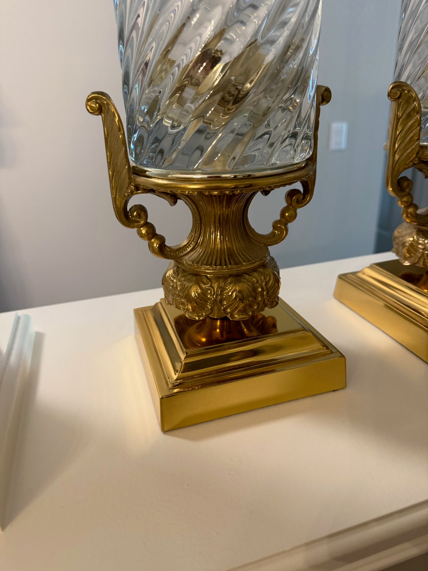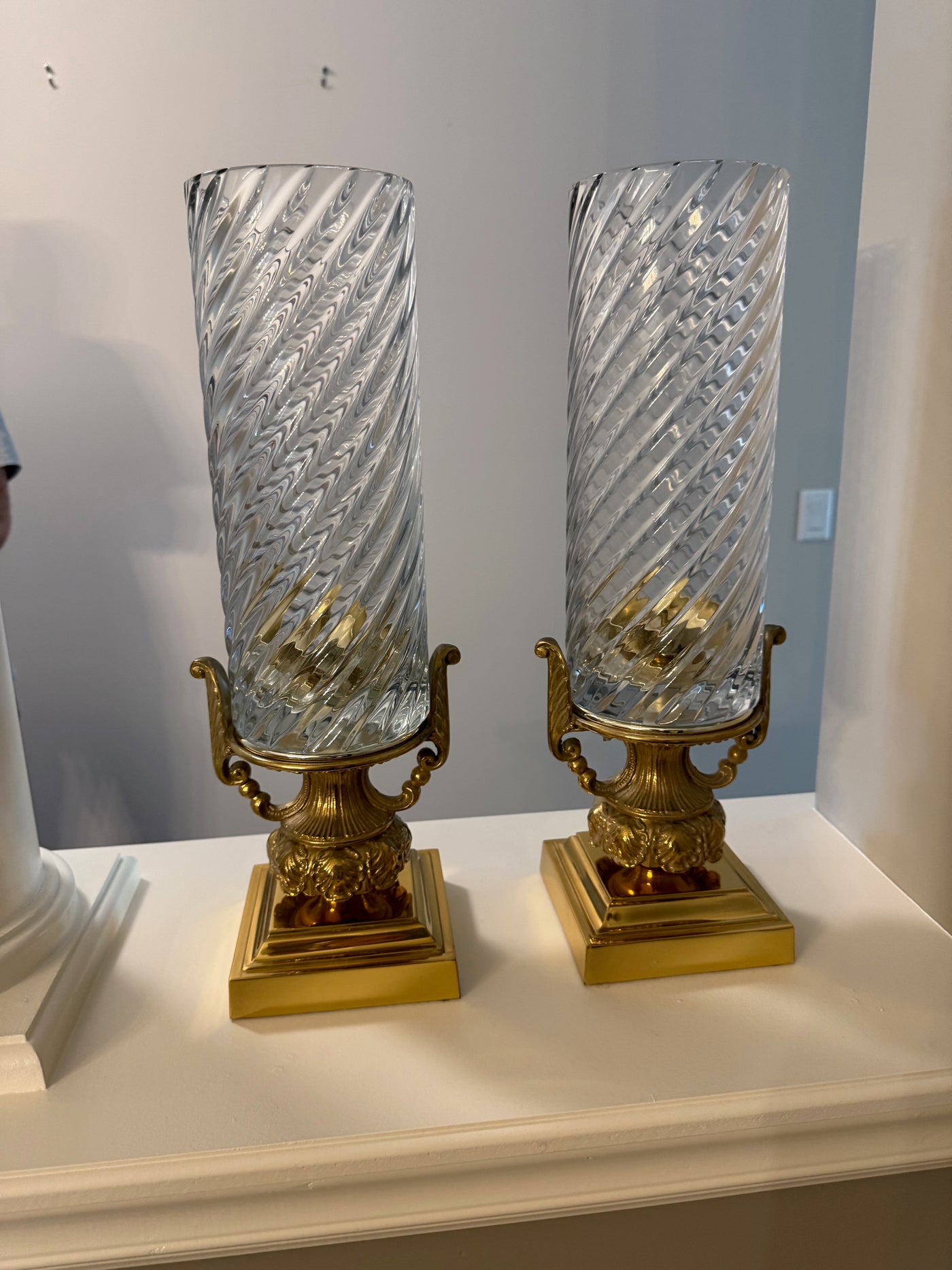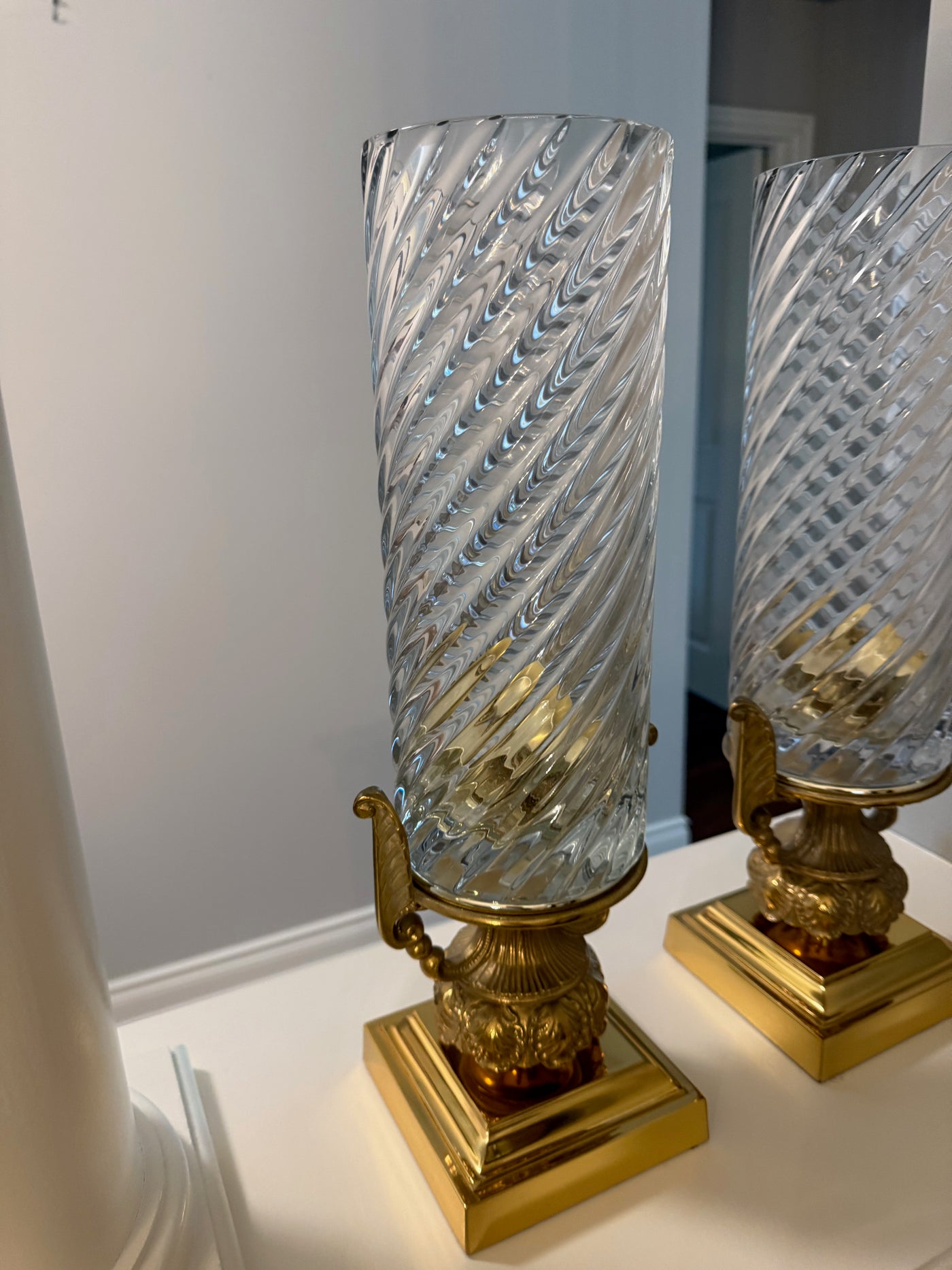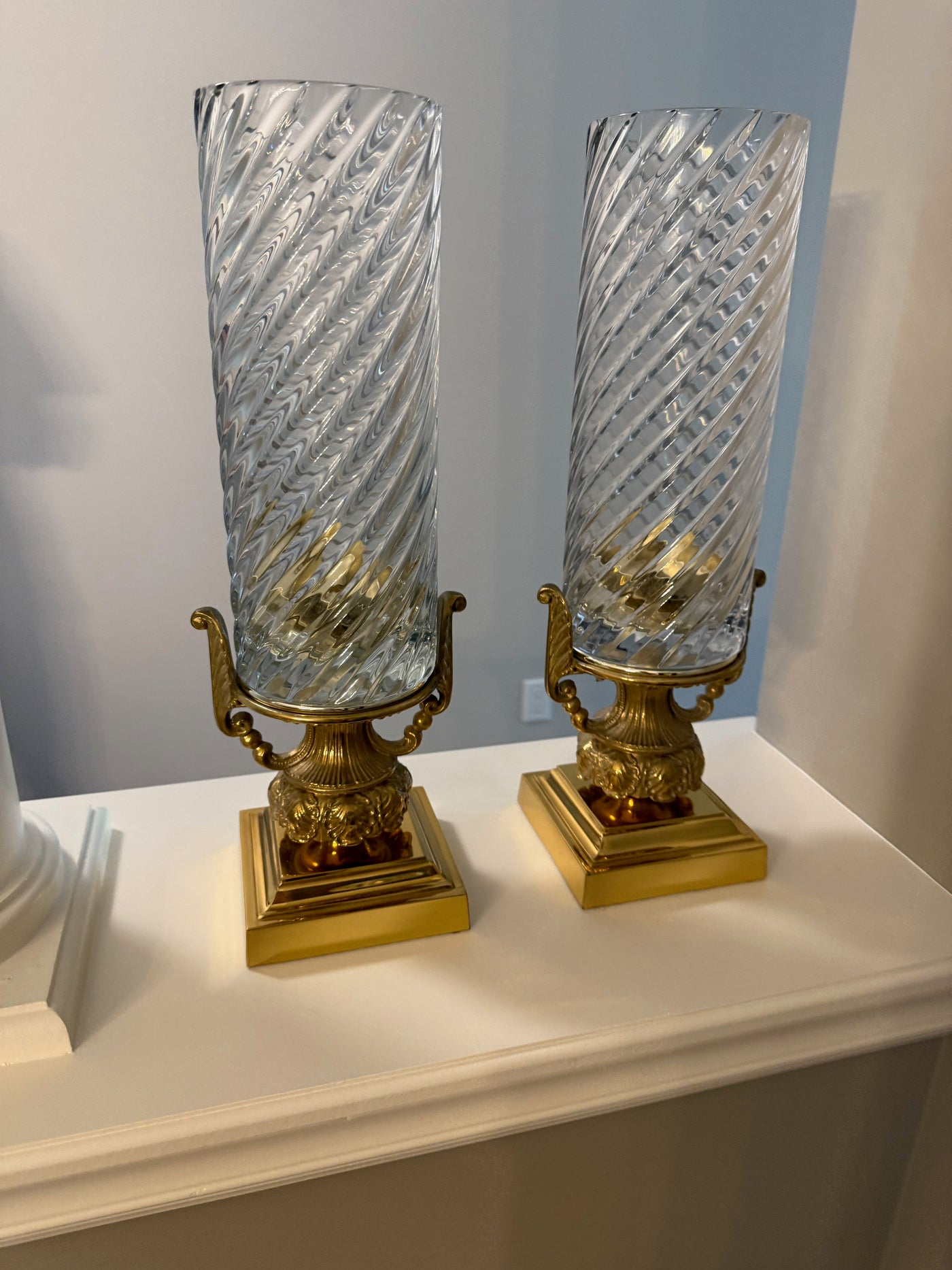Pair of glass and brass candle holders from Martin Daniel (*retail $480).