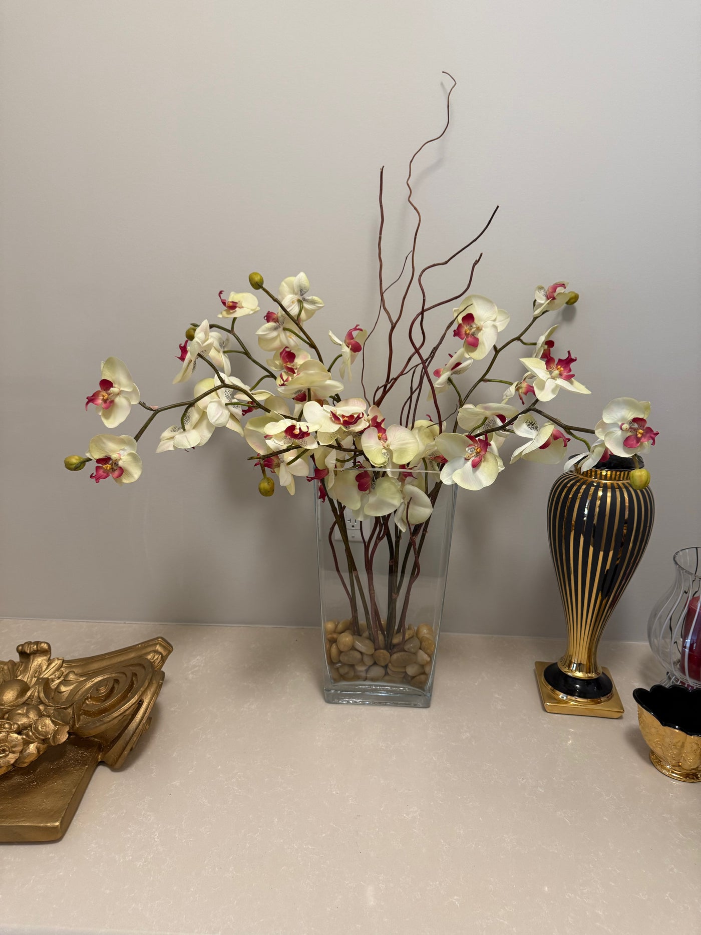 Glass Vase with faux arrangement