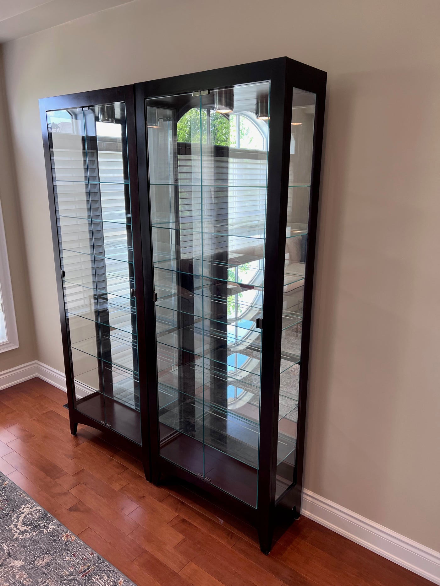 2 Philip Reinisch Company 33680 SIMPLICITY MERLOT CURIO CABINETS- Dark Brown.