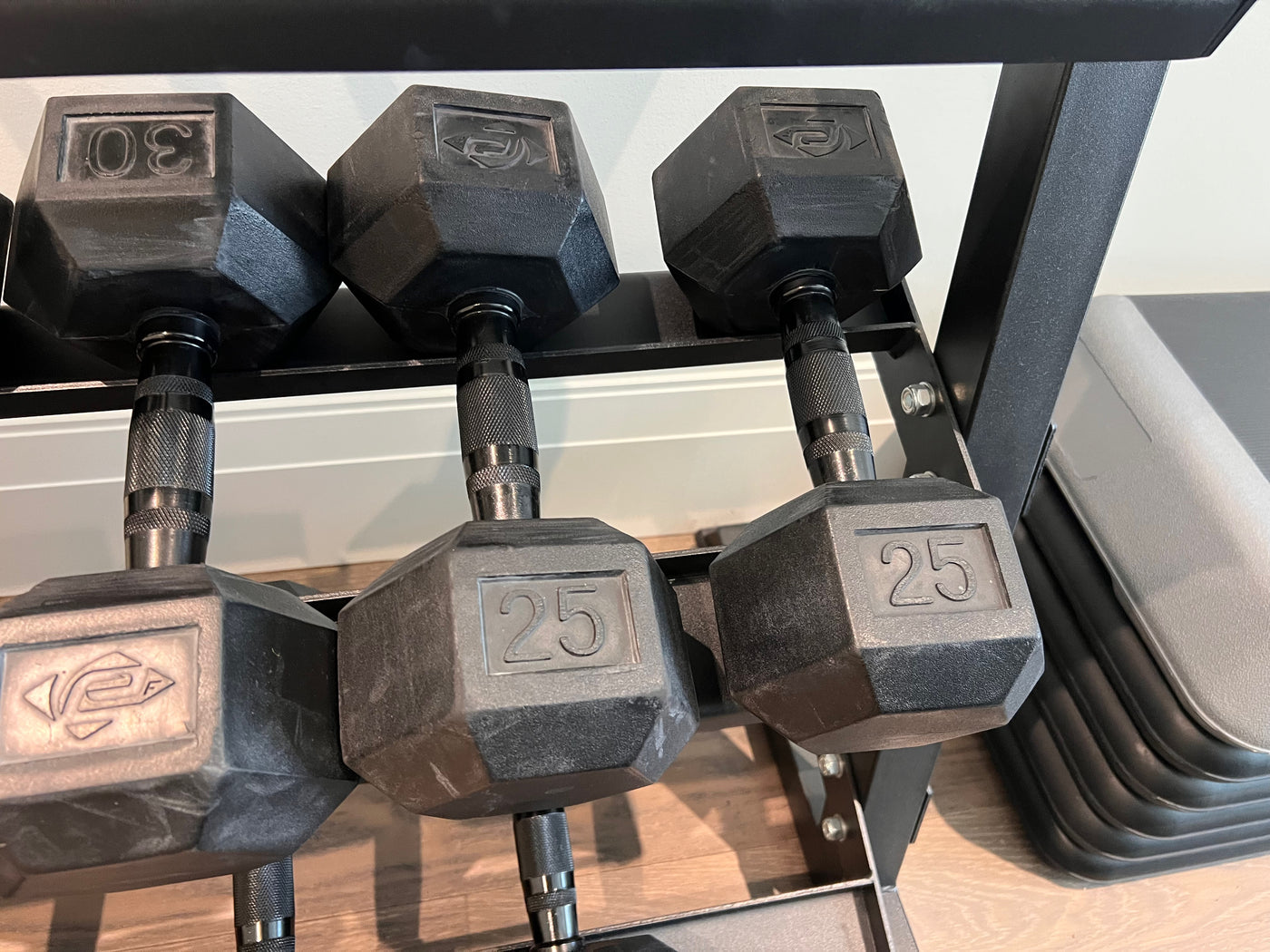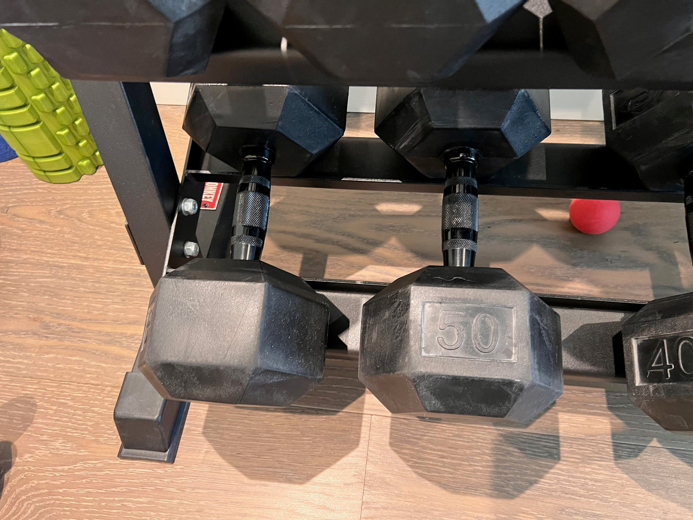 7 Sets of Dumbbells + Xtreme Monkey Dumbbell Rack.