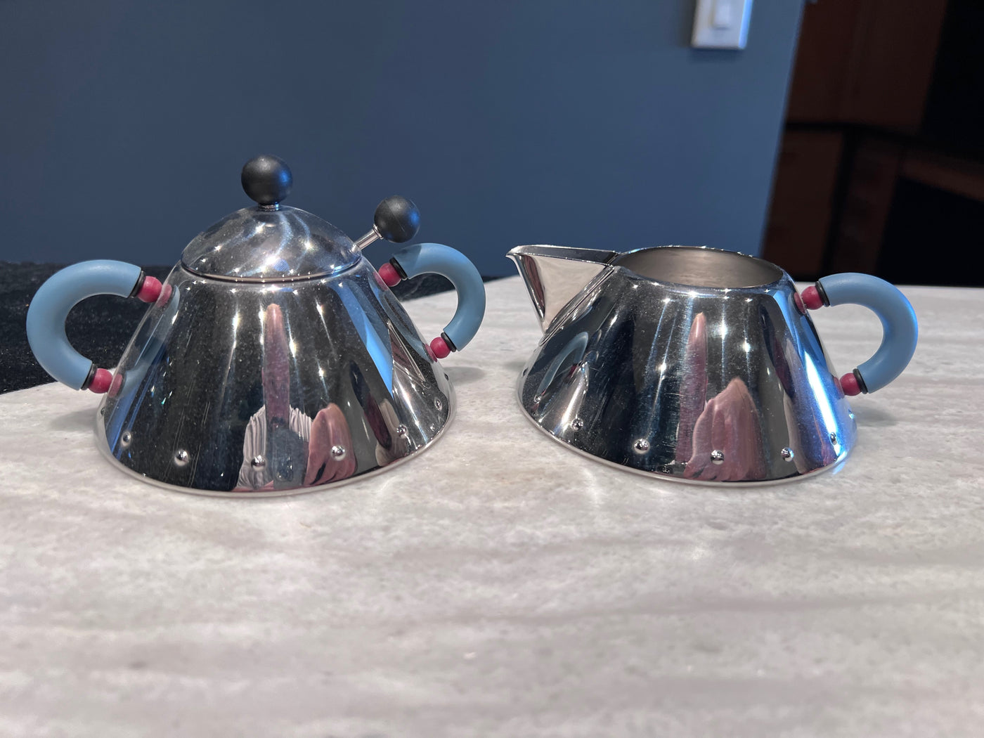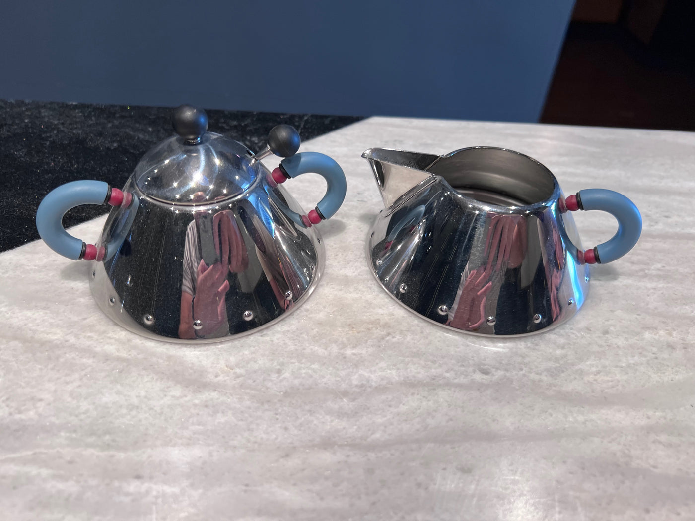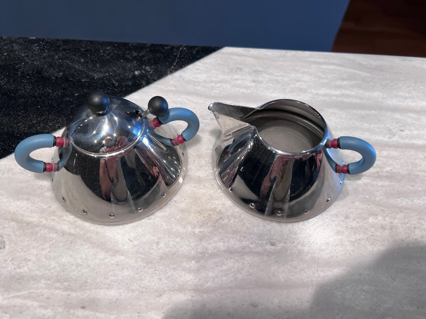 Alessi Cream & Sugar w/Spoon, Designed by Michael Graves.