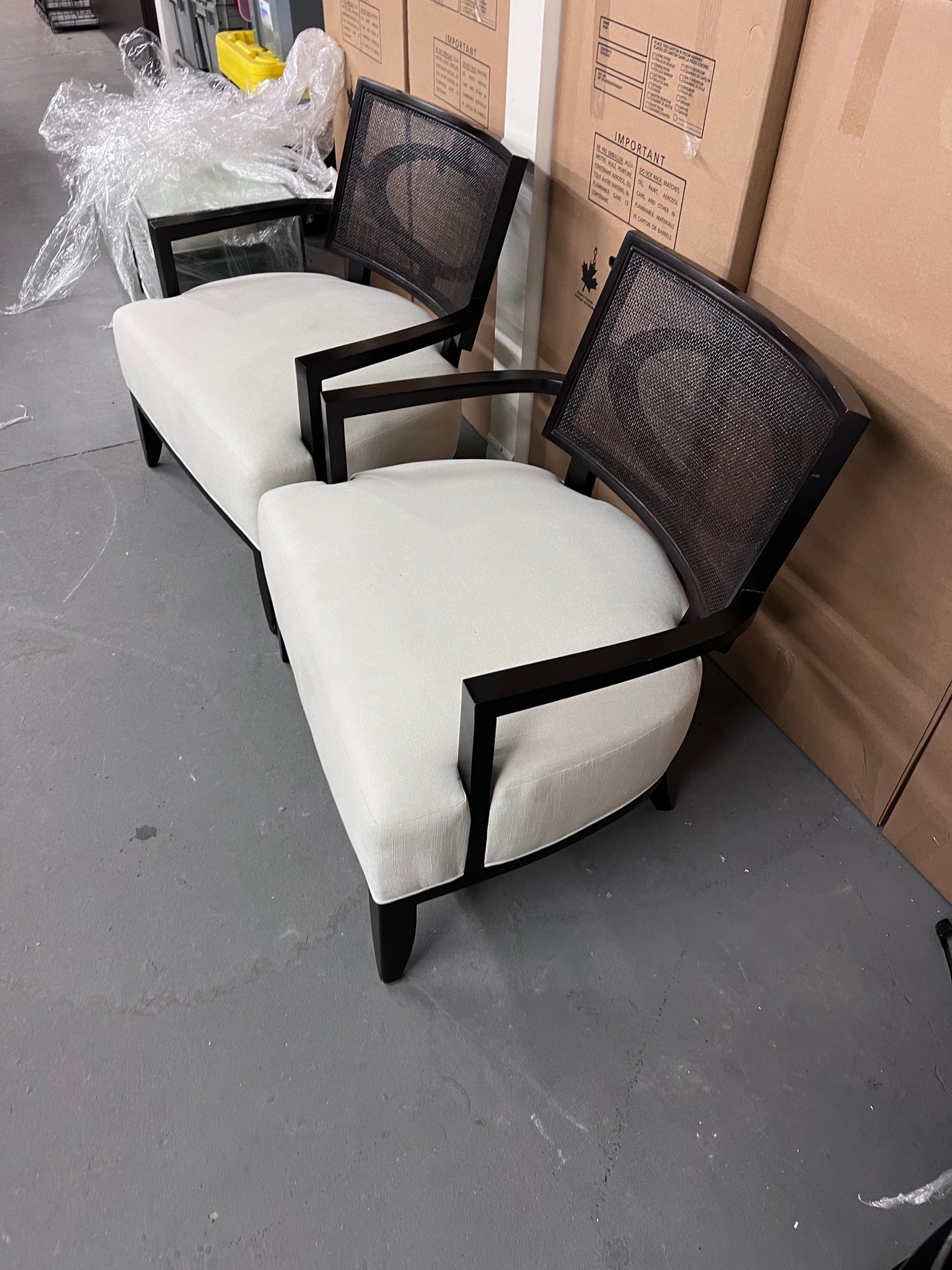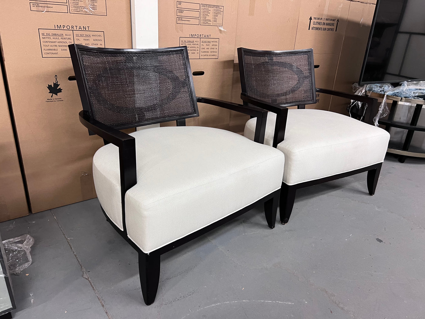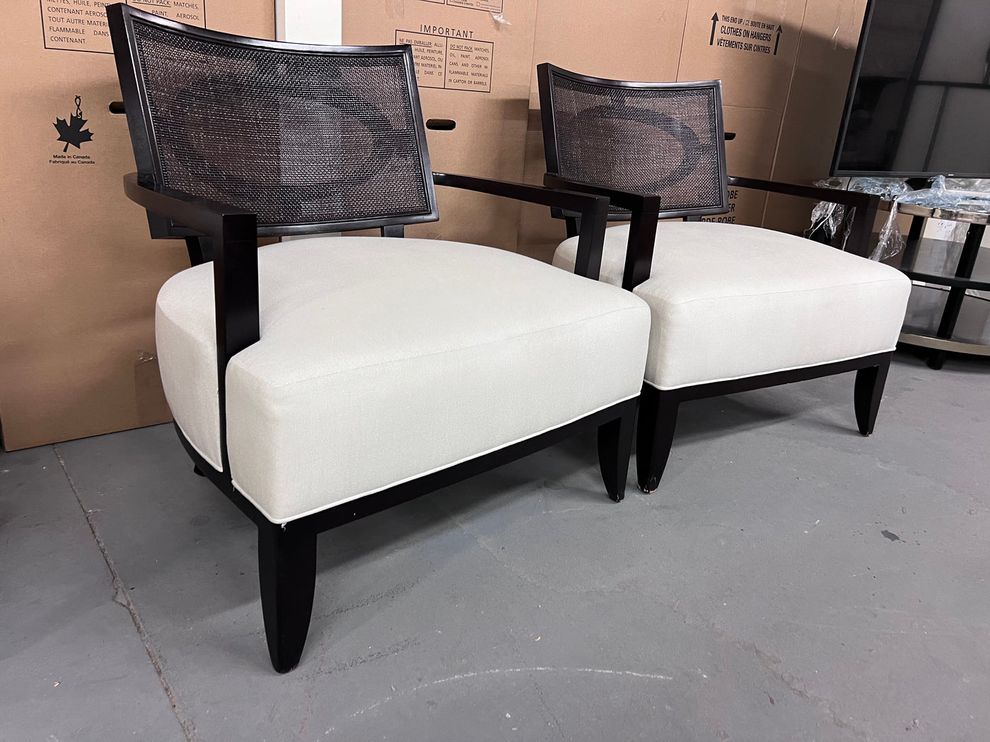 Pair of Barbara Barry for Henredon 'Open Oval Cane' Lounge Chairs