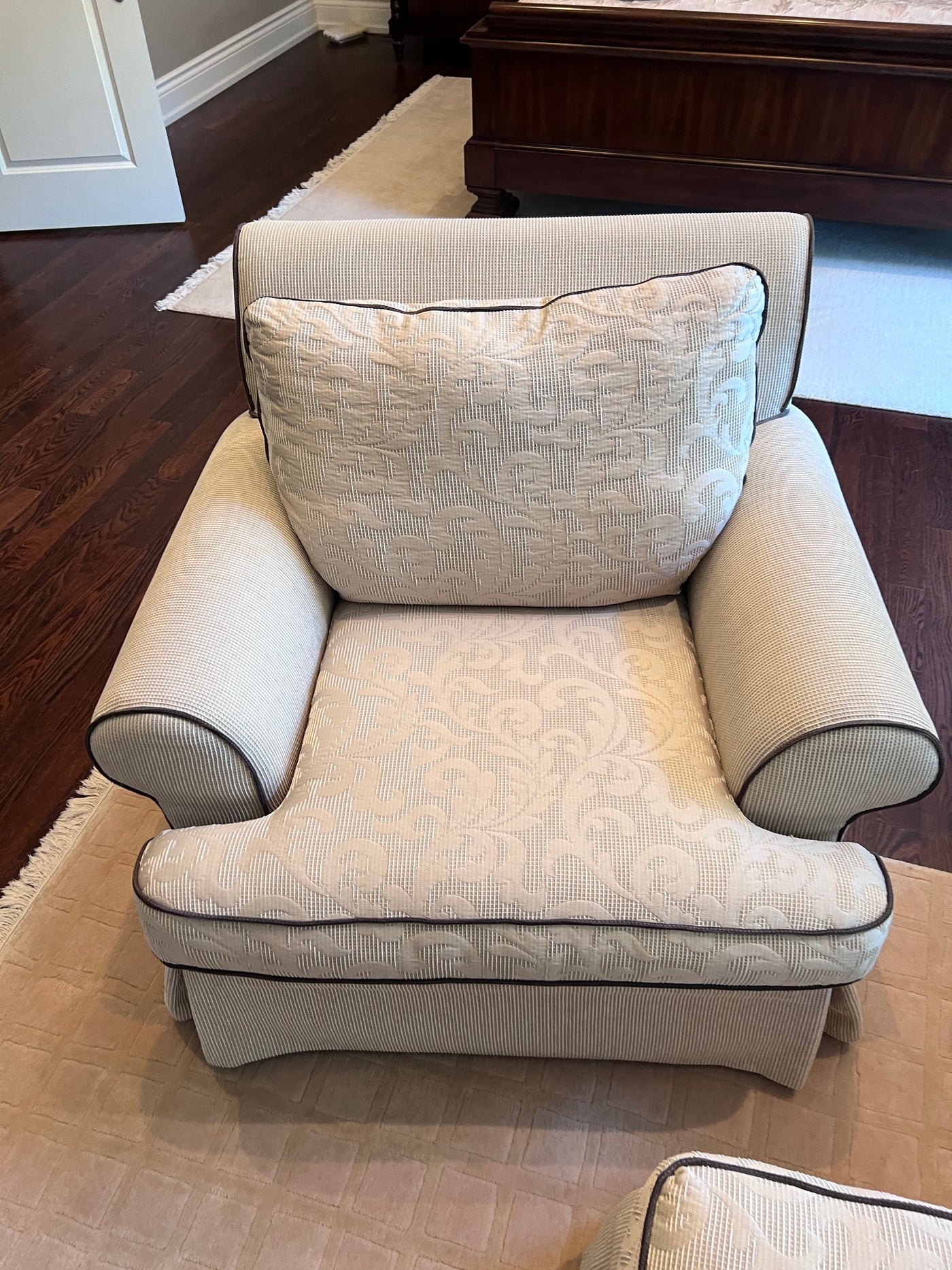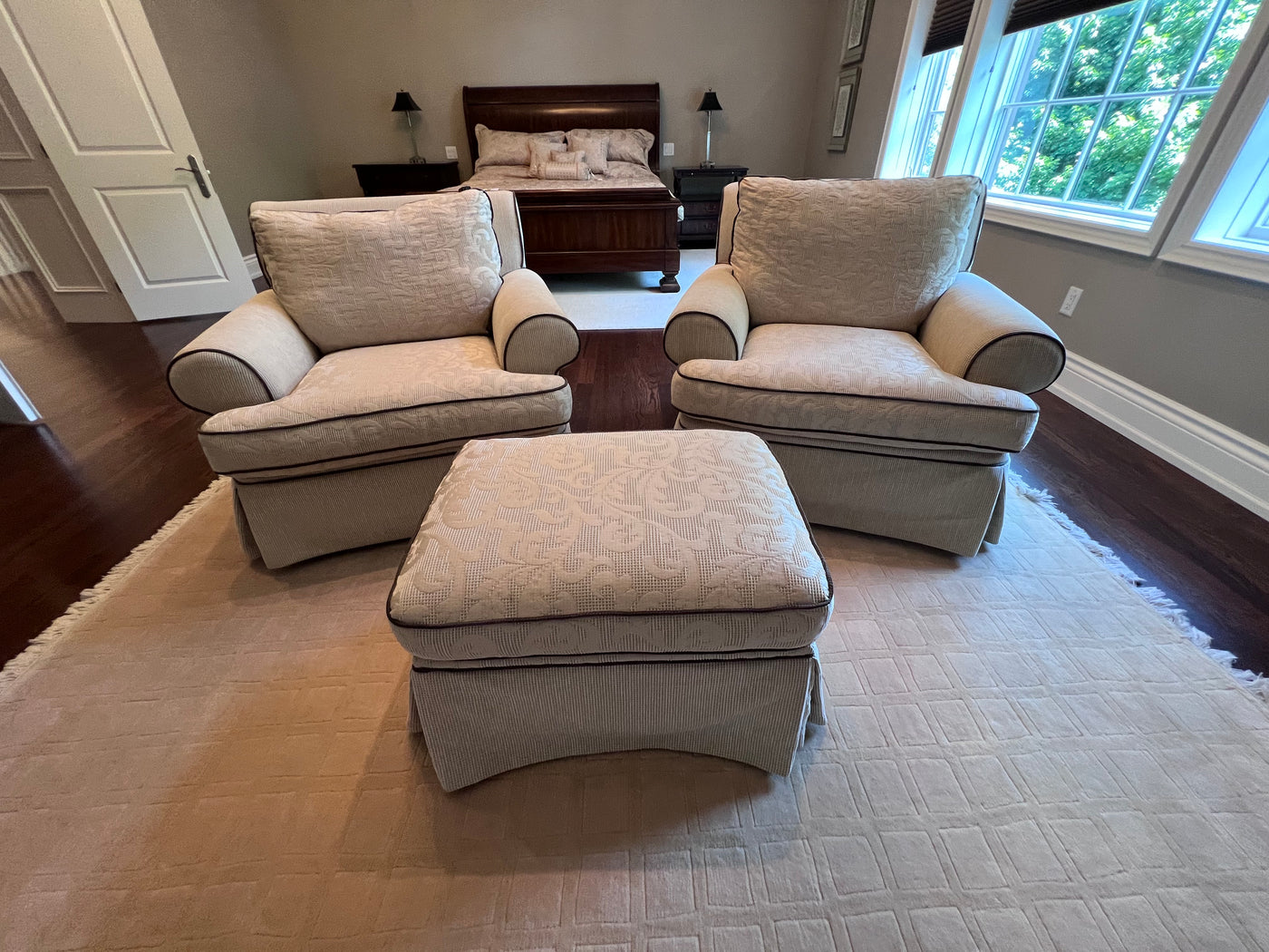Chairs- 43" x 39" x 34"hOttoman- 28" x 21" x 18"h