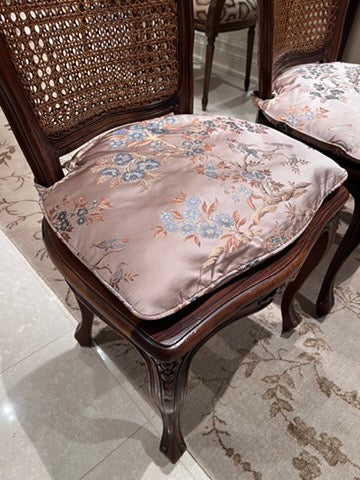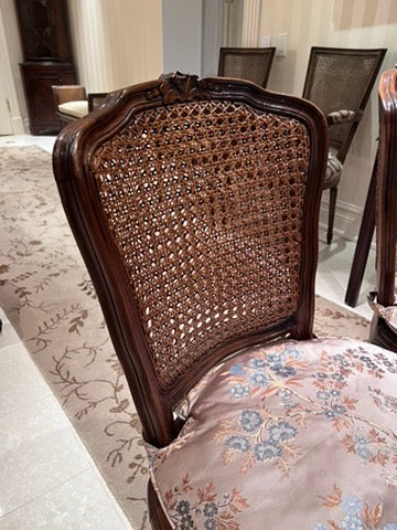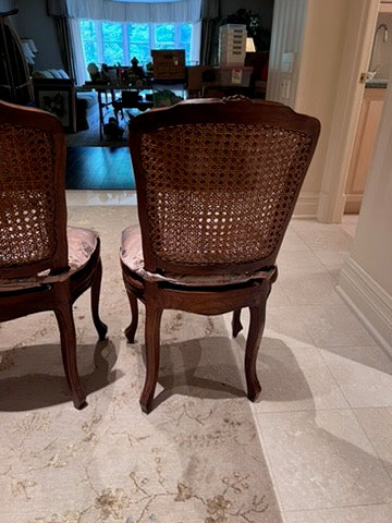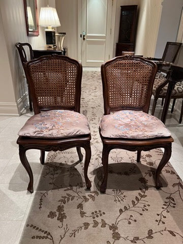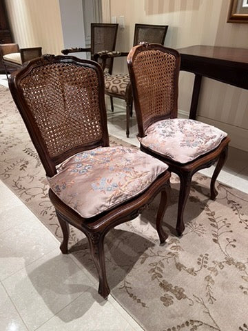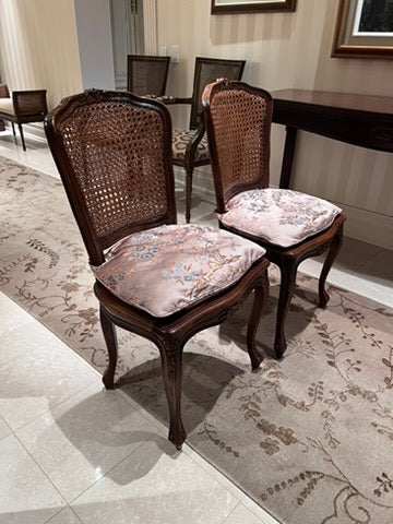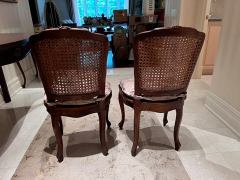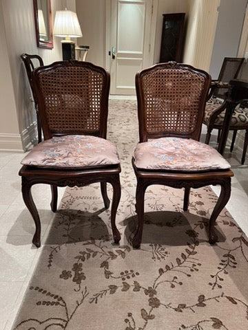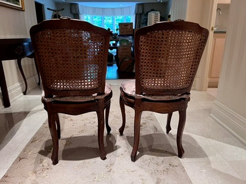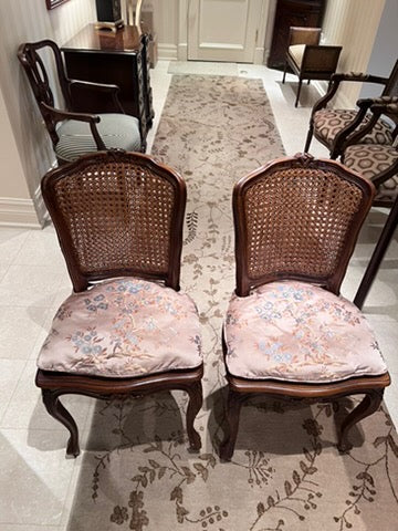 Pair of Louis XV Carved Double Cane Back Side Chairs, w/Silk Cushions.