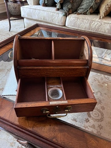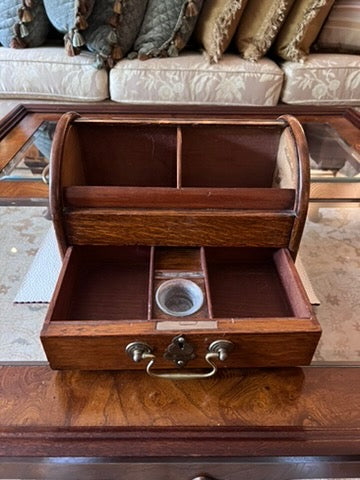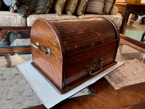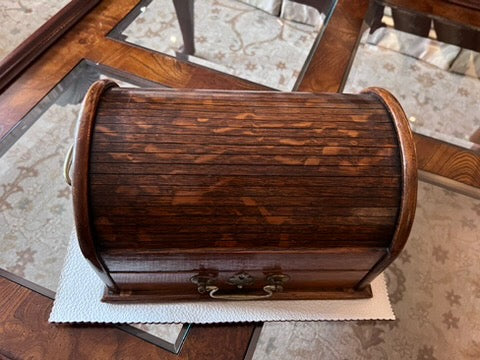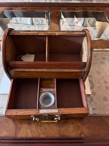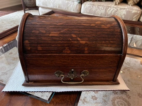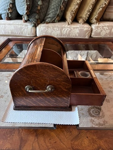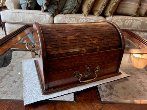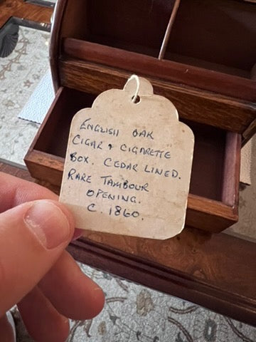 Antique English Oak Cigar & Cigarette Box, Cedar Lined with a Rare Tambour Opening, Circa 1860.