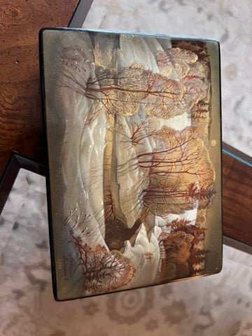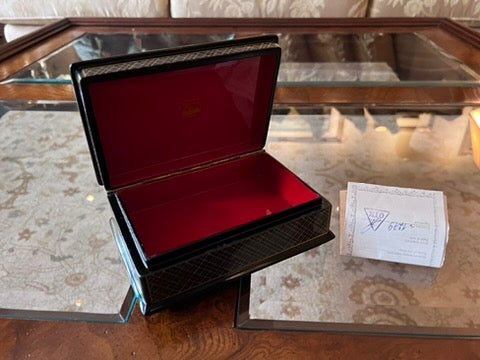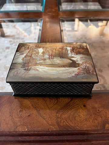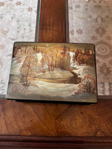 Mother Of Pearl Fedoskino Russian Lacquer Box. Includes original certificate.