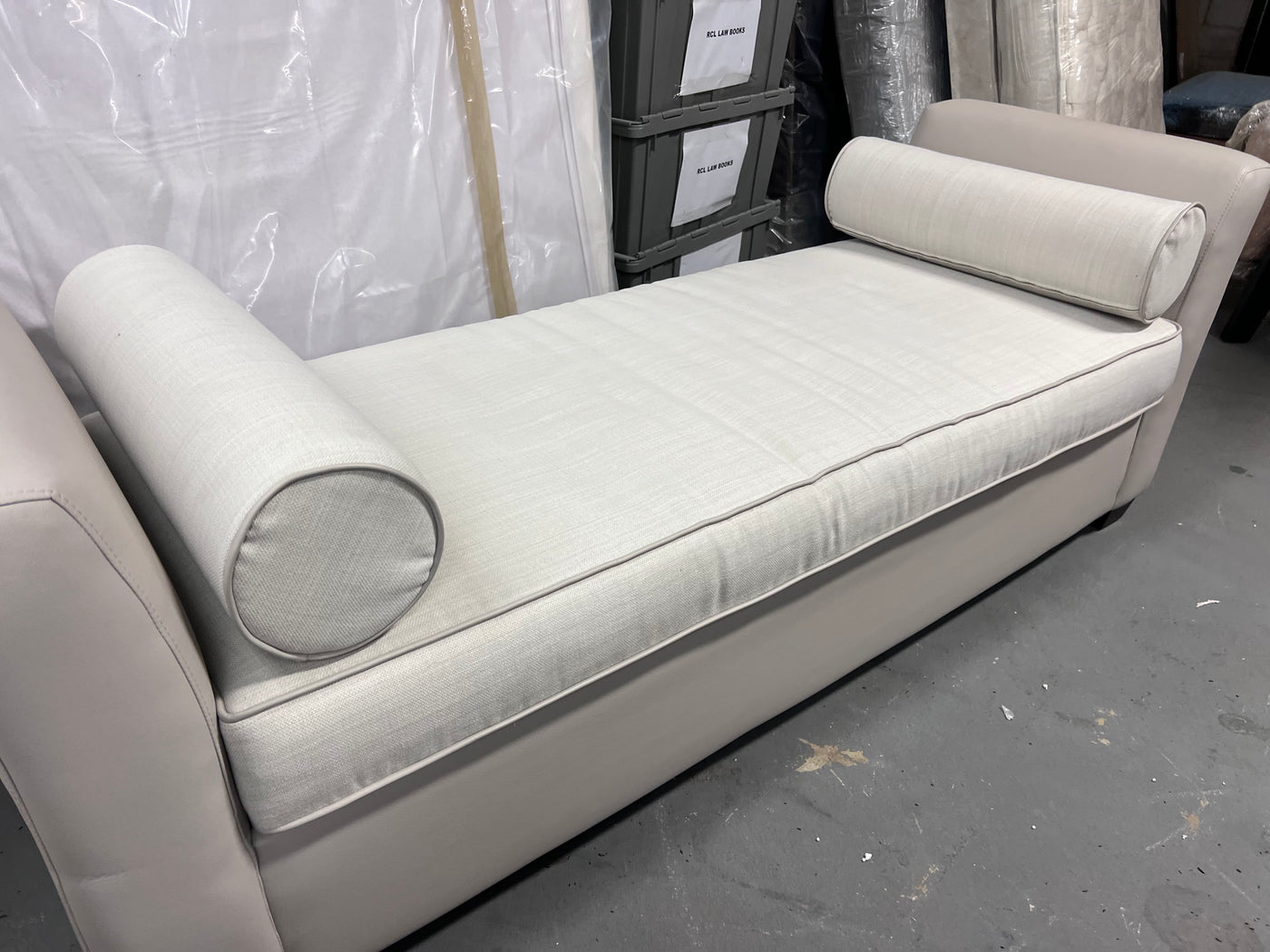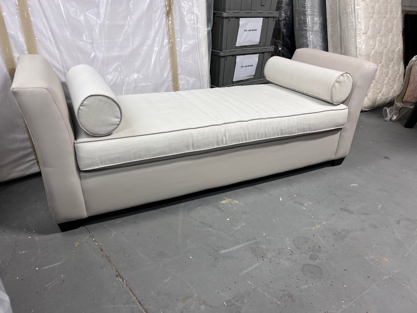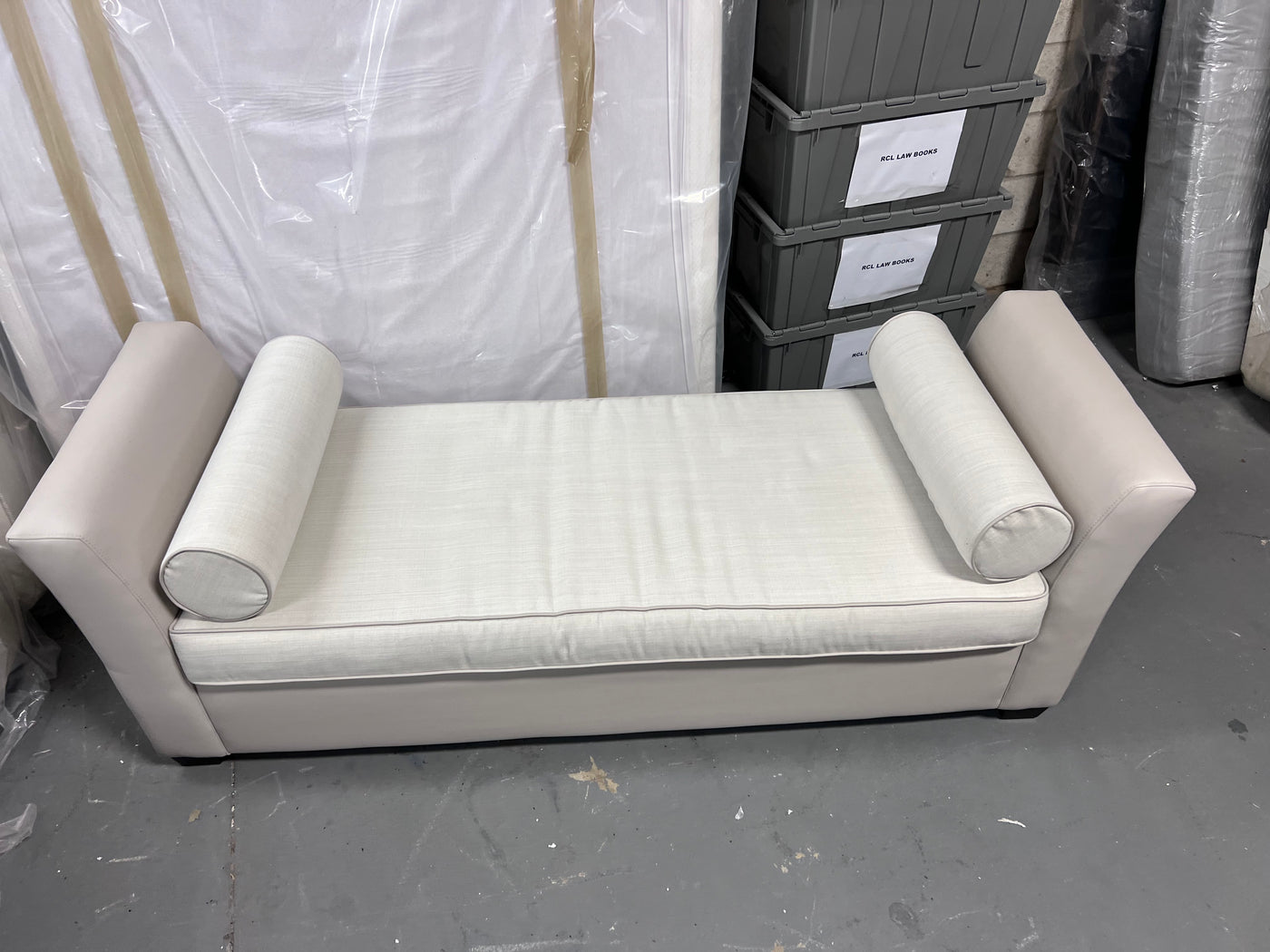 Custom Made Cream/Beige Leather Bench with Upholstered Cushions.