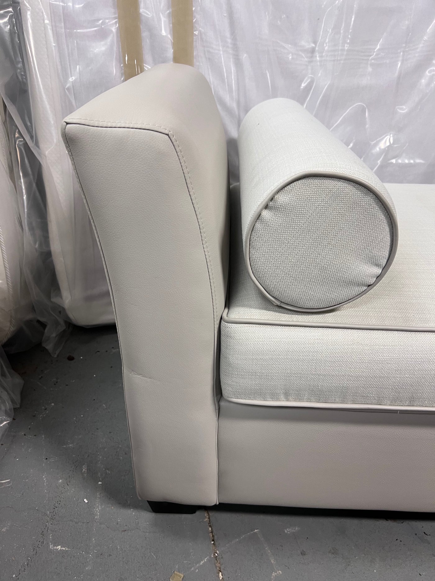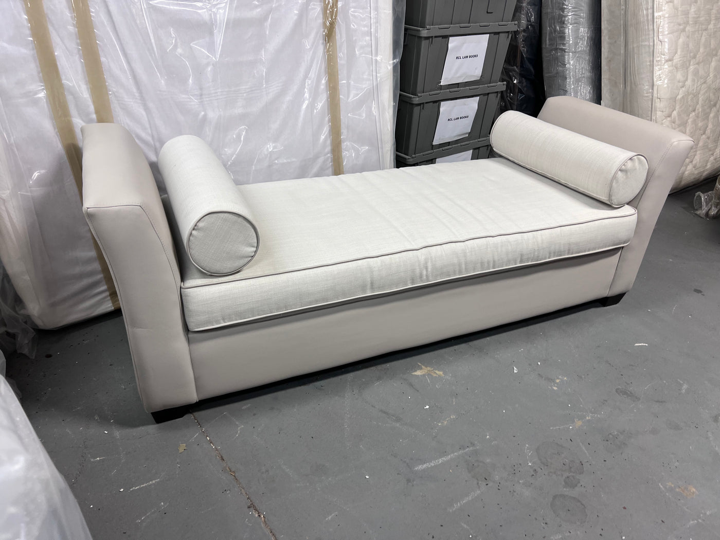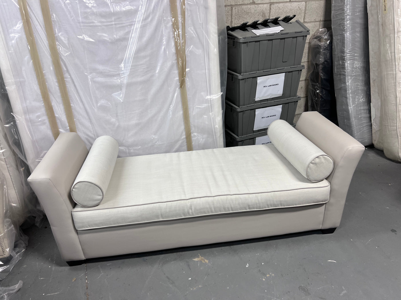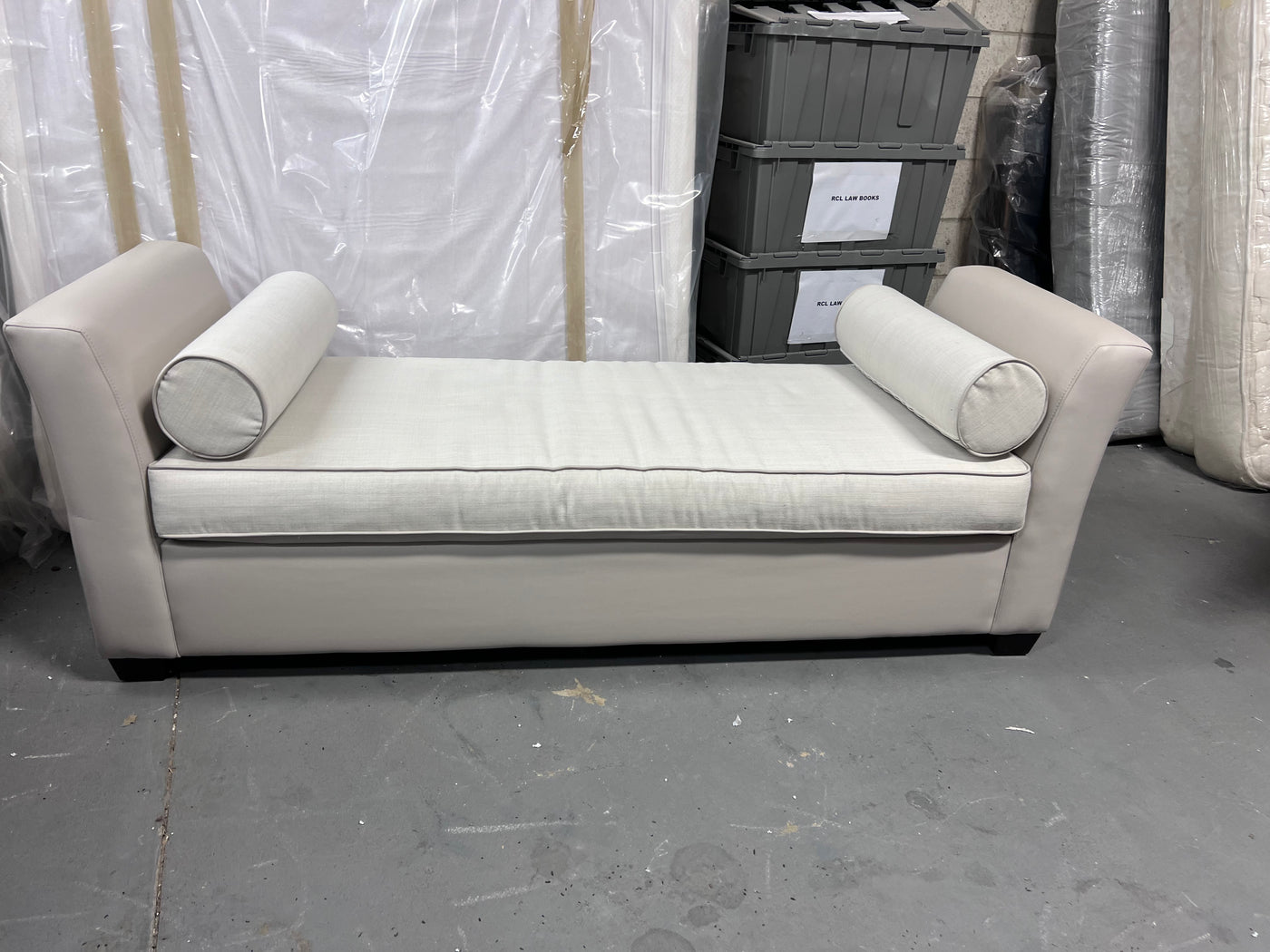Custom Made Cream/Beige Leather Bench with Upholstered Cushions.