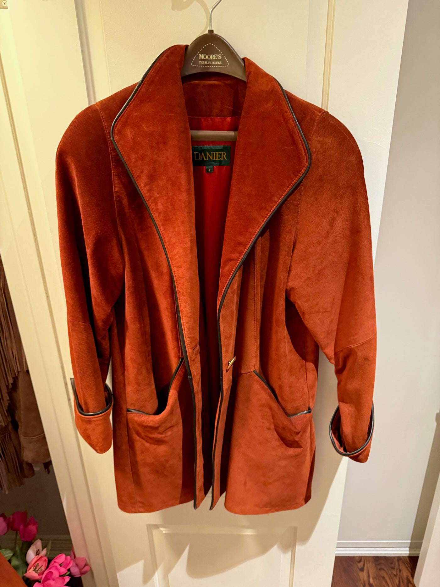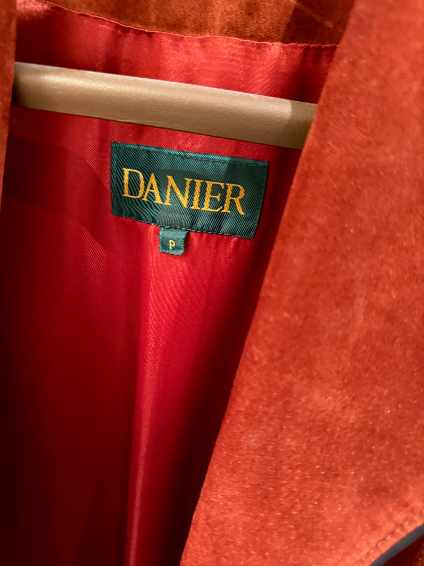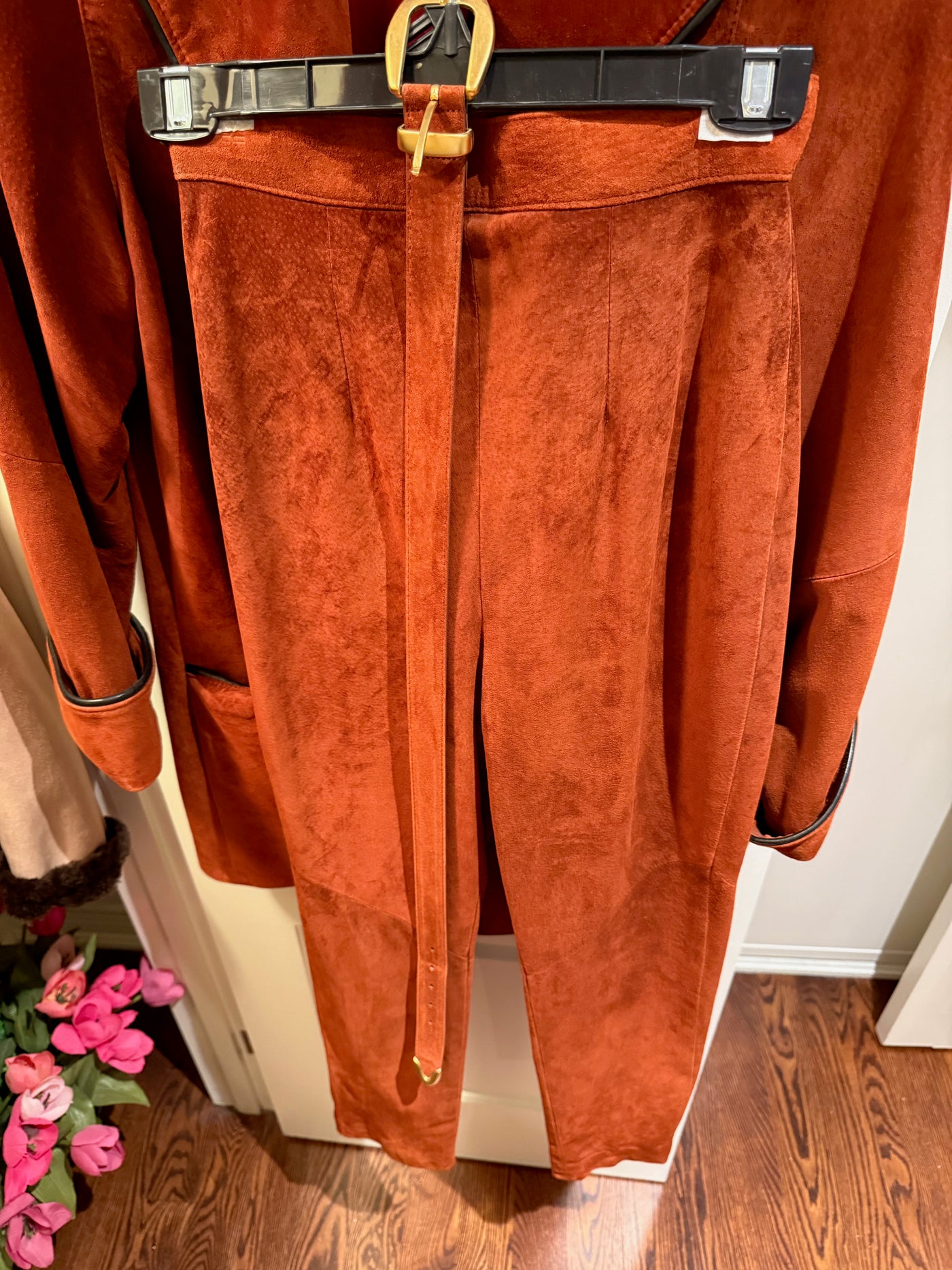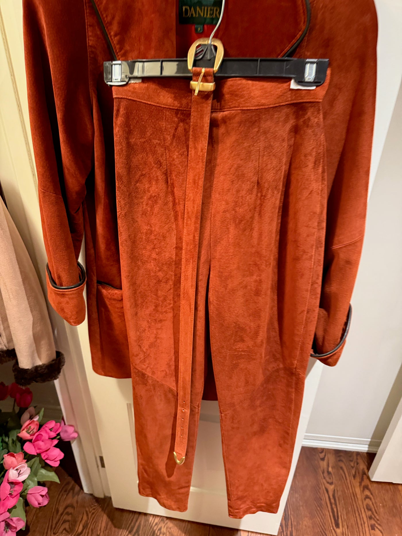 Vintage Women's Red Danier Leather Jacket and Pants, Size 2