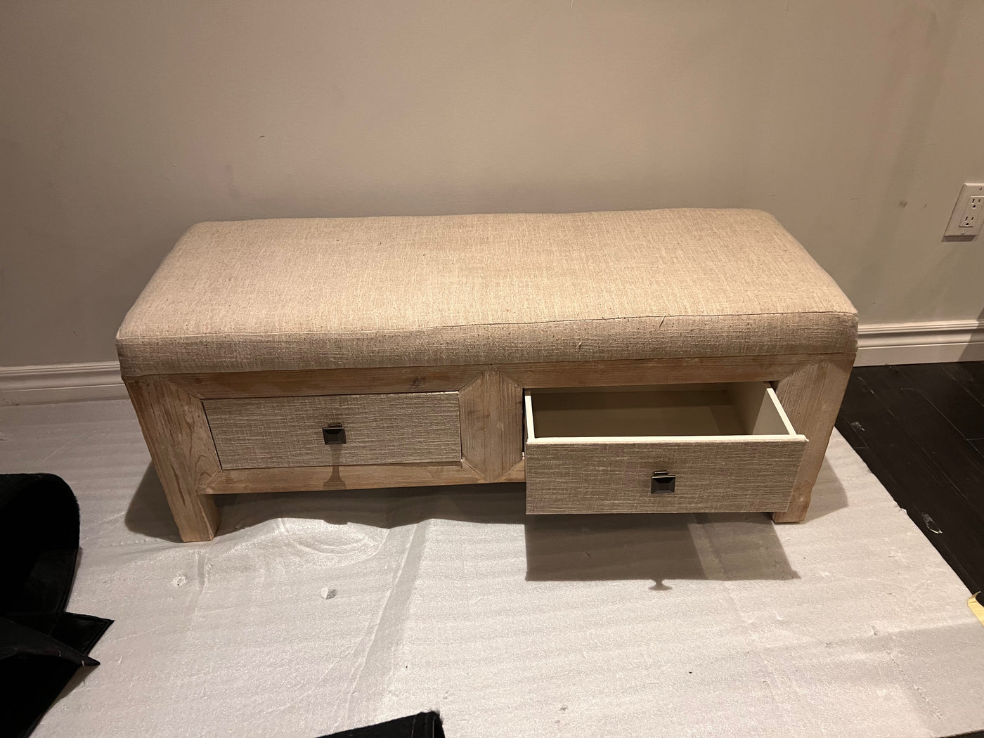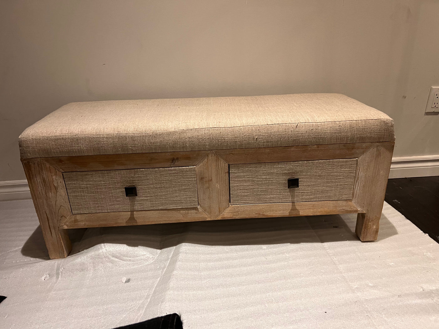 Cream/Beige Bench w/2 Drawers