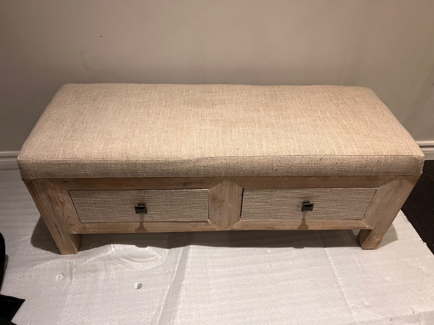 Cream/Beige Bench w/2 Drawers.