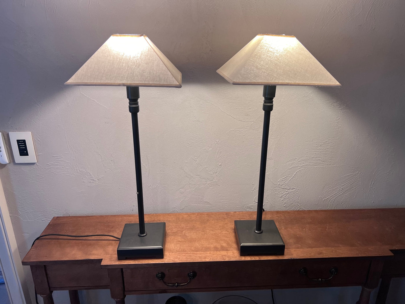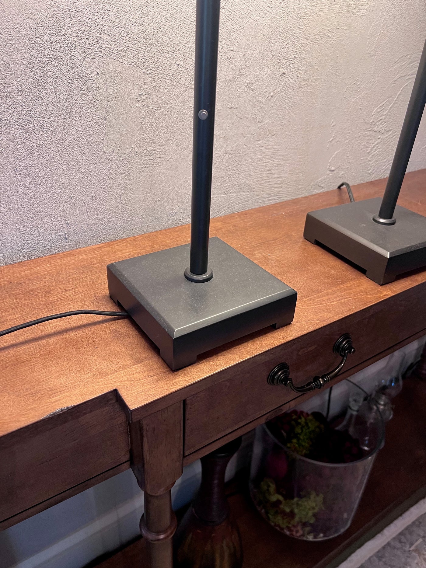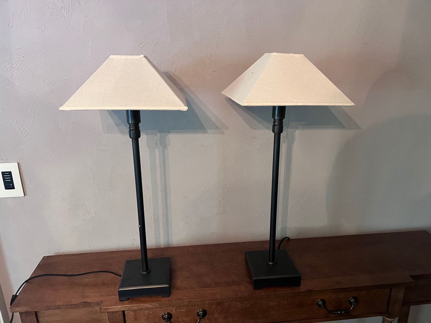 Restoration Hardware Pyramid Telescoping Table Lamp with Linen Shade (*2 available- priced individually).