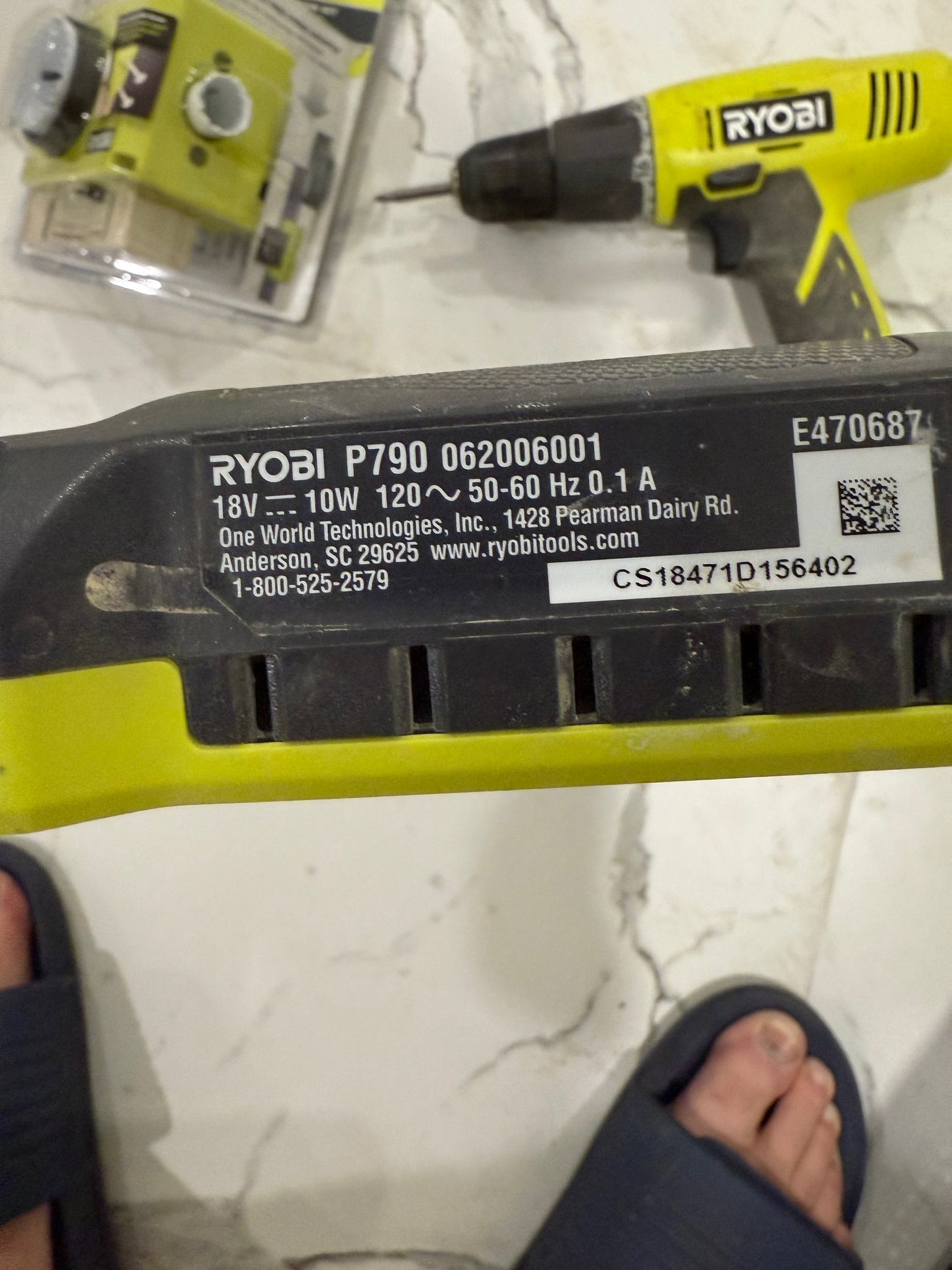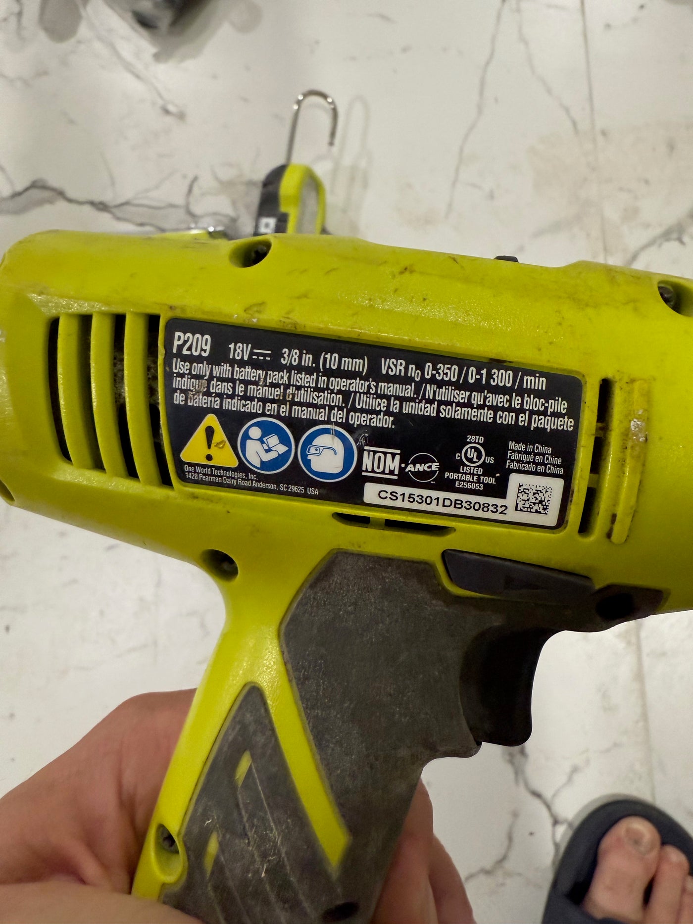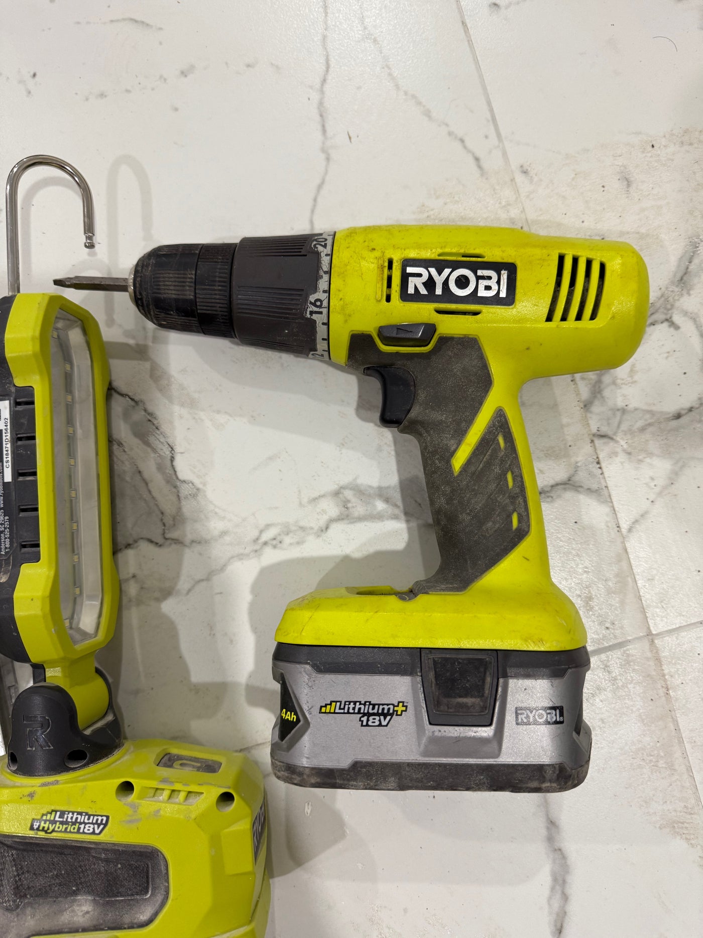 Ryobi 3pc Lot | 18V ONE+ Hybrid LED Portable Project Light, Cordless Drill 3/8in, BRAND NEW Wood and Metal Door Lock Installation Kit (*includes 1 18v 4ah Battery)