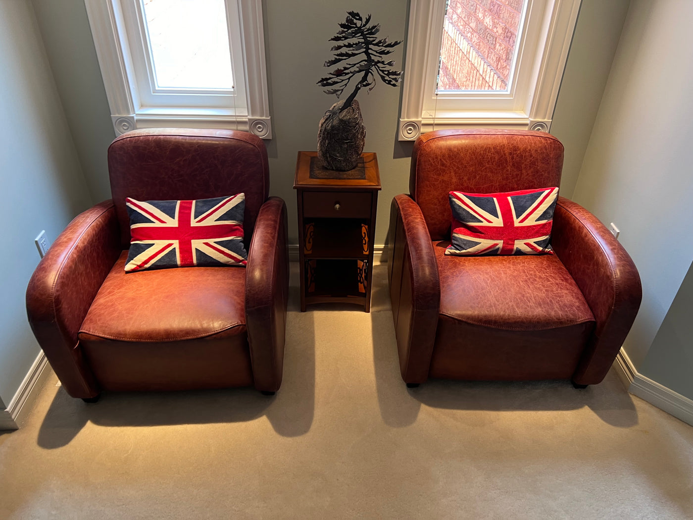 2 Brown Leather Club Chairs from 'Kuka Home'.