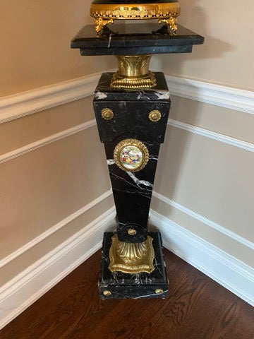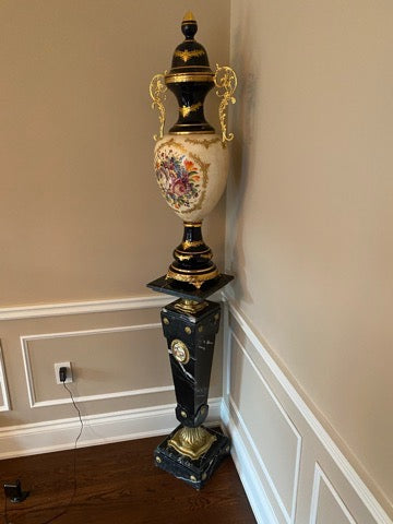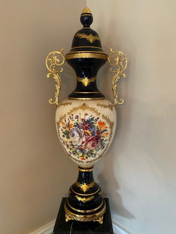 Ornate Cobalt Blue & Gold Decorative Vase + Marble Stand.