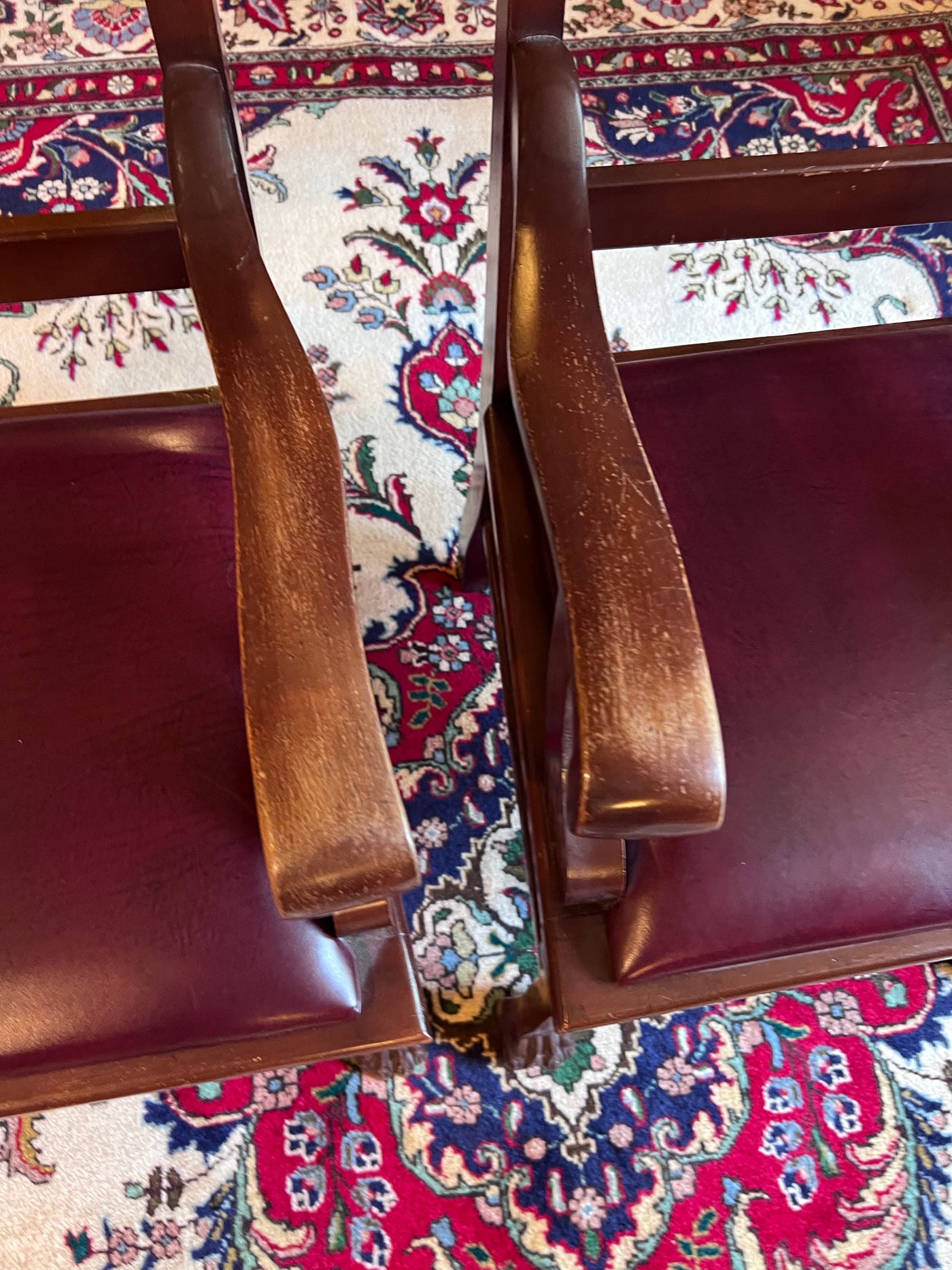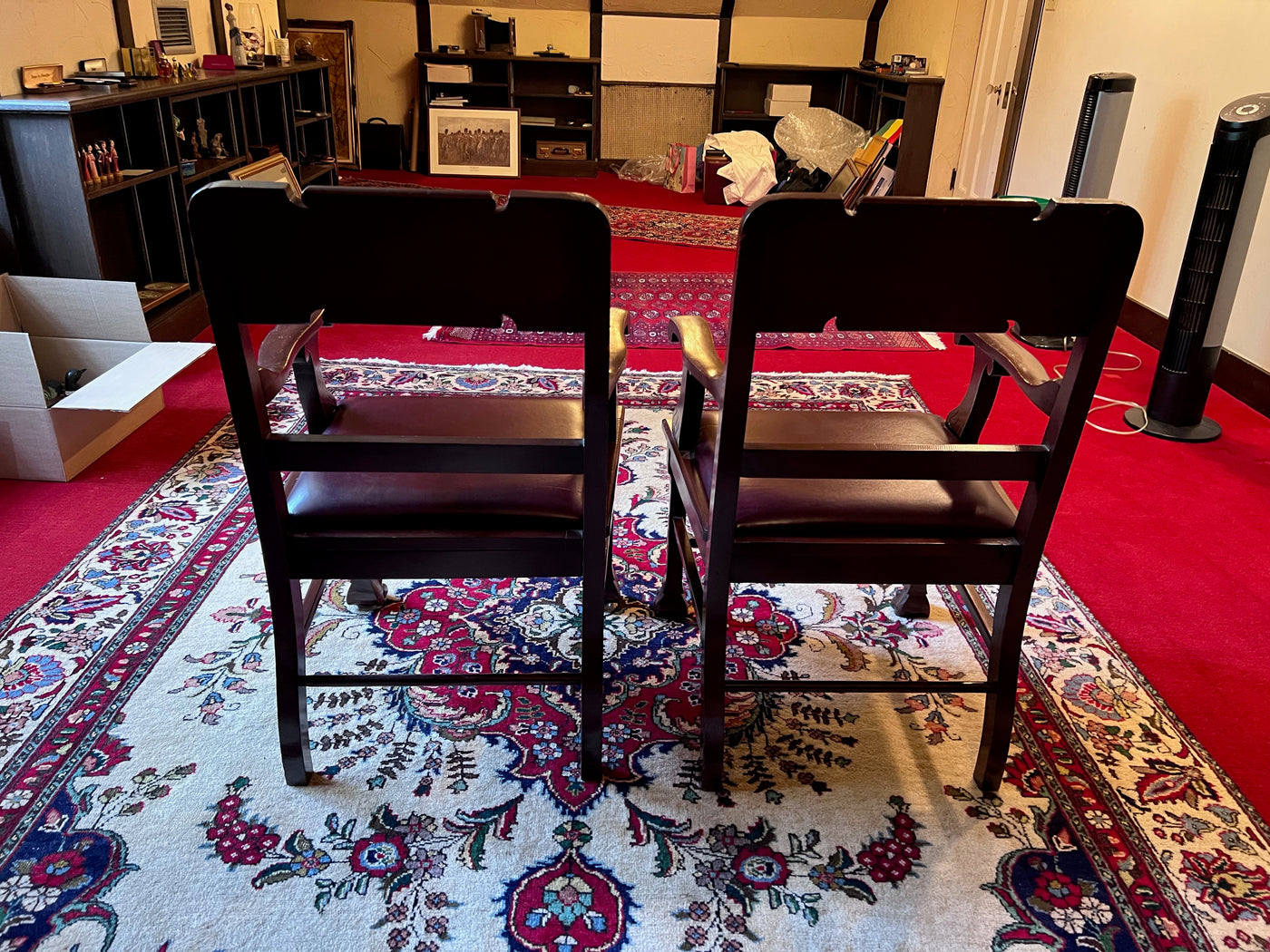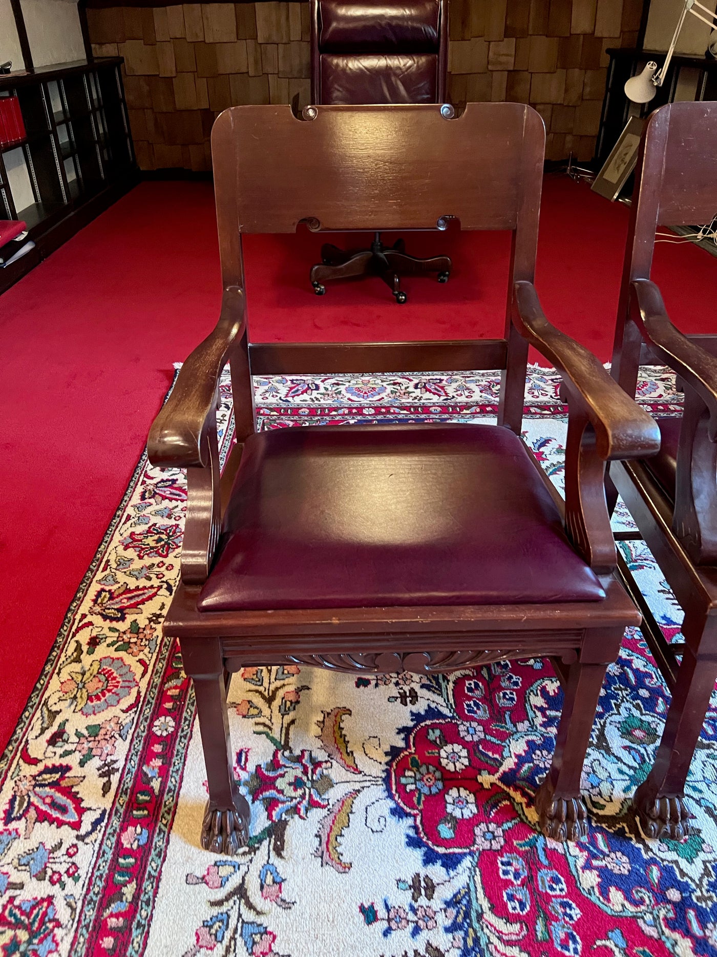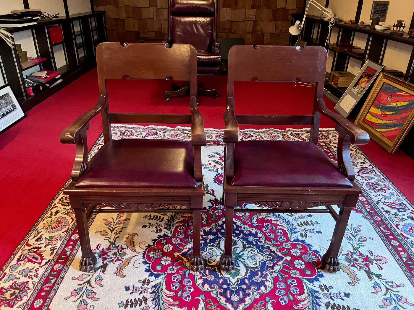 Pair of Antique Chairs, Red Leather Seats with Clawed Feet