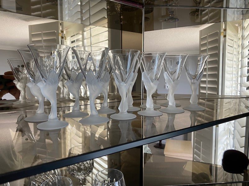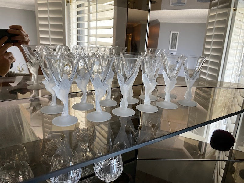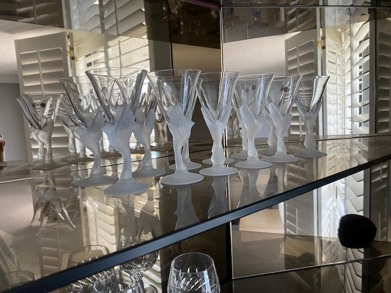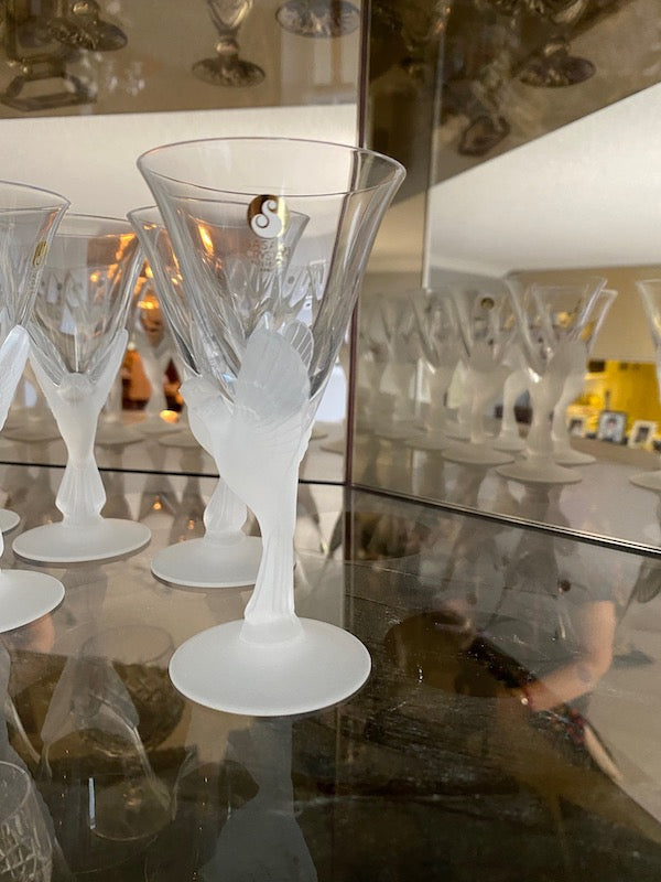 12 Sasaki Crystal "Wings" Wine Glasses.