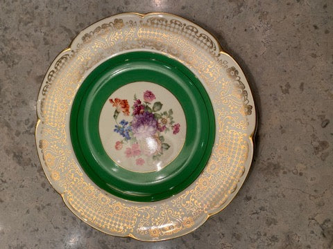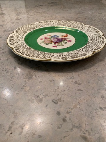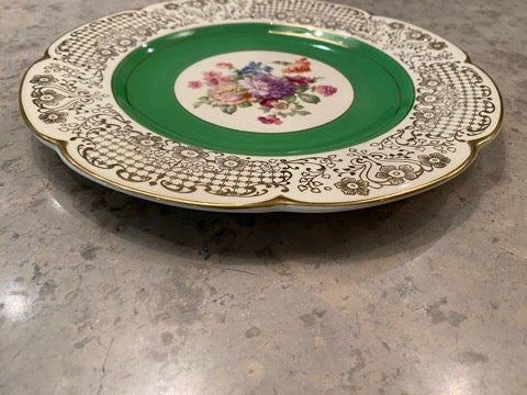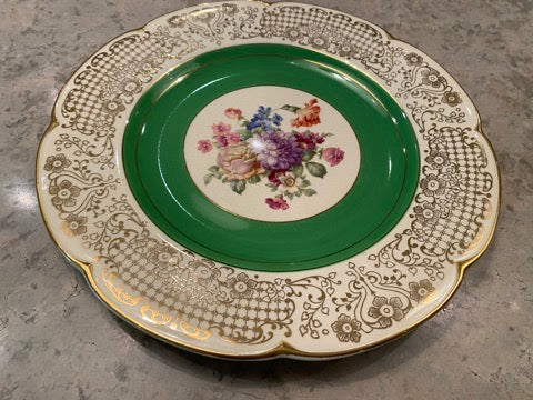 Woods Ivory Ware Green & Gold Floral Dinner Plate.