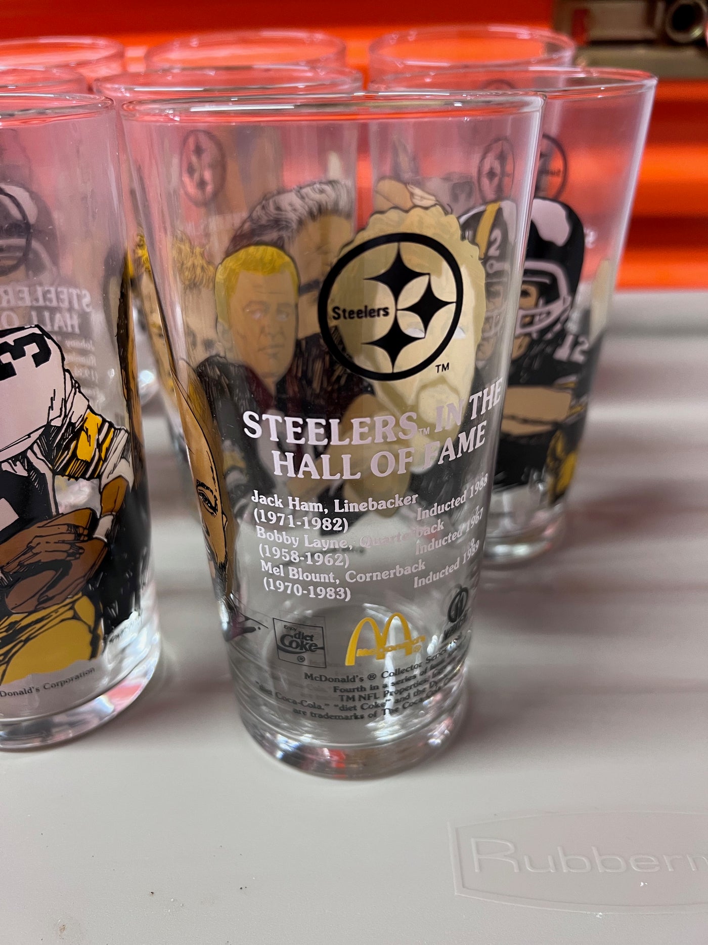 8 Vintage 1990 Pittsburgh Steelers in the Hall of Fame McDonalds Coca-Cola Glasses