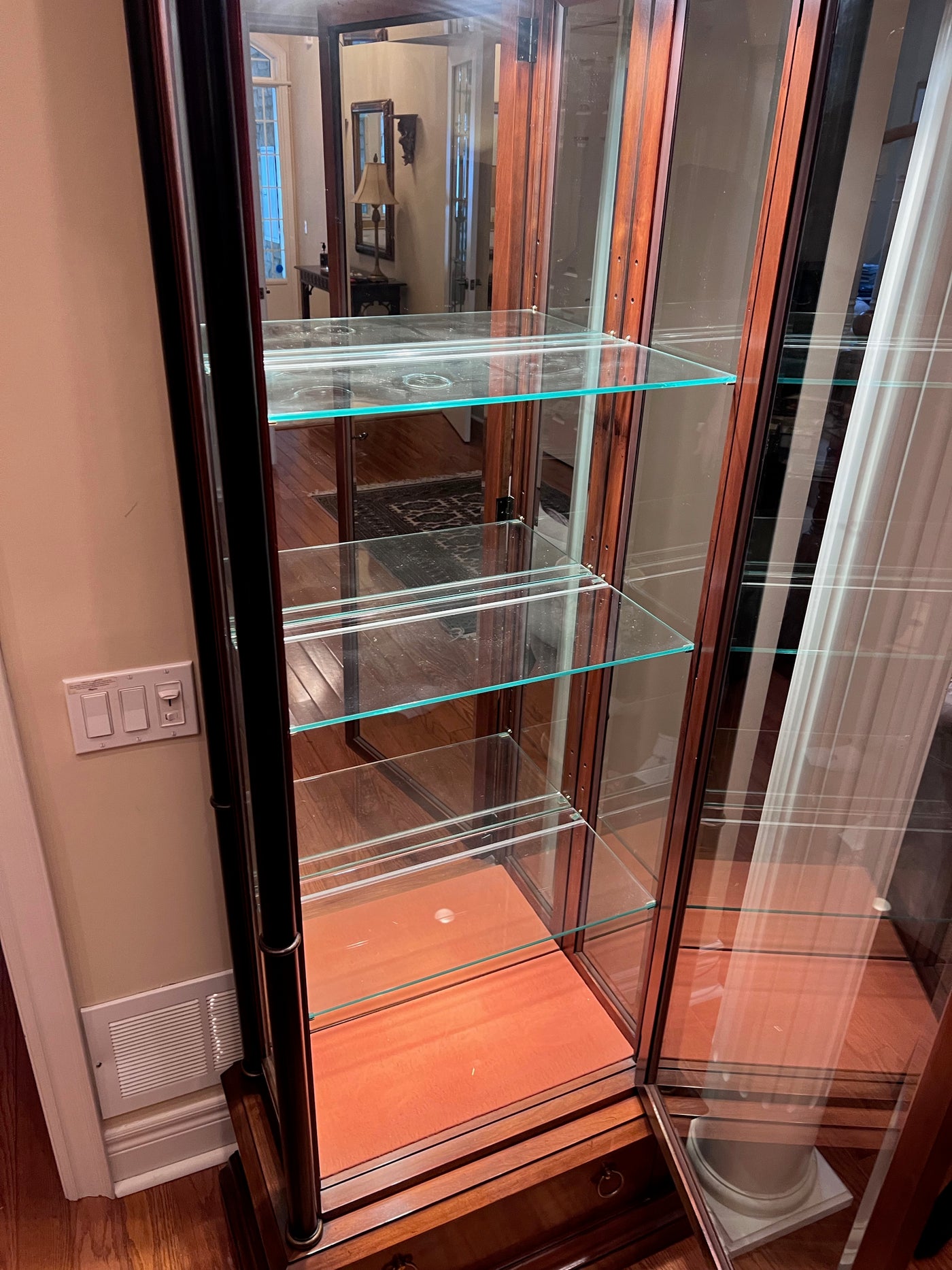 'Hekman' Curio Cabinet. Has interior light ans glass shelving.