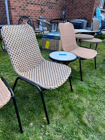 2 Chairs + Side Table (1 Orange 1 Blue Weave).