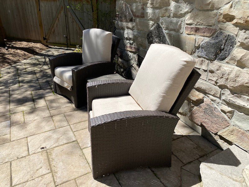 2 Mission Hills Furniture Reclining Patio Chairs, Sunbrella Cushions + Side Table