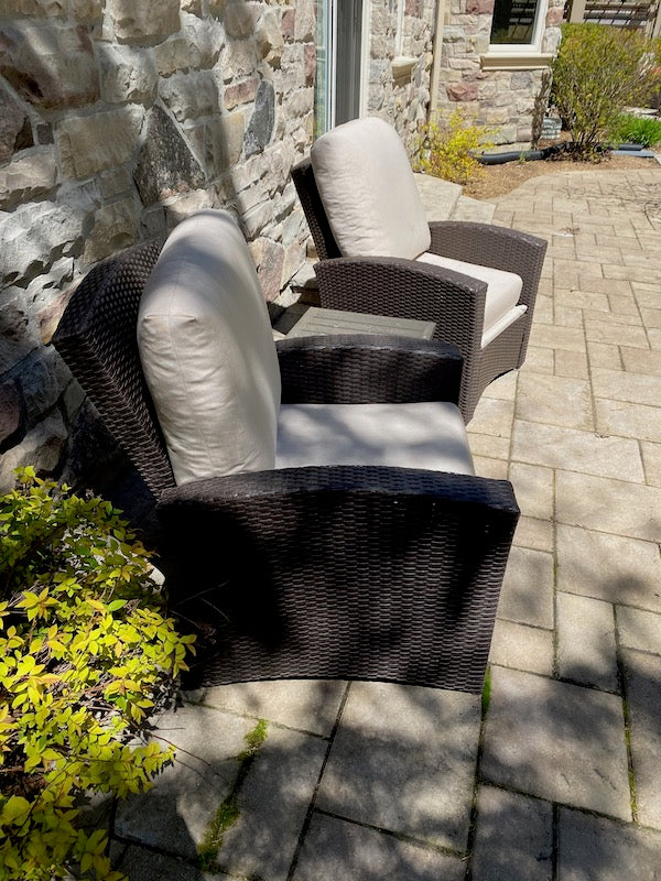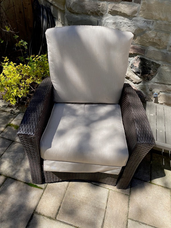 2 Mission Hills Furniture Reclining Patio Chairs, Sunbrella Cushions + Side Table.