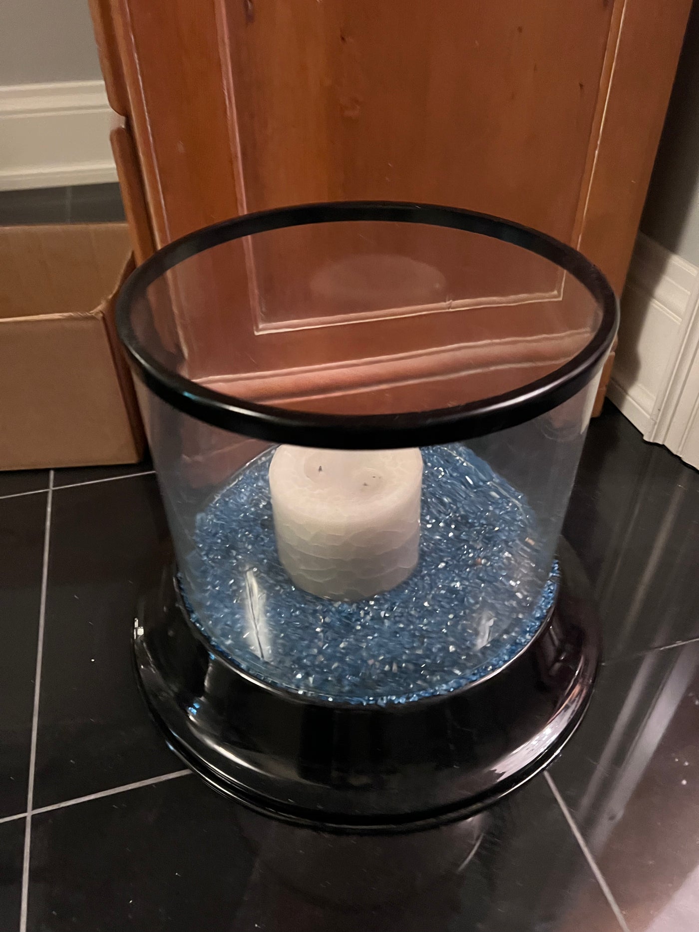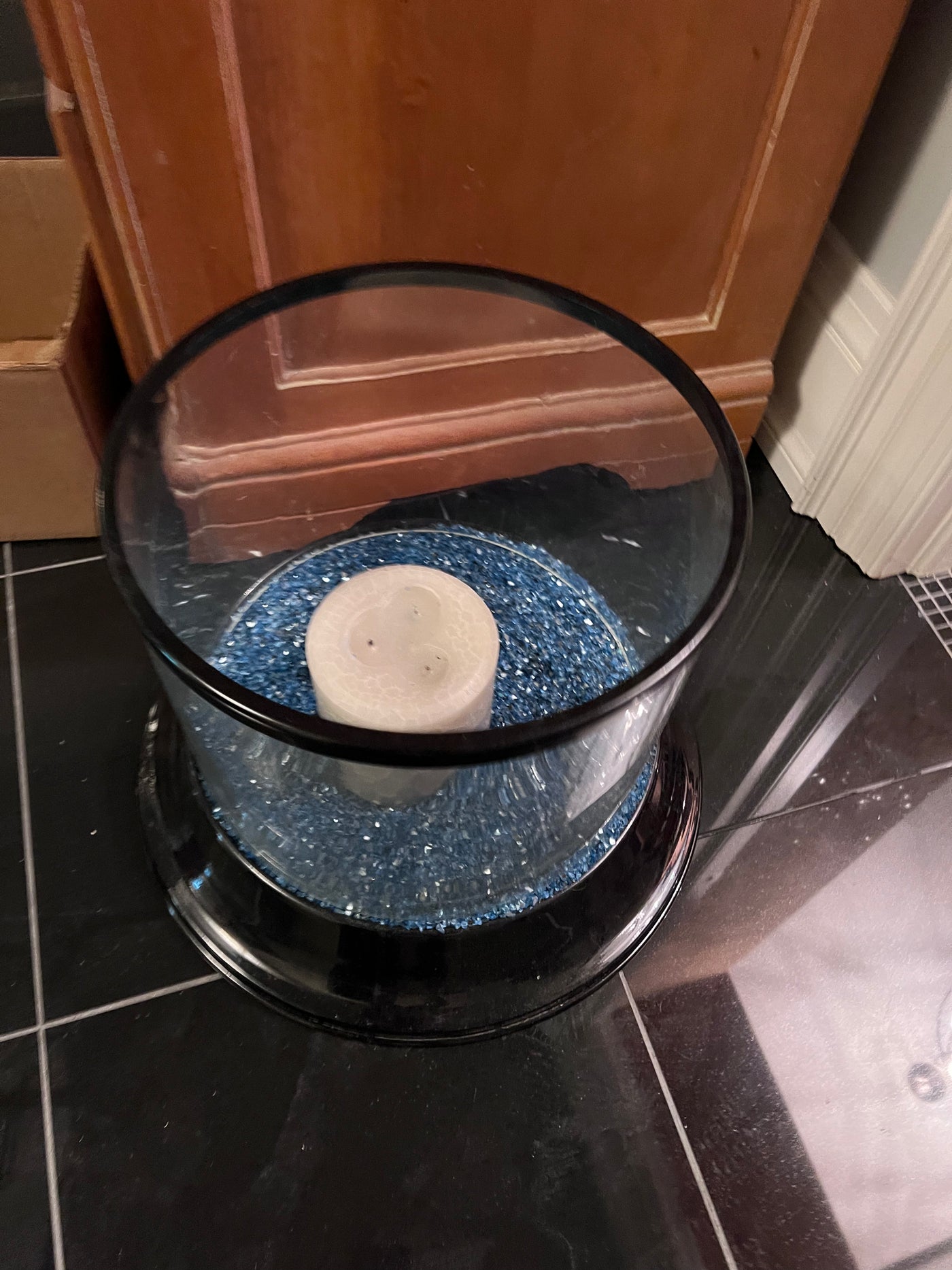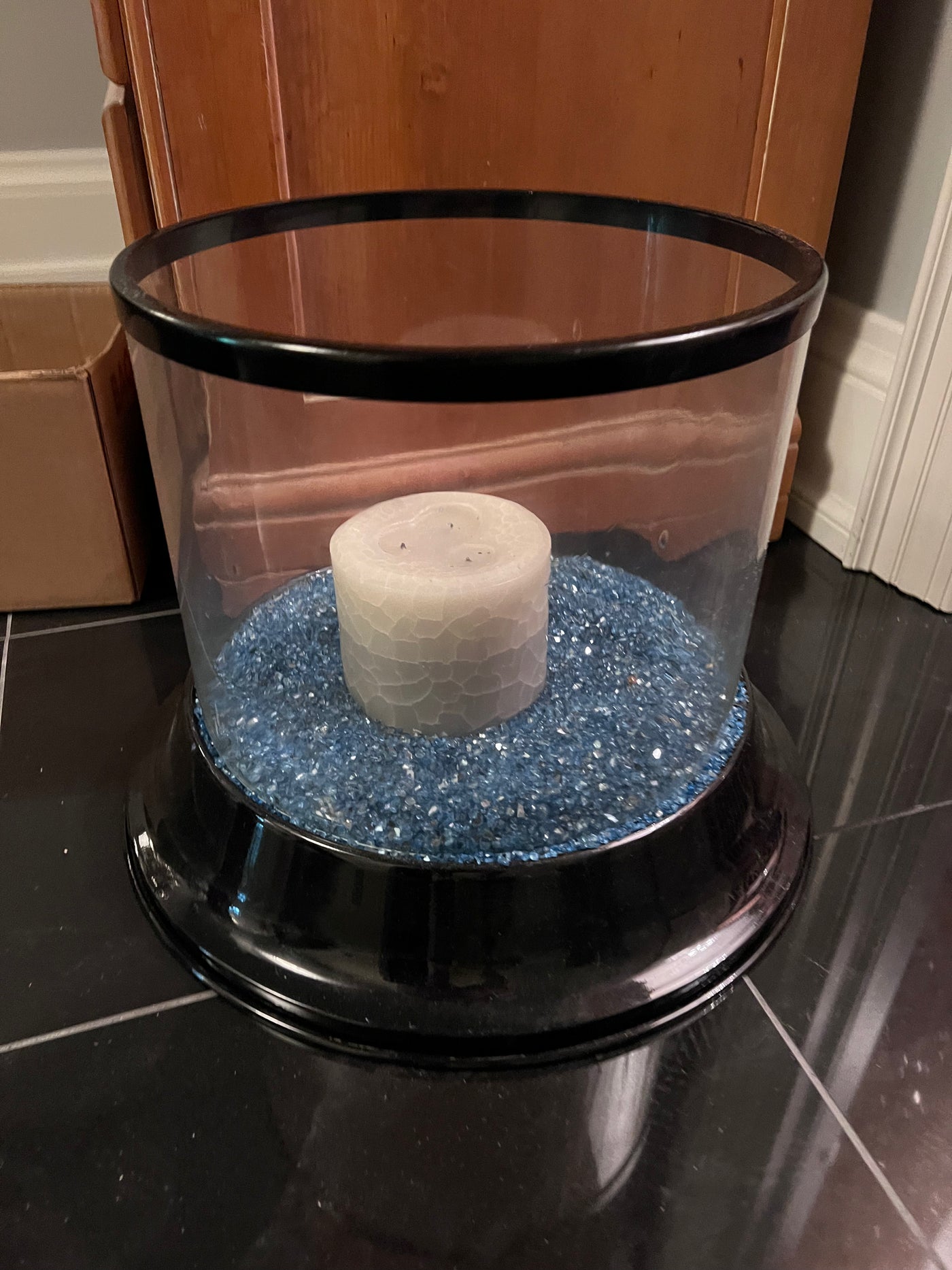 Large Candle Holder with Blue Stones.