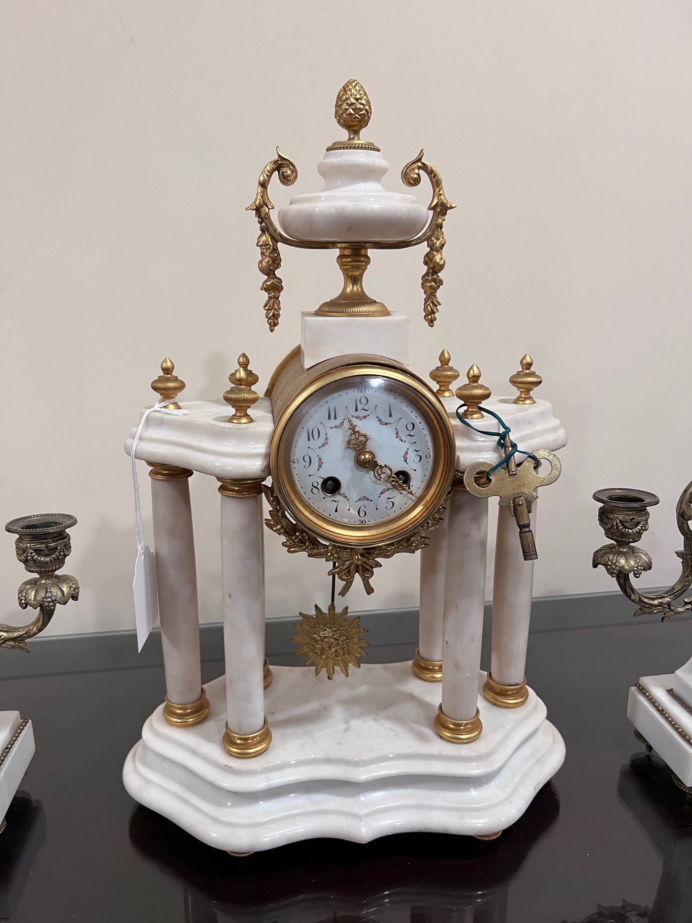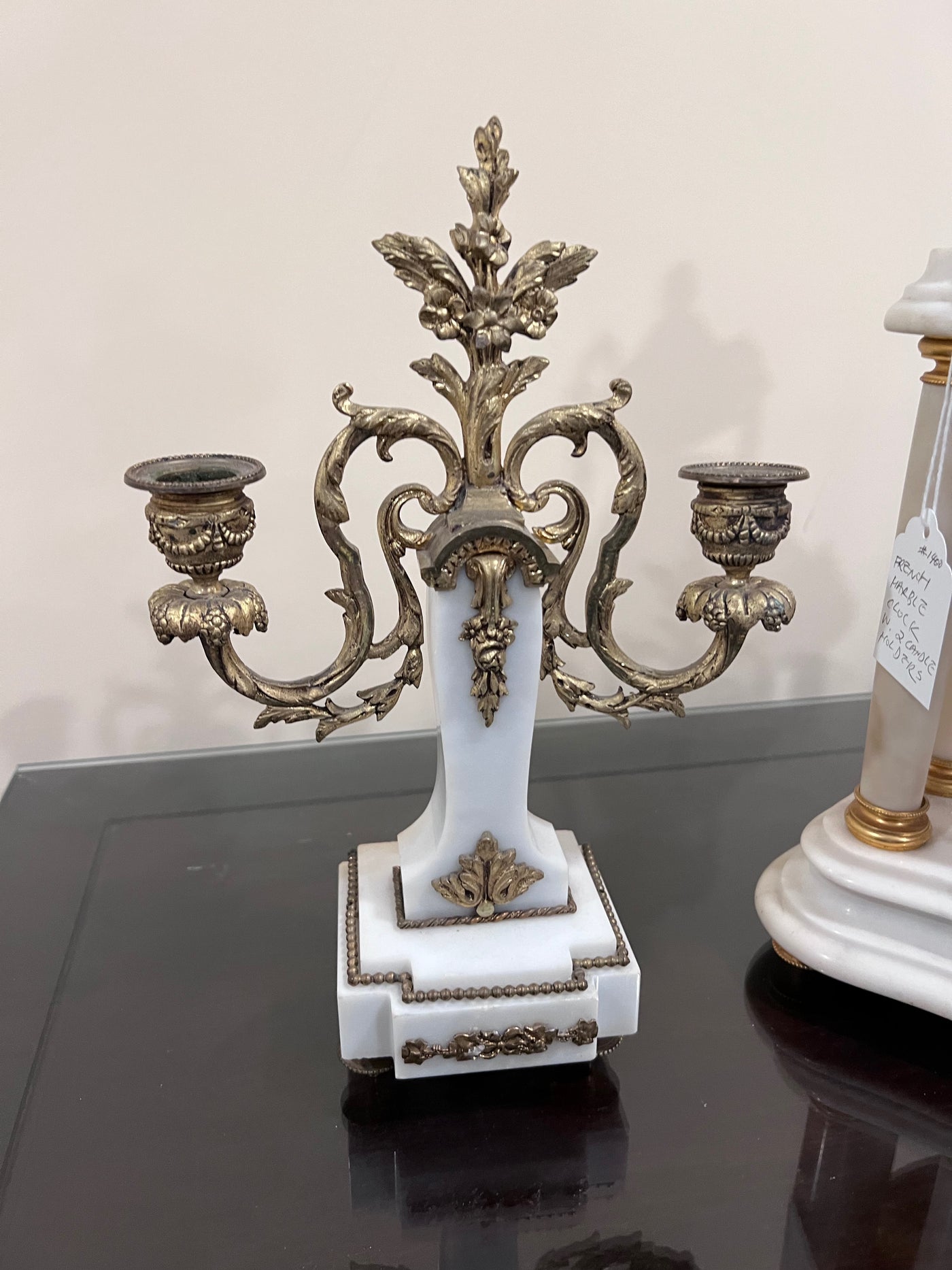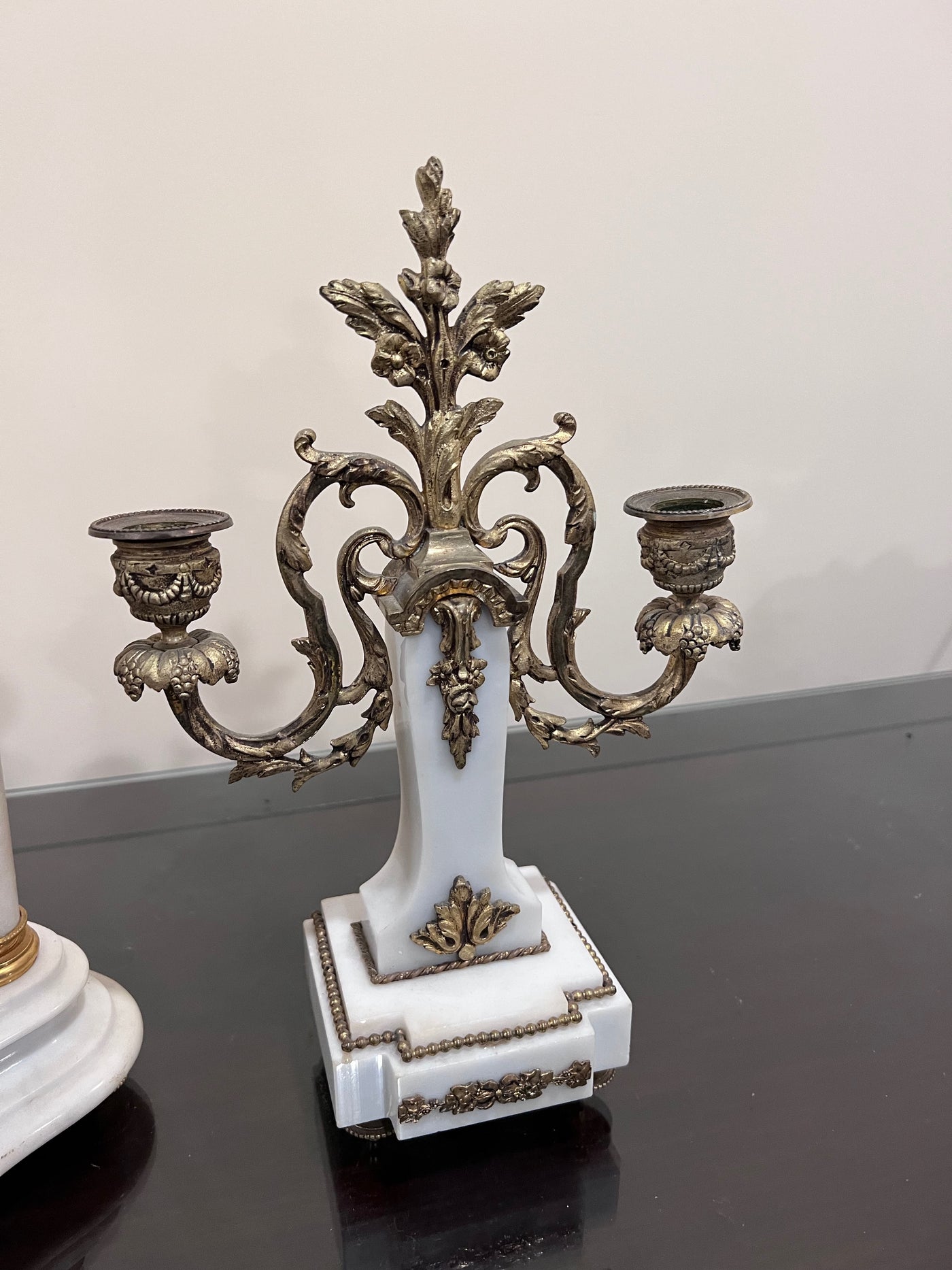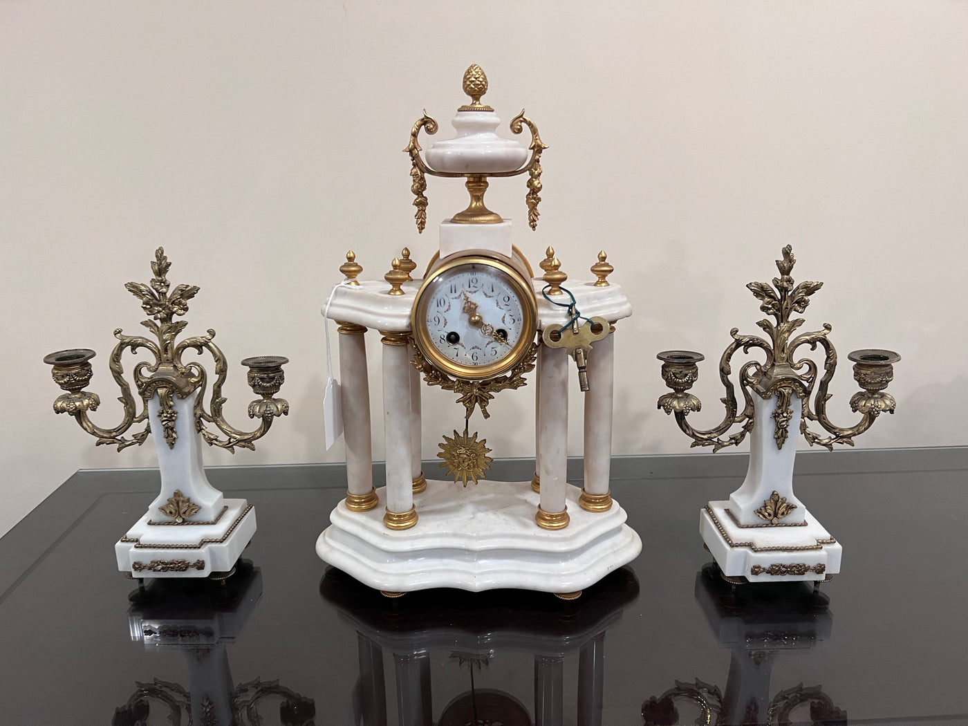 Antique French Marble Mantel Clock with 2 Candle Holders.