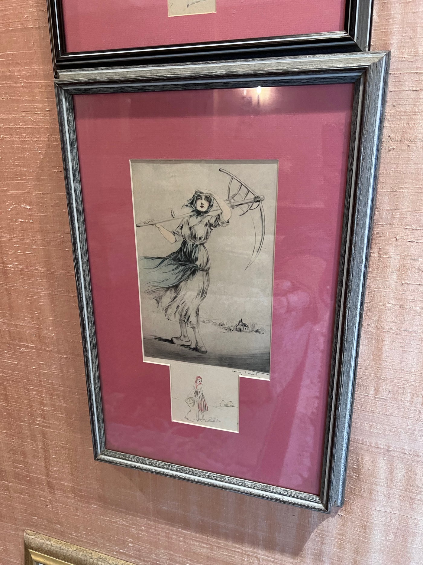 2 Louis Icart Signed Sketches/Etchings- 'WW1 Women'
