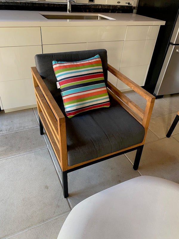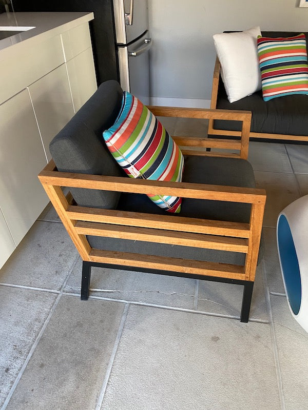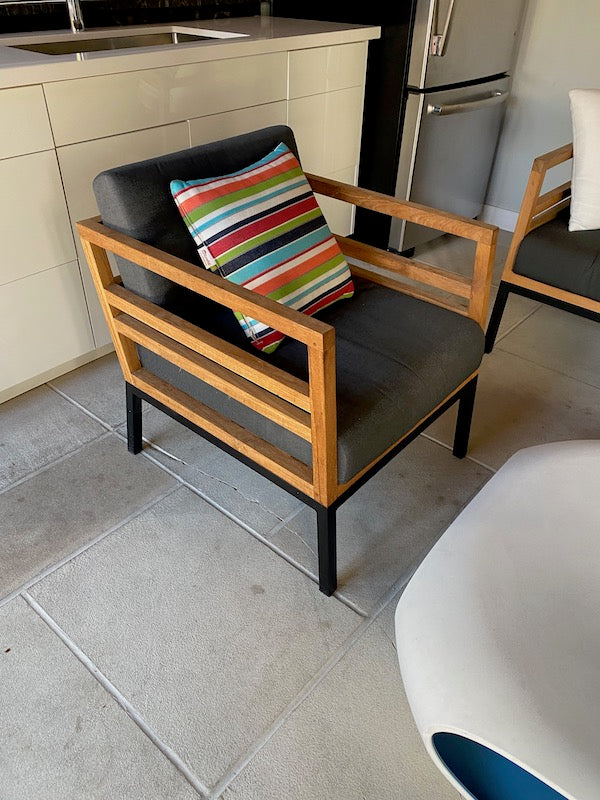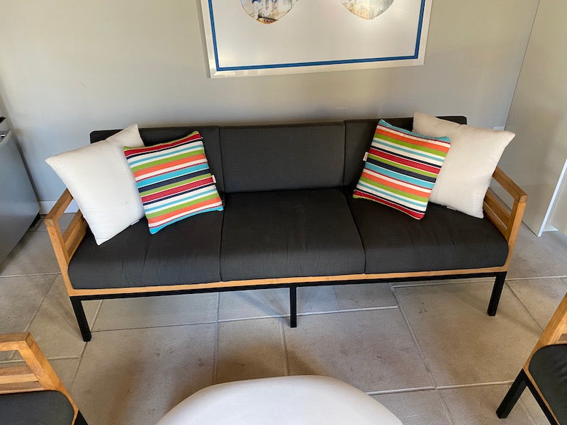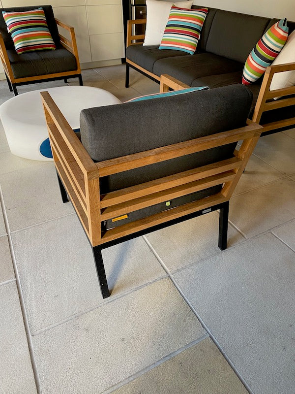 3 Piece 'Mamagreen' Zudu Teak Outdoor Patio Conversation Set + Coffee Table (Sunbrella Cushions).