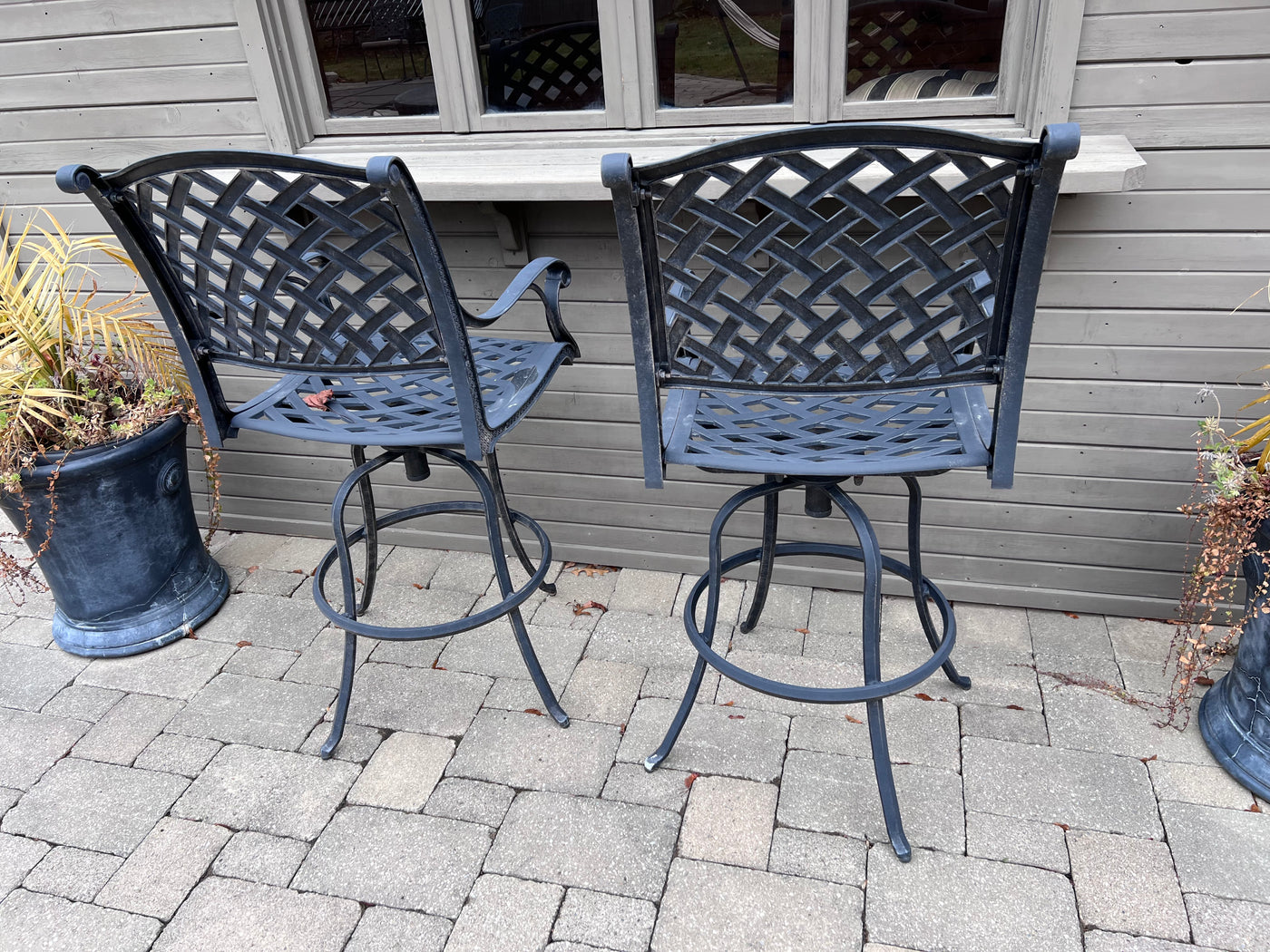 2 Hauser Cast Aluminum Outdoor Patio Barstools.