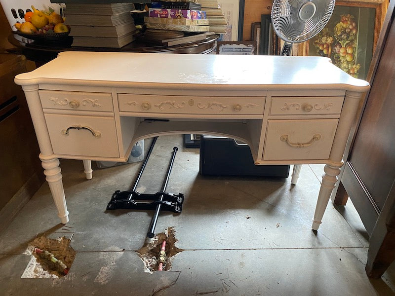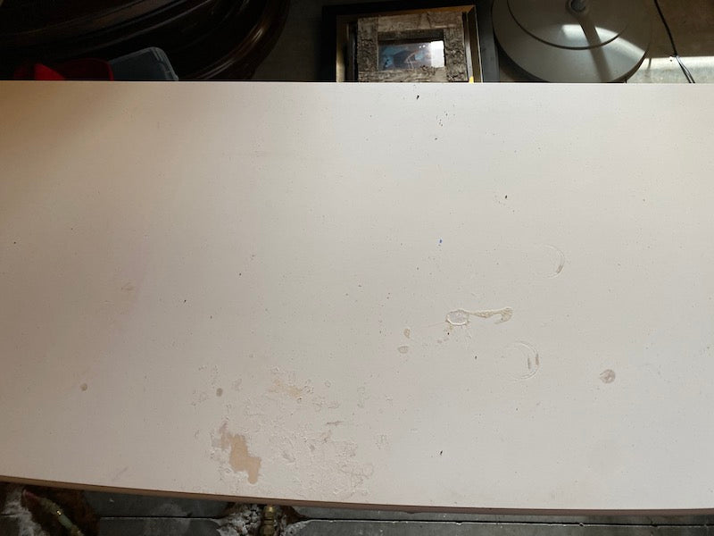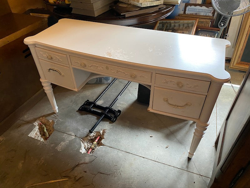 Condition: there is some wear and marks on the surface of the desk. There are also 2-3 chips on the base. Please view up close pictures.
