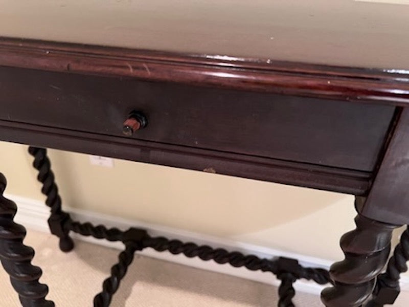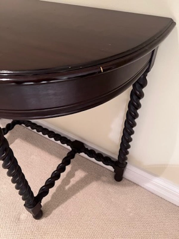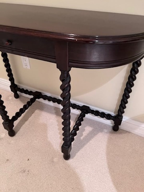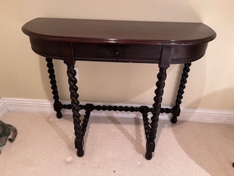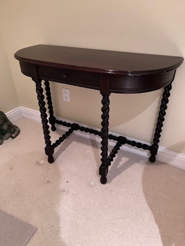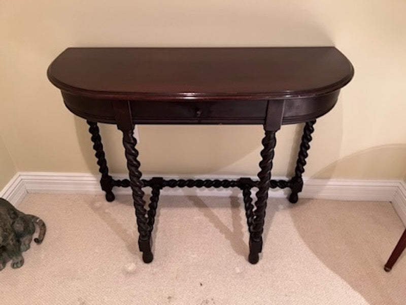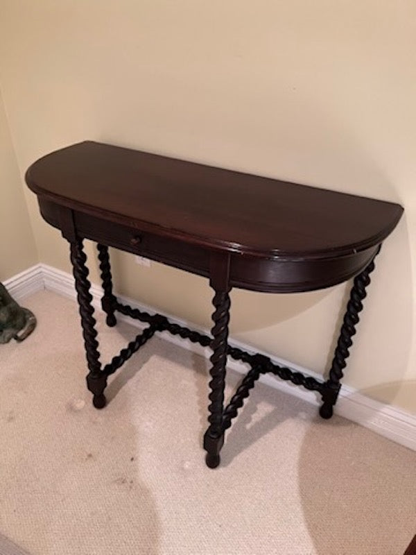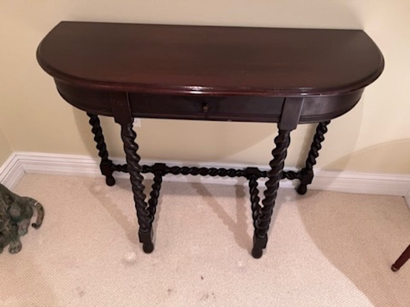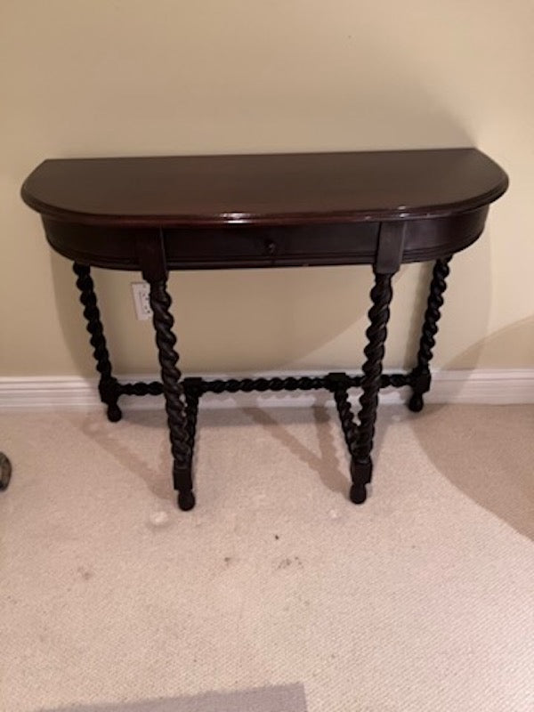 Antique Murray-Kay LTD Demilune Console Table. The handle on the front drawer is slightly damaged and may need repair. See up close pictures.
